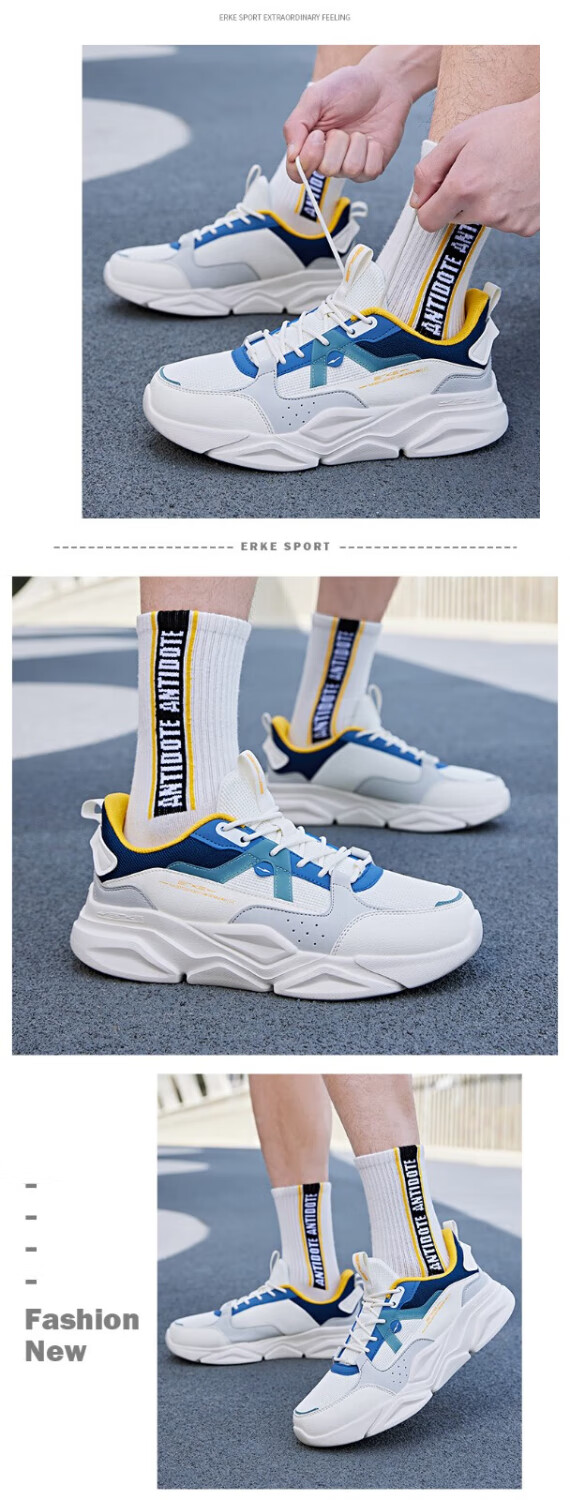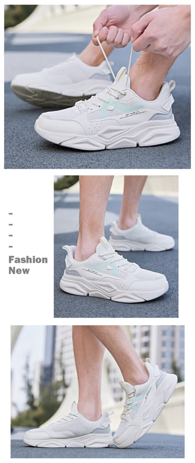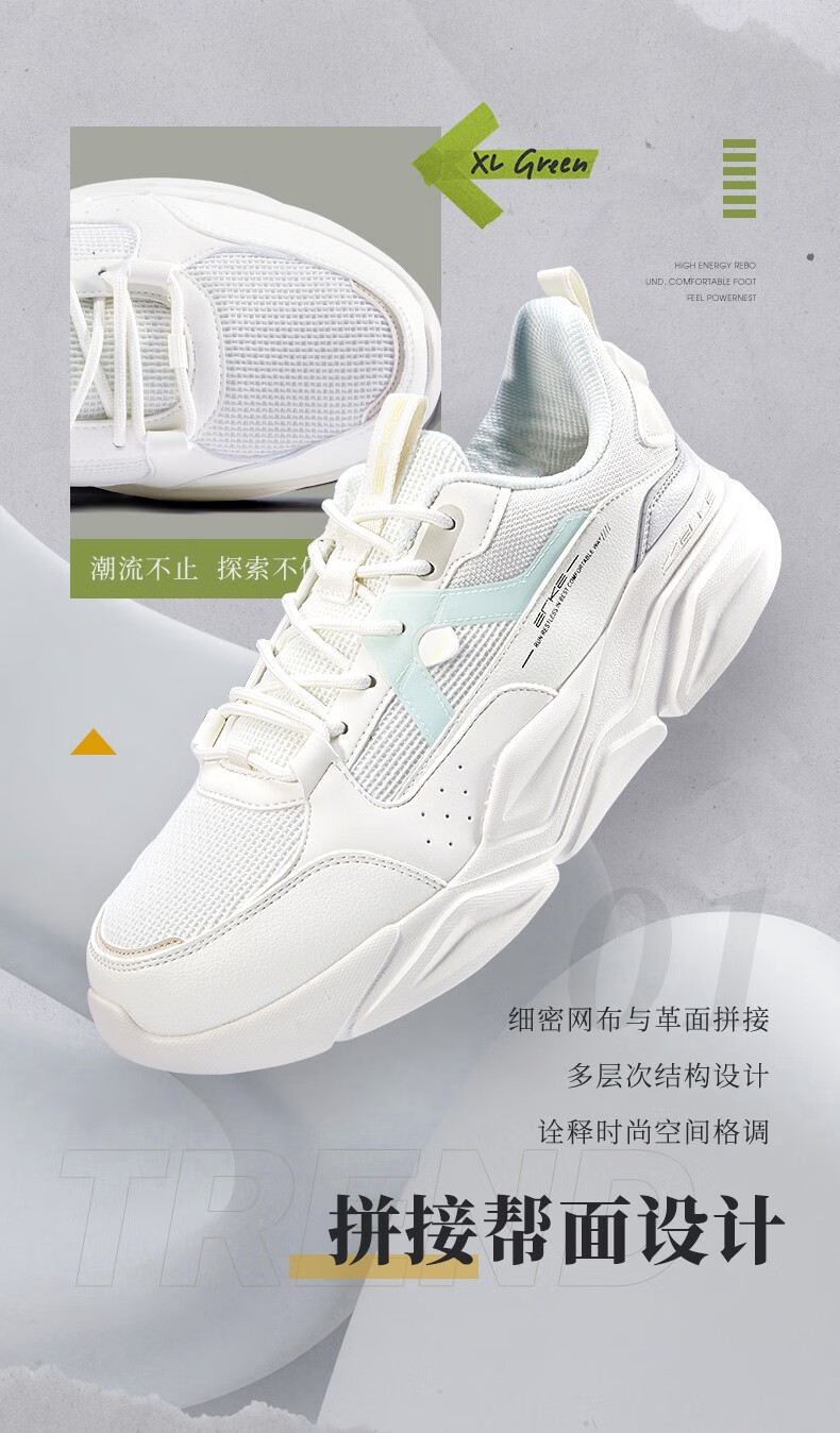 鸿星尔克(ERKE)男鞋2025秋冬新款增高休闲老爹鞋官方正品皮面保暖黑色软底运动鞋 微晶白/深沼泽色2004(皮网四季款) 43 【退换无忧】