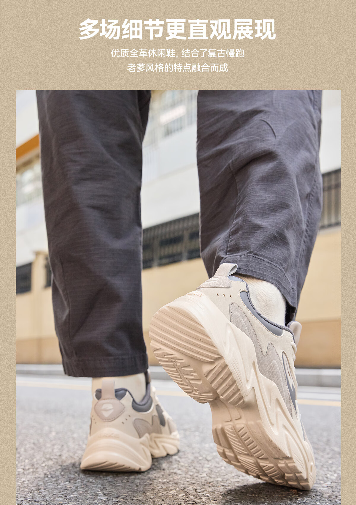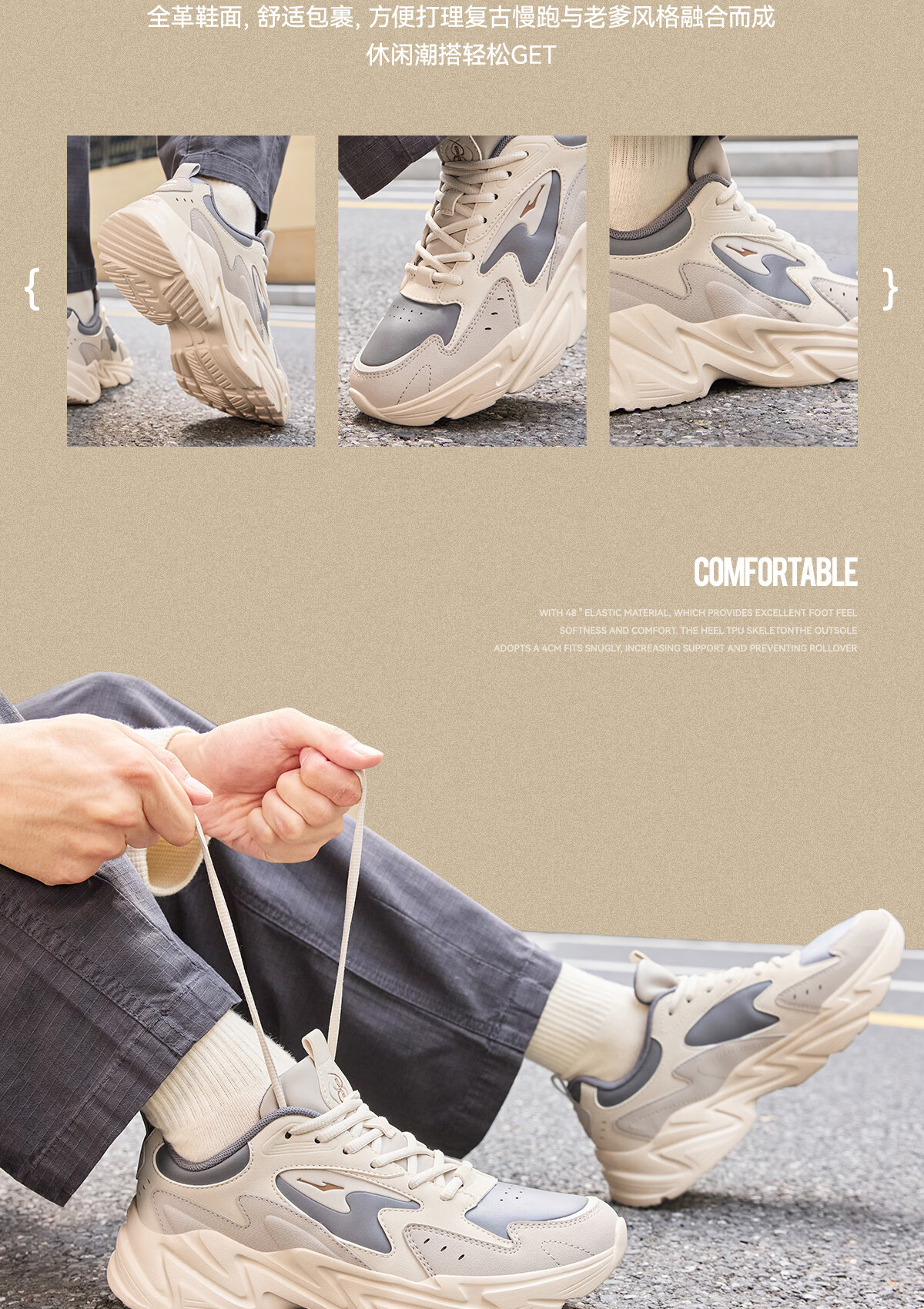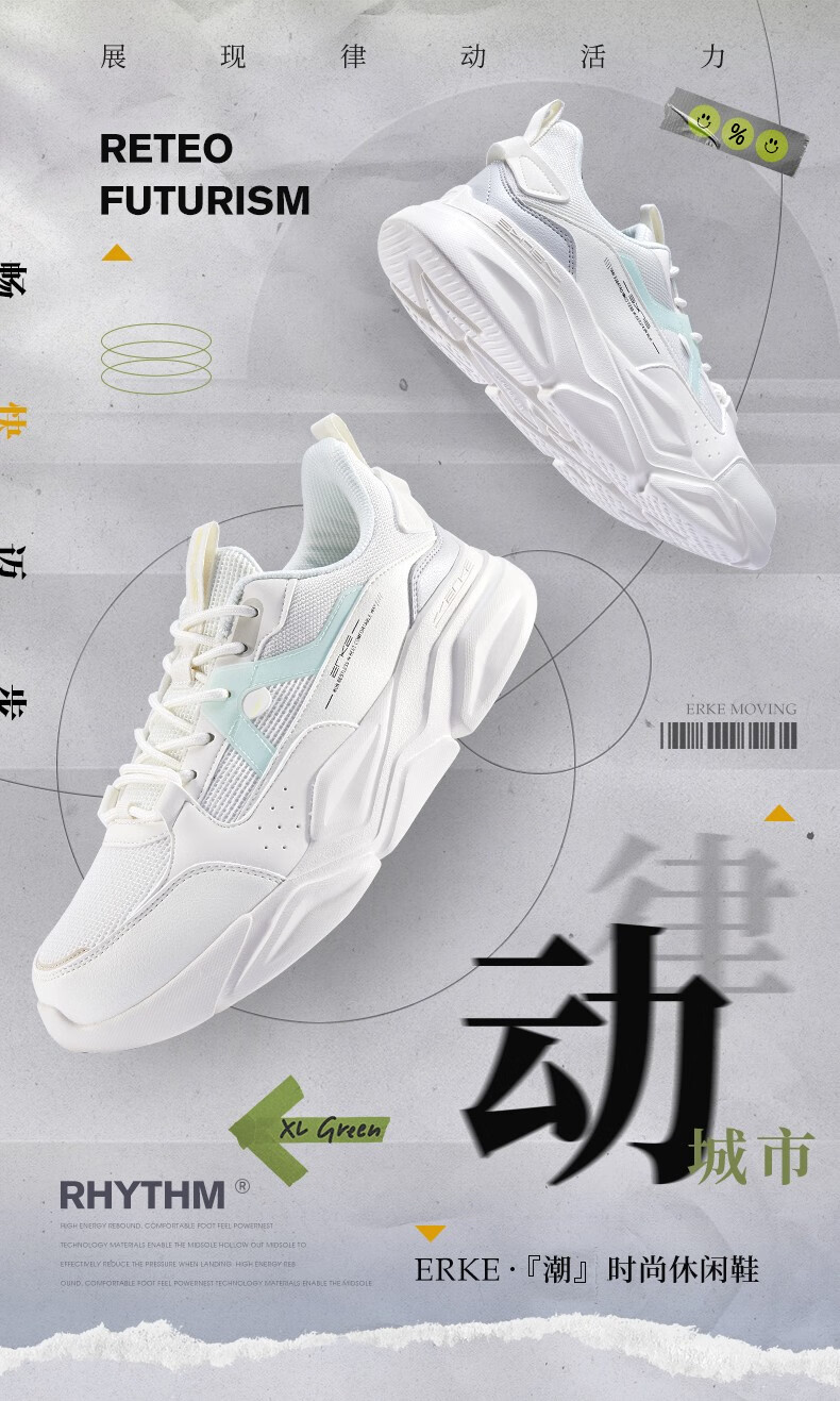 鸿星尔克(ERKE)男鞋2025秋冬新款增高休闲老爹鞋官方正品皮面保暖黑色软底运动鞋 微晶白/深沼泽色2004(皮网四季款) 43 【退换无忧】