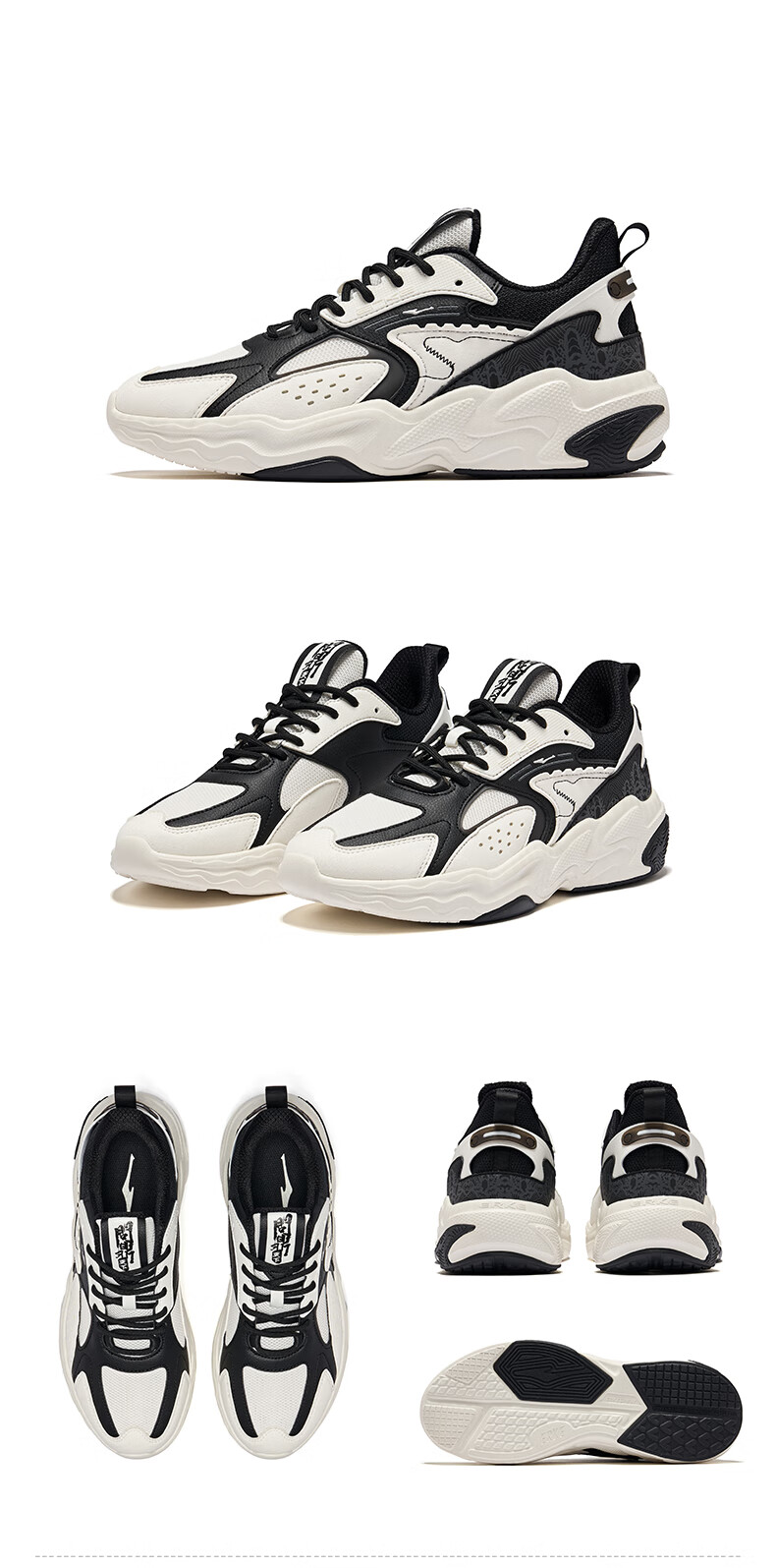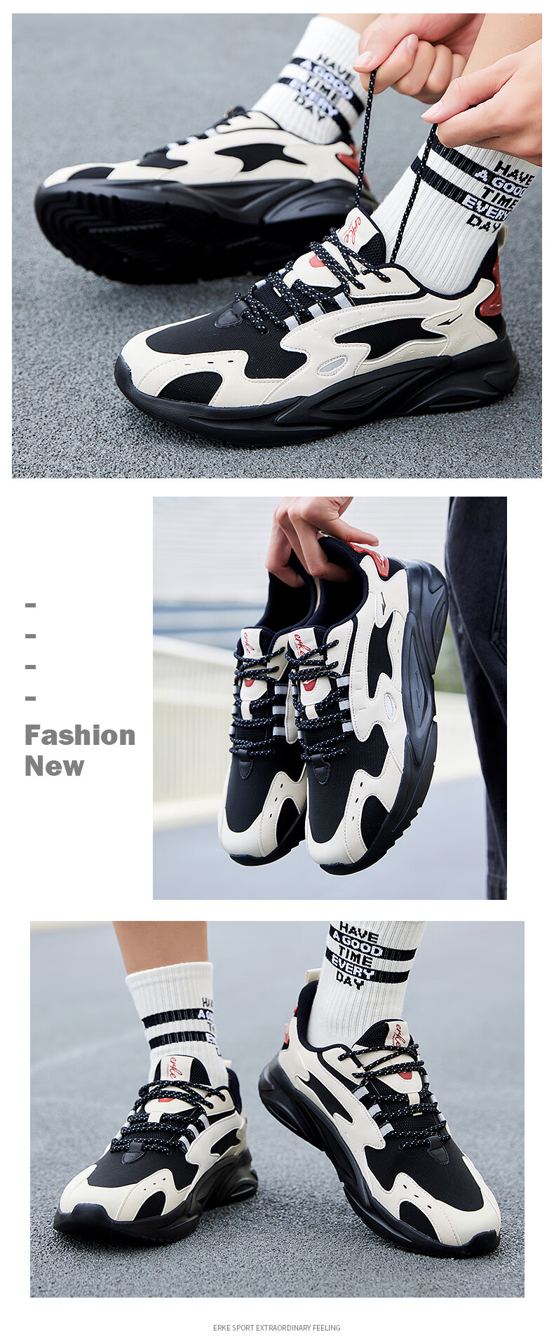 鸿星尔克(ERKE)男鞋2025秋冬新款增高休闲老爹鞋官方正品皮面保暖黑色软底运动鞋 蛋奶灰/正黑2004(皮网四季款) 39 【官方正品】