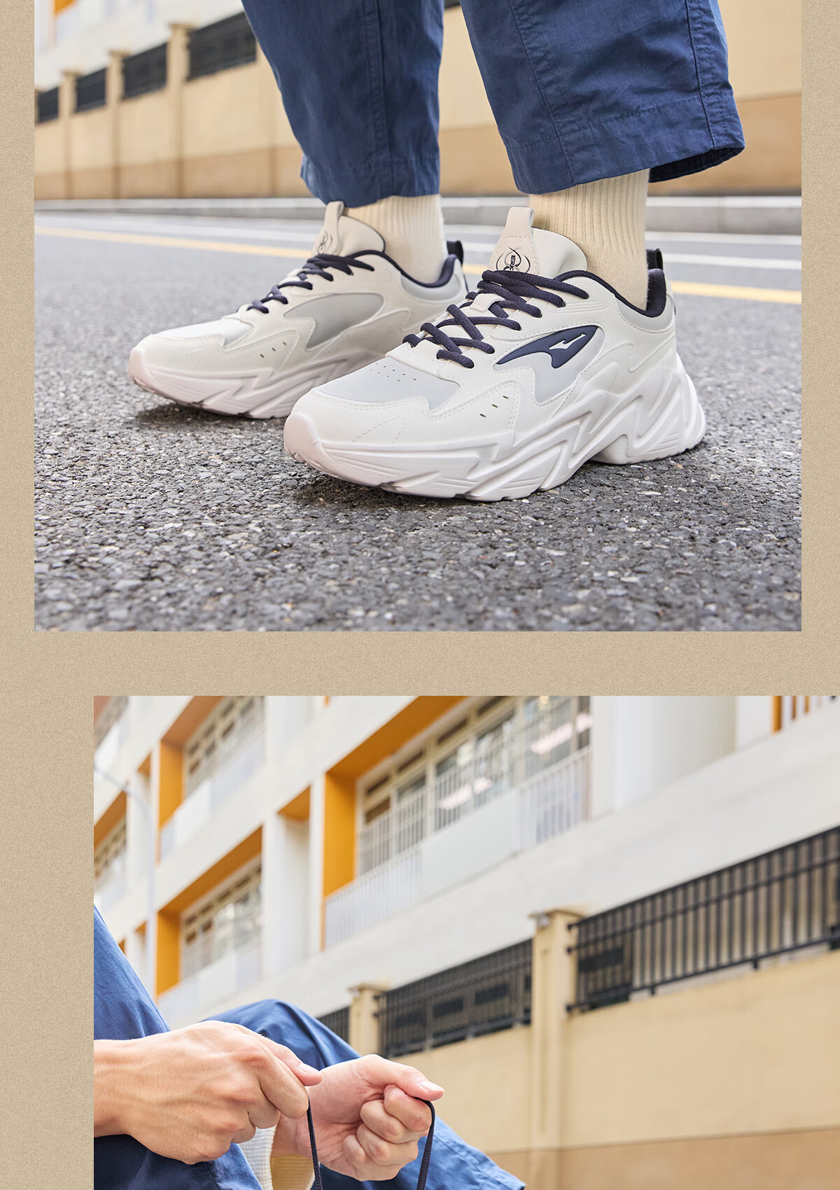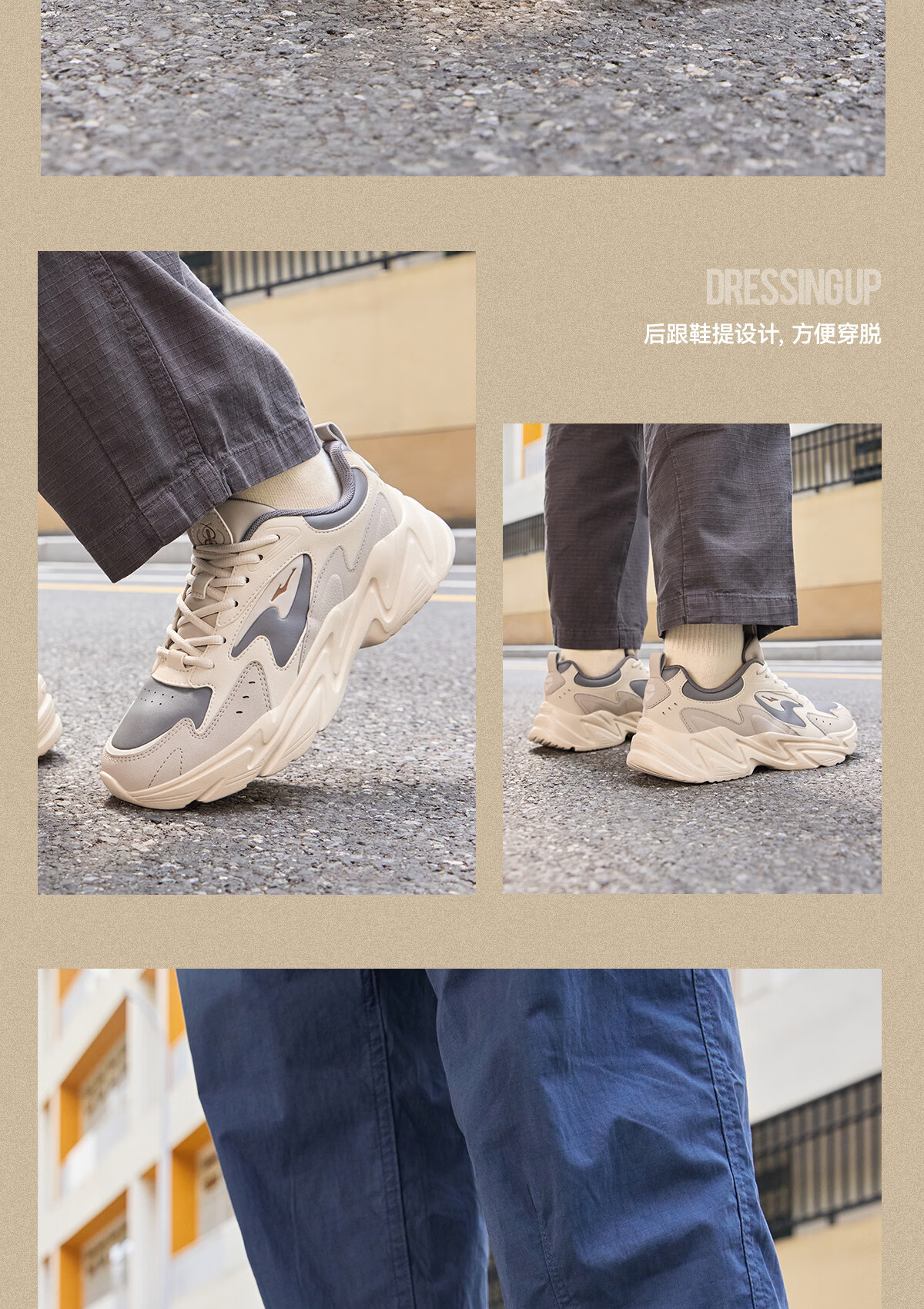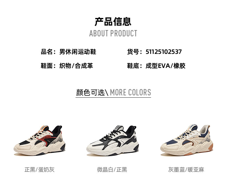 鸿星尔克(ERKE)男鞋2025秋冬新款增高休闲老爹鞋官方正品皮面保暖黑色软底运动鞋 亚麻/灰墨蓝2004(皮网四季款) 41 【品牌直营】