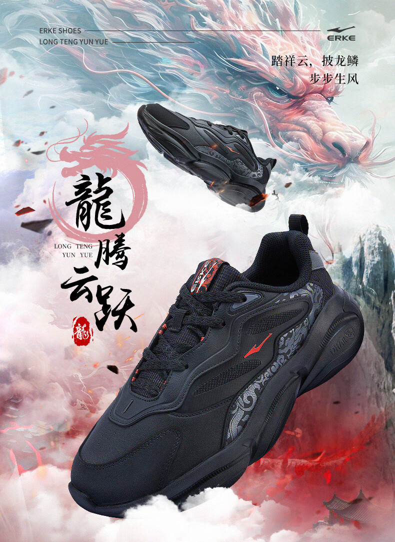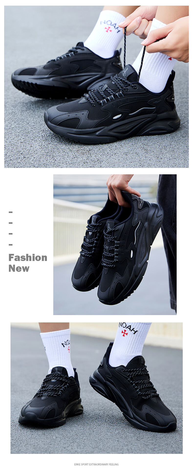 鸿星尔克(ERKE)男鞋2025秋冬新款增高休闲老爹鞋官方正品皮面保暖黑色软底运动鞋 正黑/深冷灰2004(皮网四季款) 39 【官方正品】