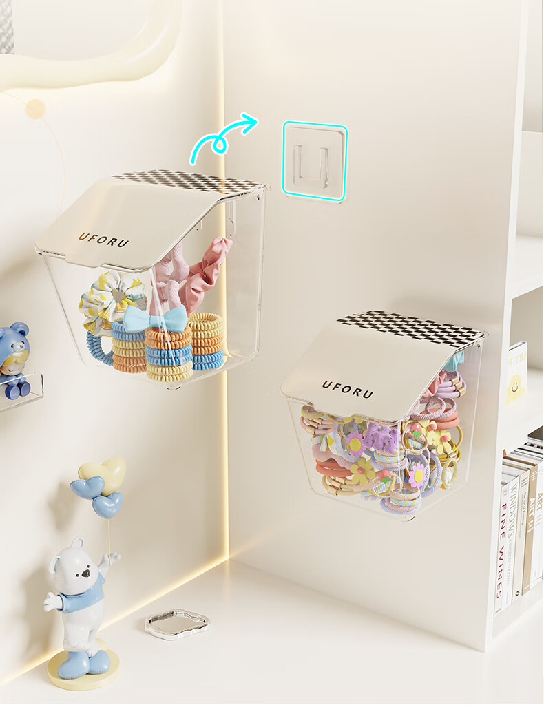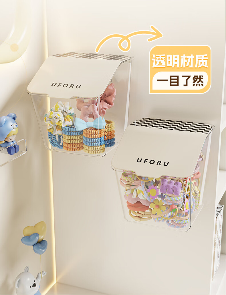 木格格壁挂收纳盒透明塑料盒亚克力小号化妆品零食杂物整理箱宿舍储物盒 四个装