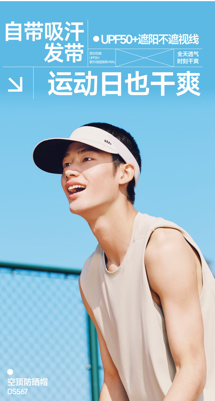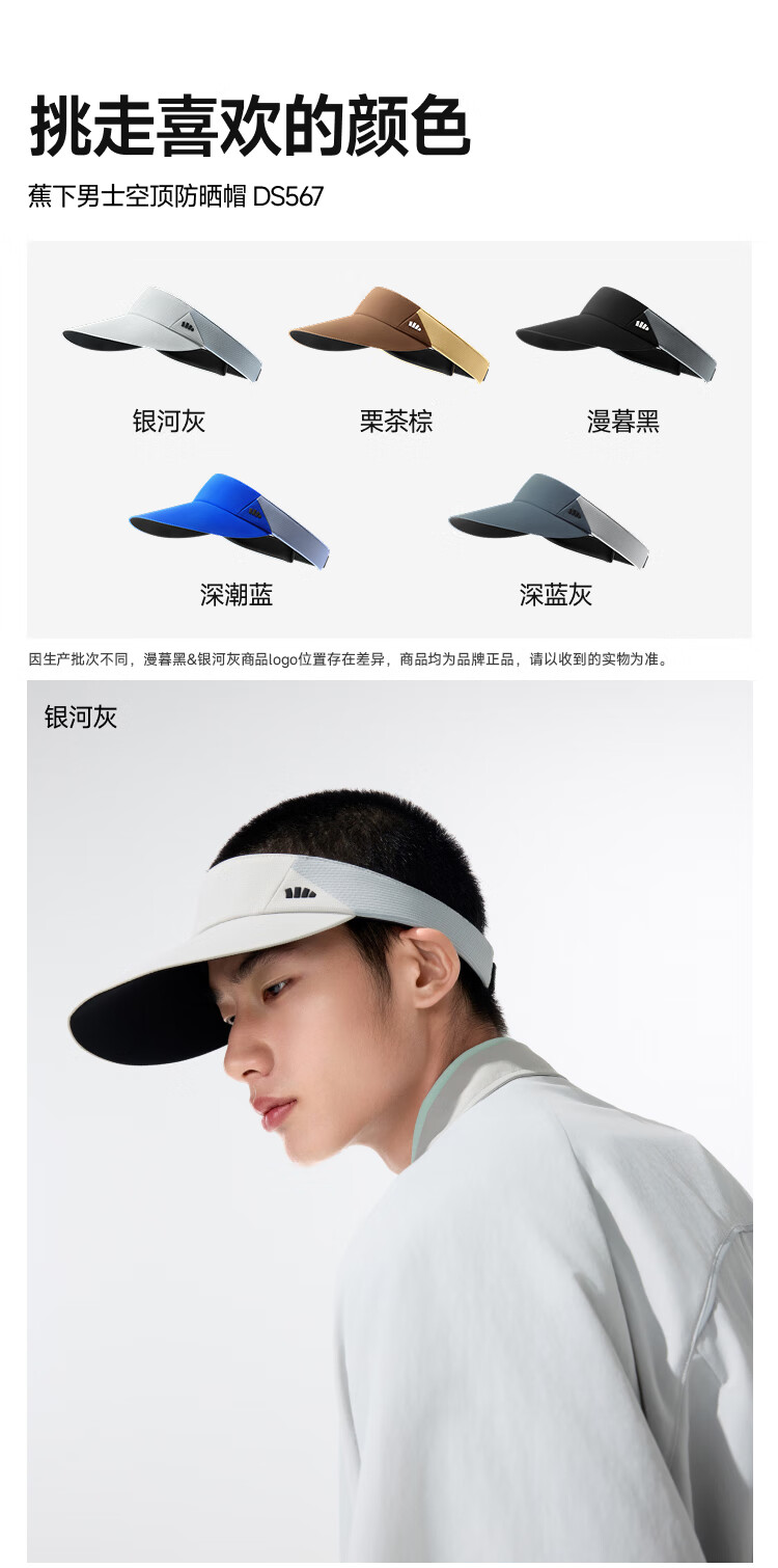 蕉下(beneunder)网球帽遮阳帽男士防晒帽子空顶帽运动吸汗全脸遮阳太阳帽漫暮黑