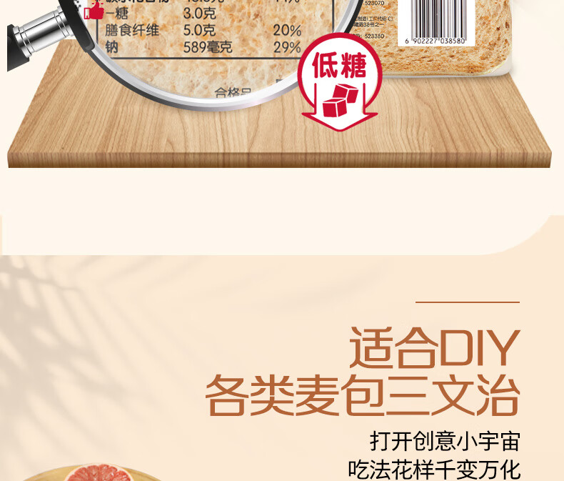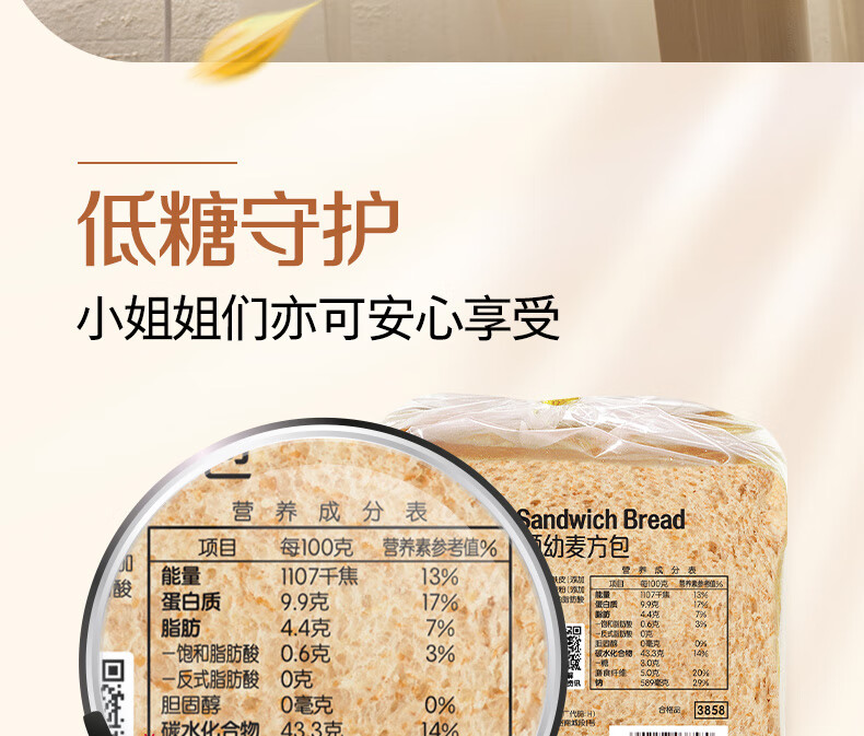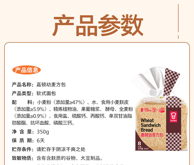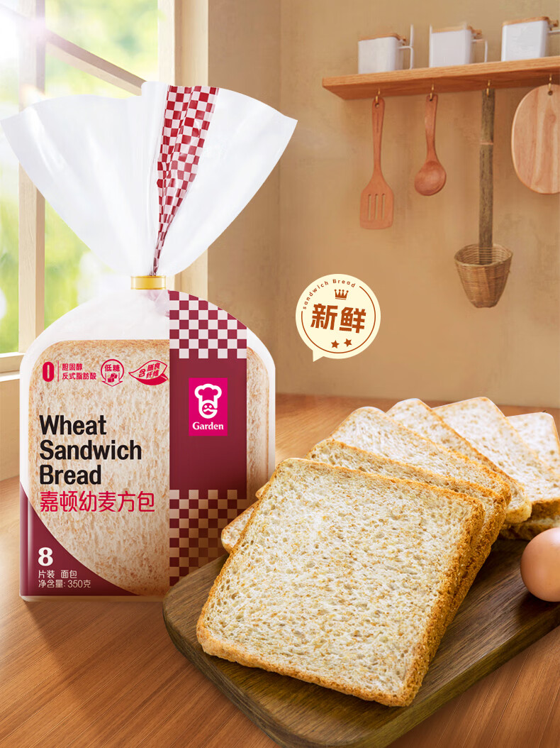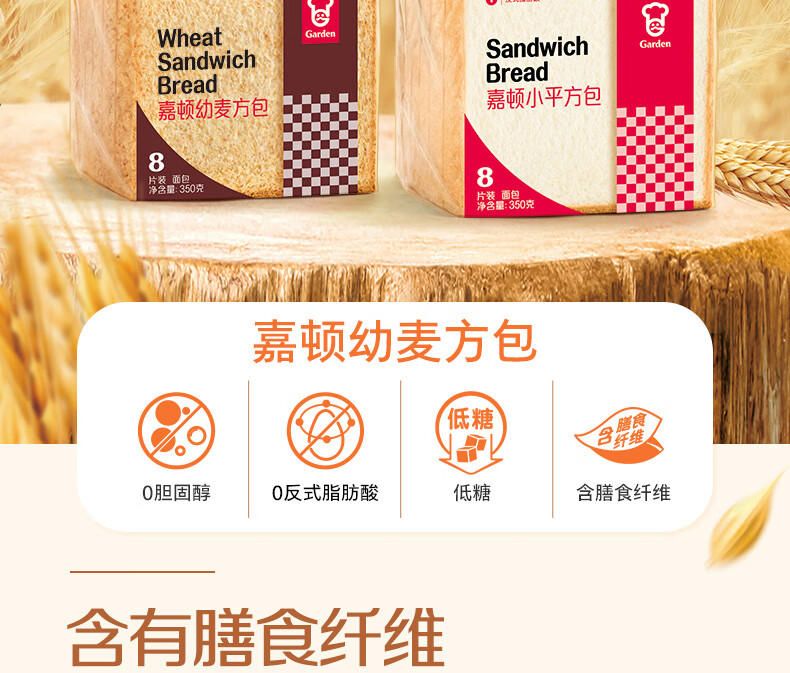 嘉顿(Garden) 幼麦方包 两袋装700g 新鲜面包 营养早餐休闲零食饱腹面包点心