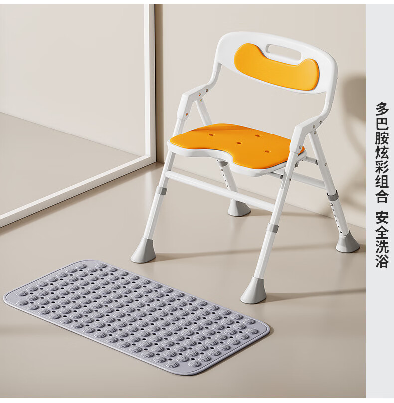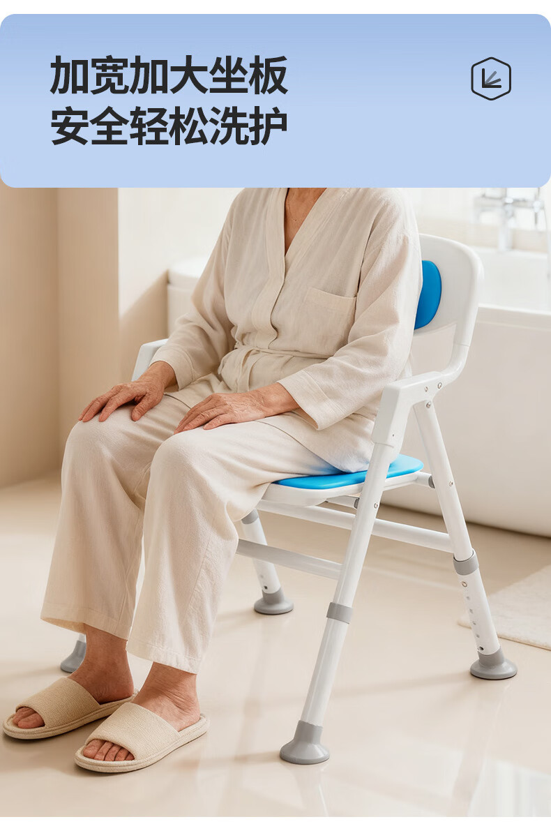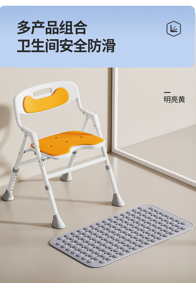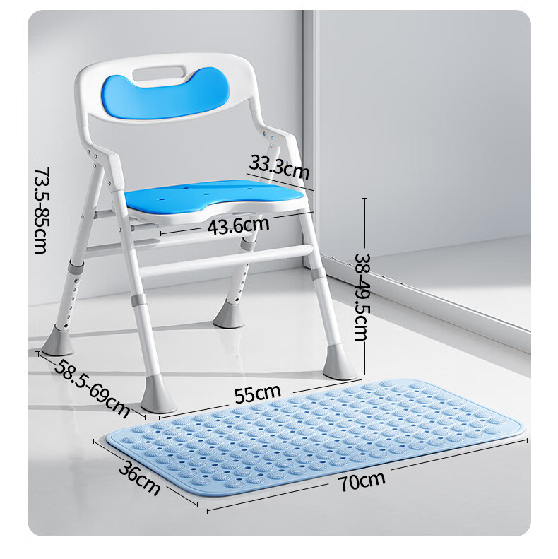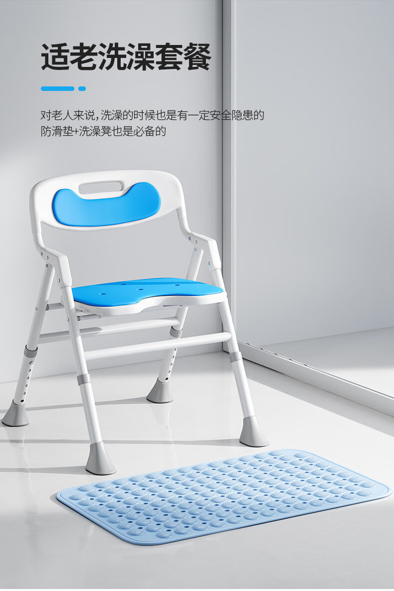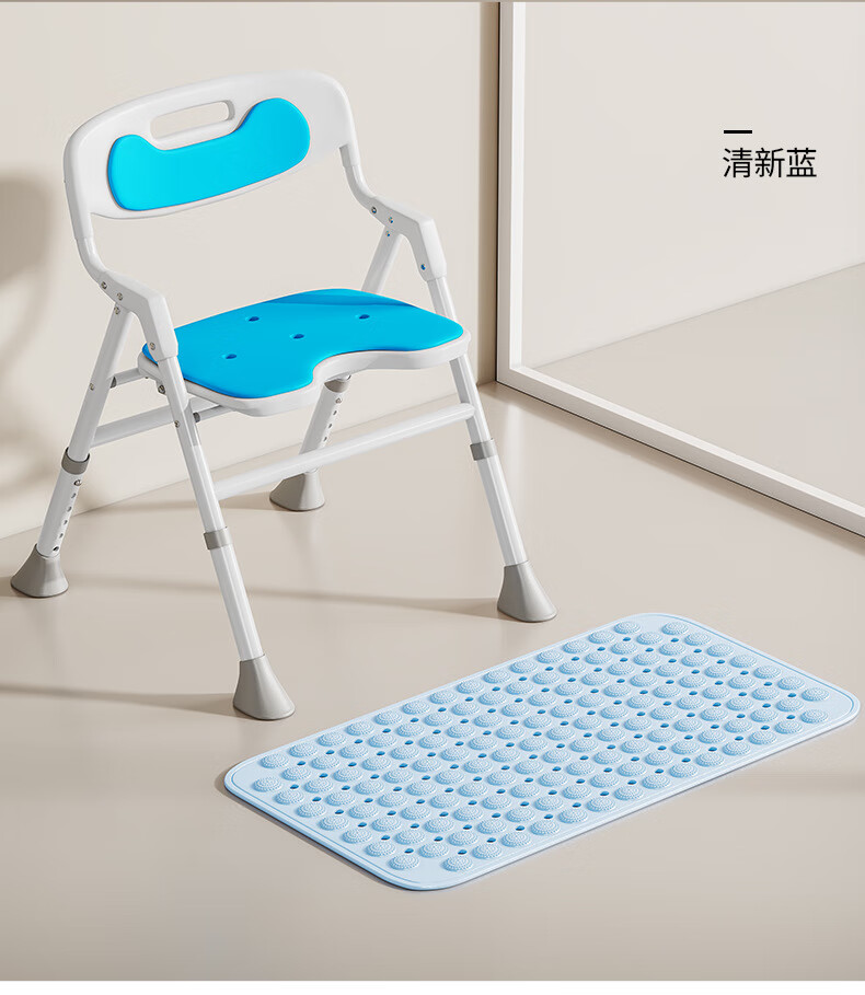 家文化(JIAWENHUA)日式老人洗澡专用椅淋浴防滑垫孕妇座椅卫生间老年人浴室沐浴凳子 免打孔洗澡椅蓝+蓝防滑垫36x70cm