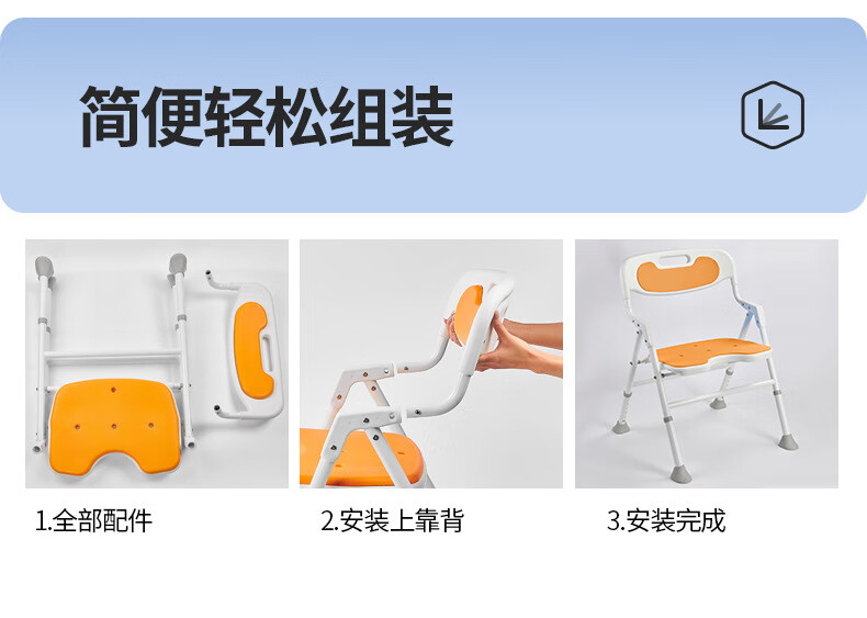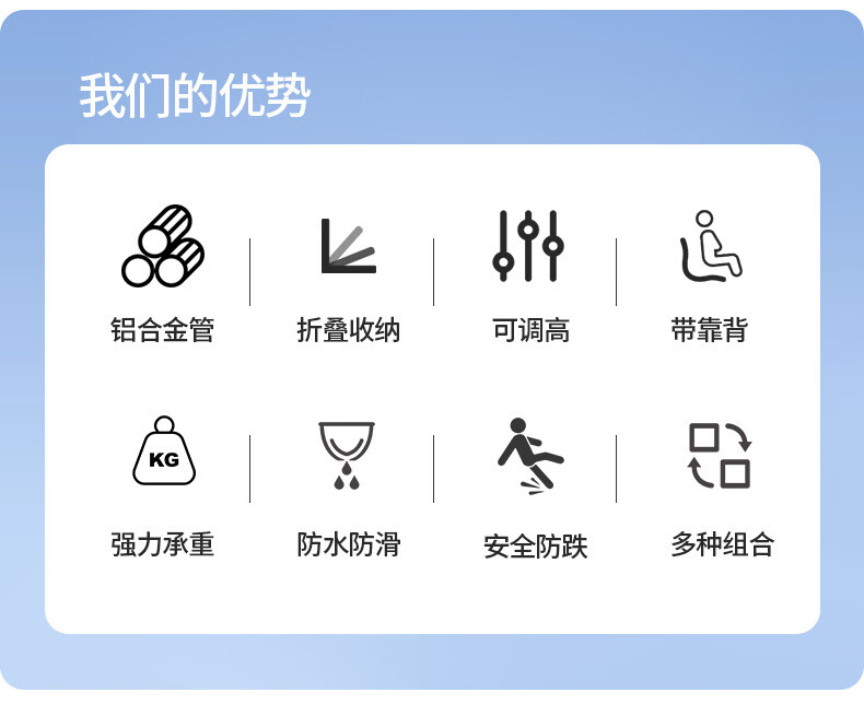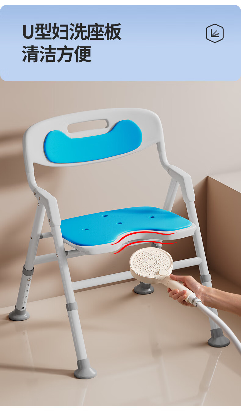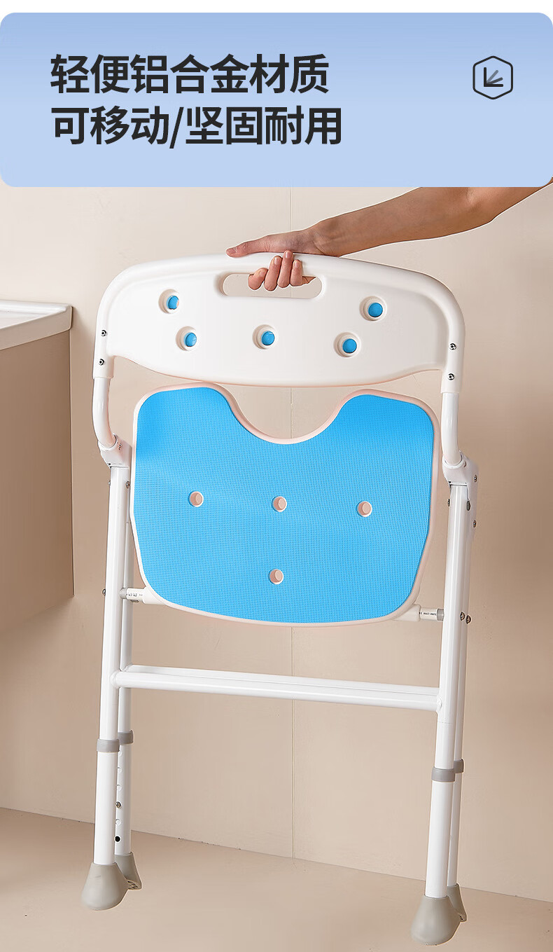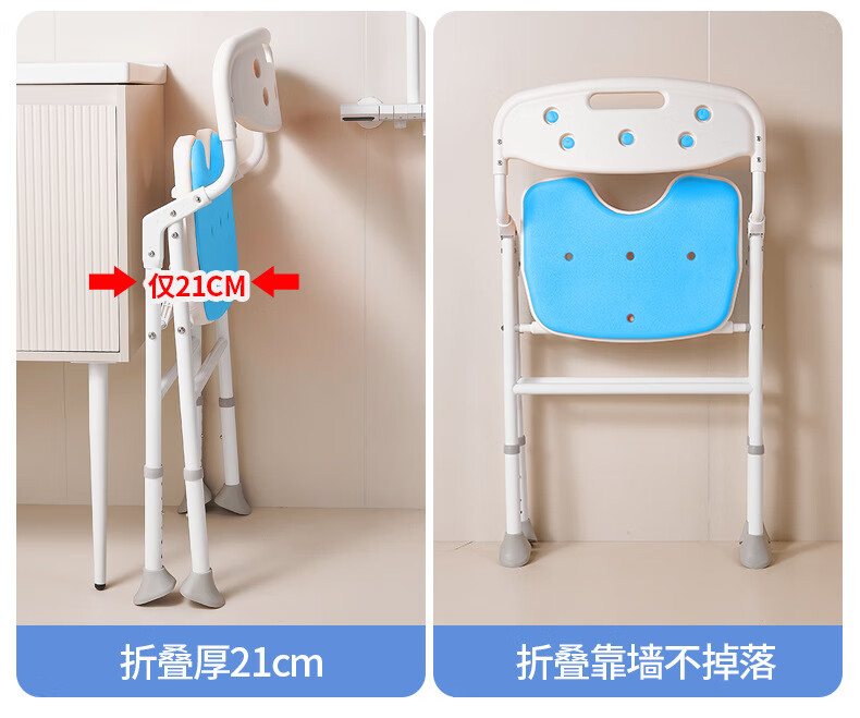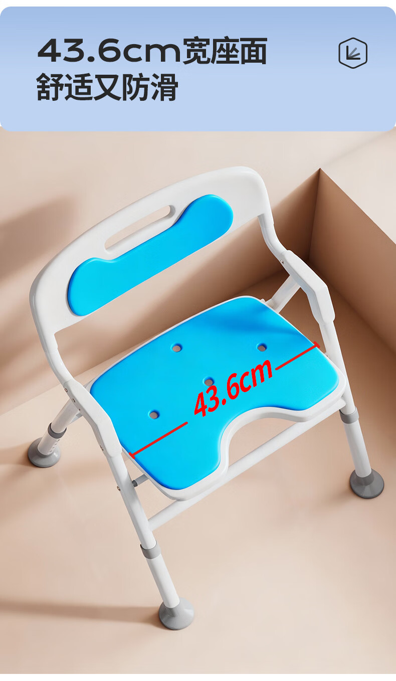 家文化(JIAWENHUA)日式老人洗澡专用椅淋浴防滑垫孕妇座椅卫生间老年人浴室沐浴凳子 免打孔洗澡椅蓝+蓝防滑垫36x70cm