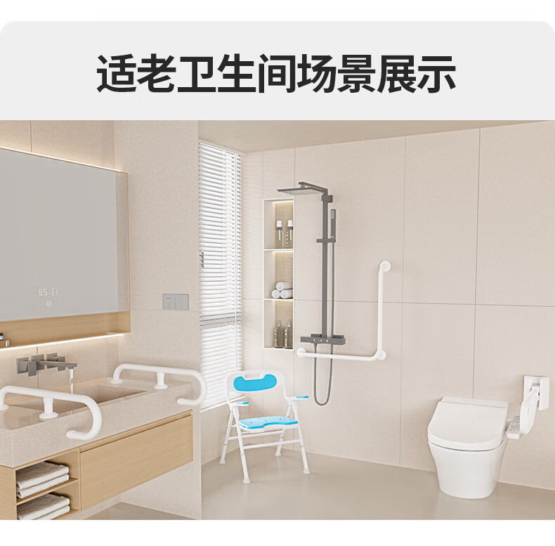 家文化(JIAWENHUA)老人坐式恒温淋浴器卫生间浴室淋浴椅多功能壁挂式淋浴凳花洒扶手 等腰梯形淋浴器月光白(分体双淋浴臂+手持)
