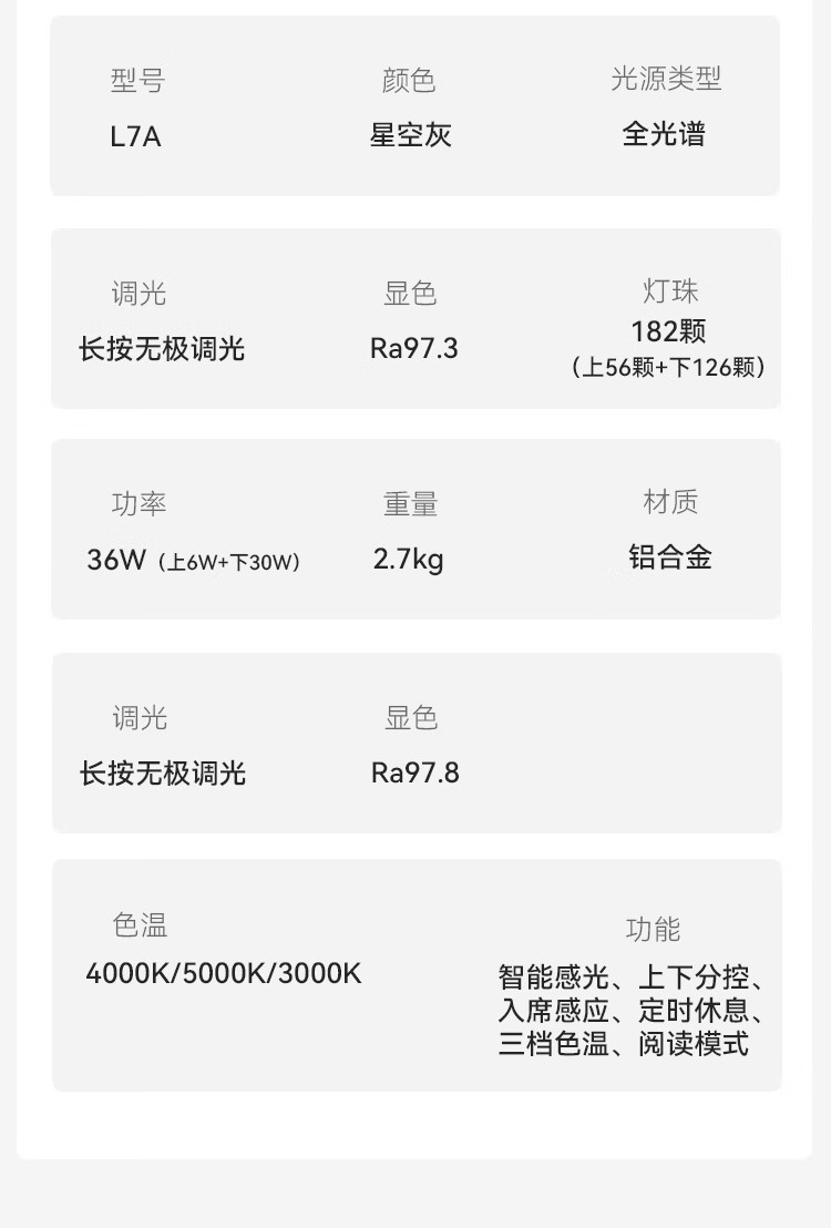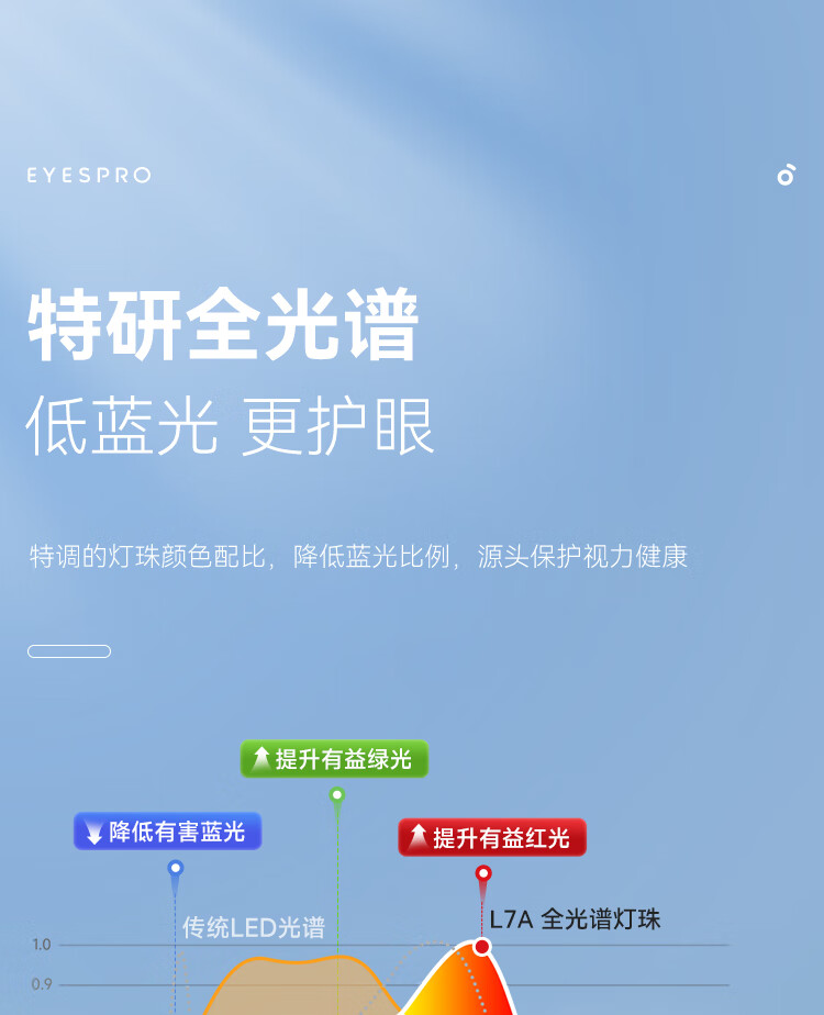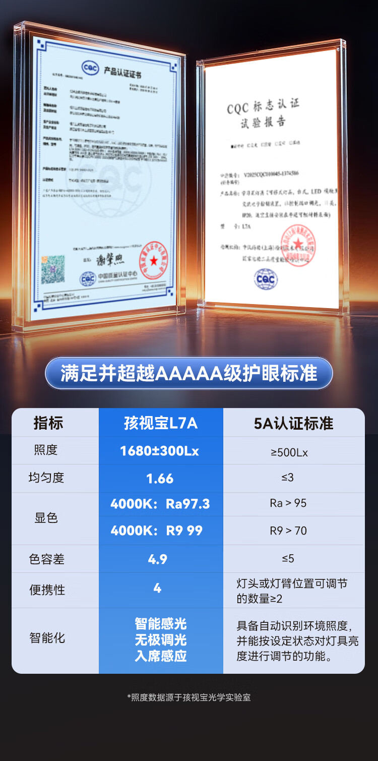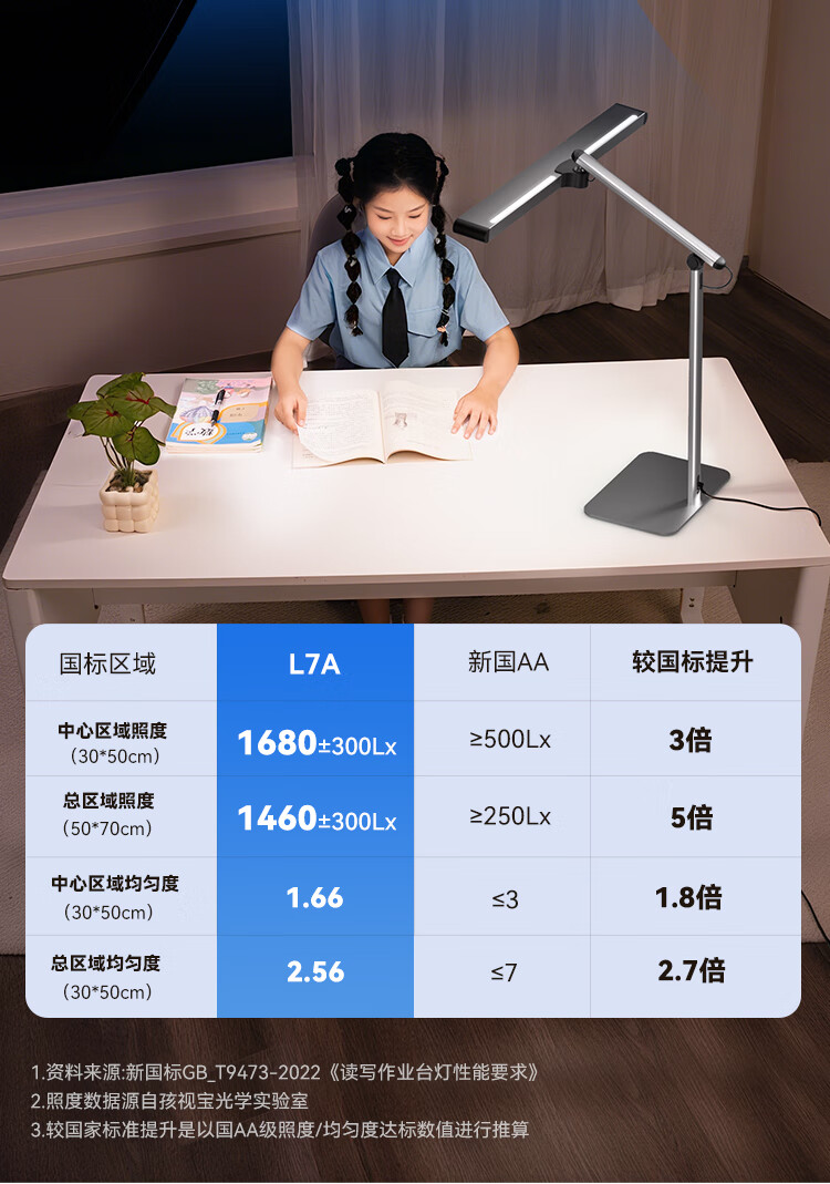 孩视宝国5a级儿童阅读护眼台灯学生学习防蓝光全光谱学习桌专用L7A