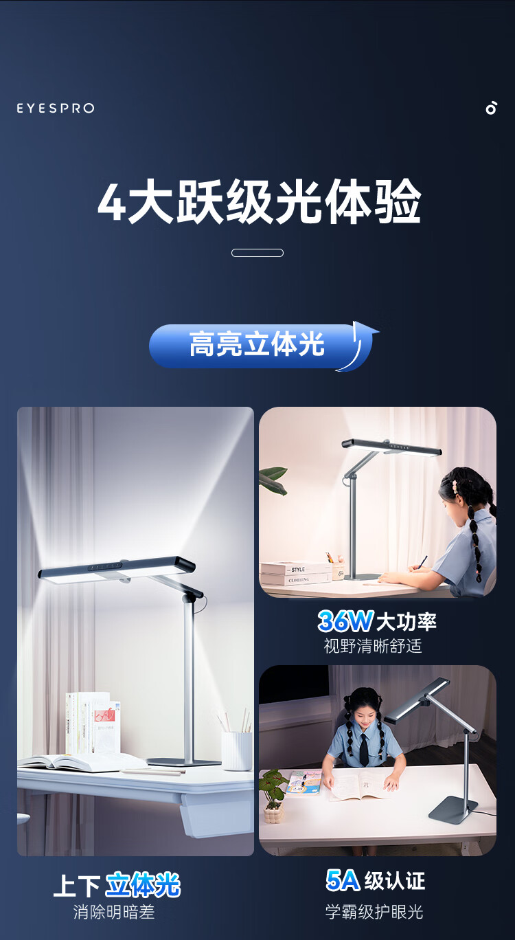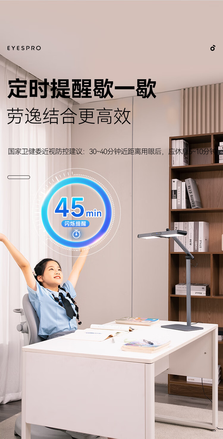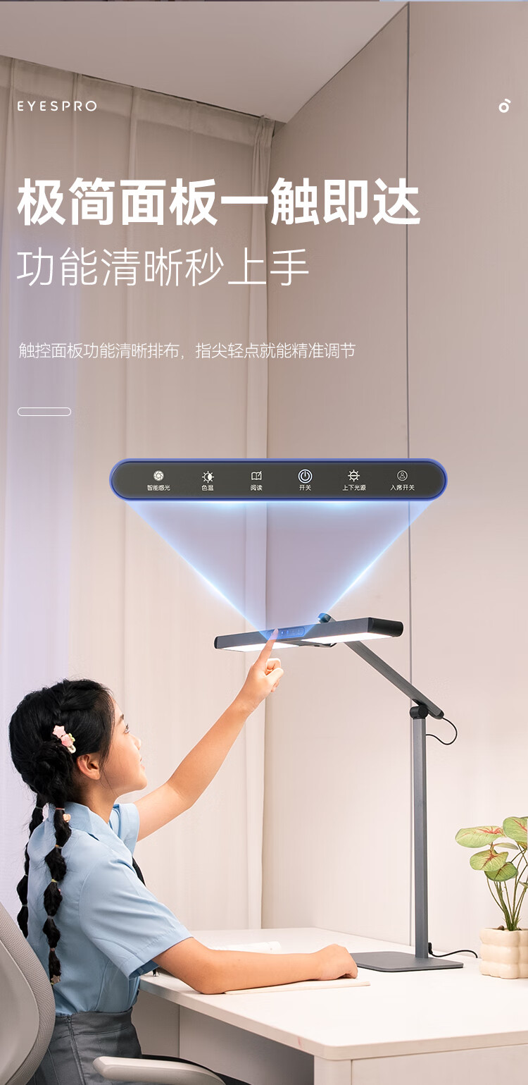 欧普照明(OPPLE)智控调光护眼台灯学习儿童学生防蓝光防近视全光谱米悦pro