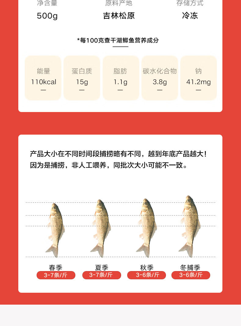 查干湖三去鲫鱼1斤净重 去鳞去鳃去内脏净膛源头直发包邮