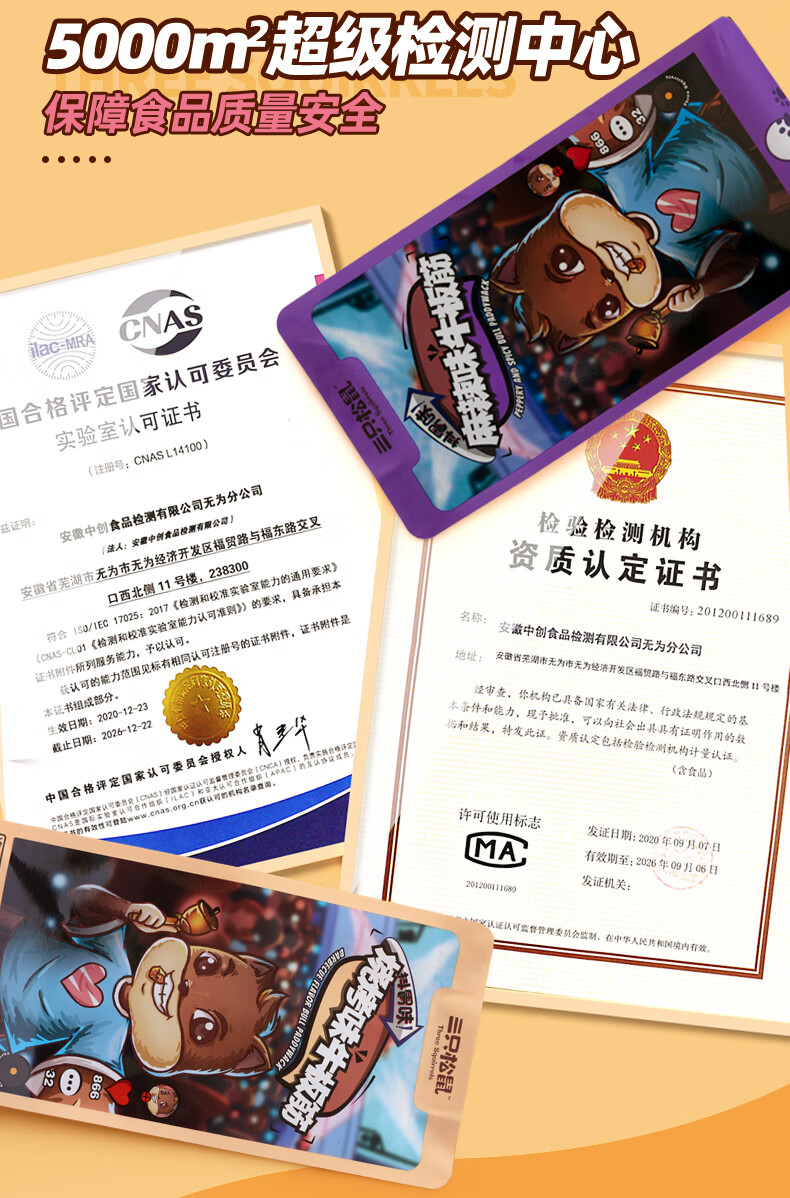 三只松鼠牛板筋烧烤味120g休闲零食牛肉干肉脯小吃牛筋牛肉粒解馋