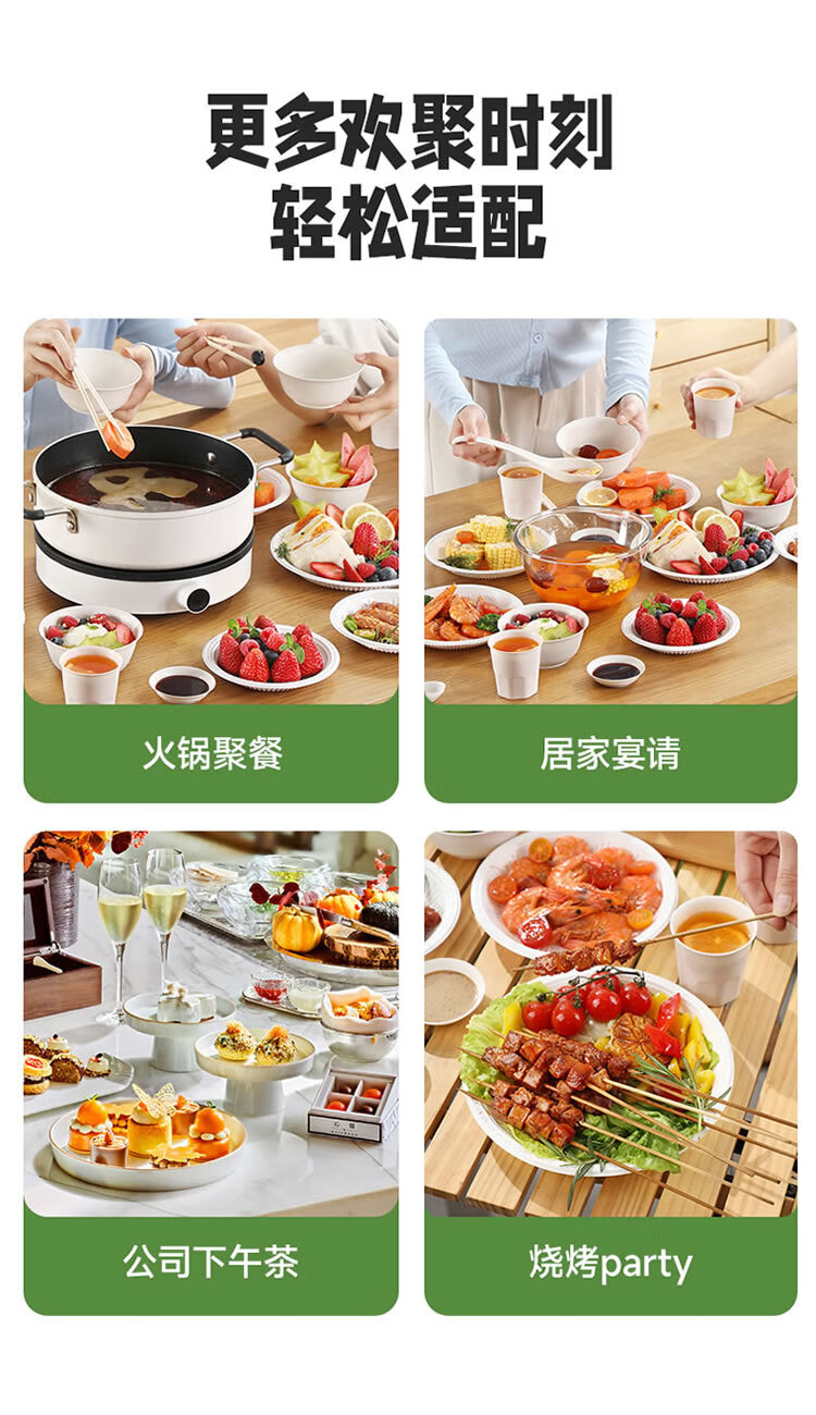 美丽雅 一次性碗筷套装10人份 碗筷杯勺碟盘桌布户外露营野餐餐具