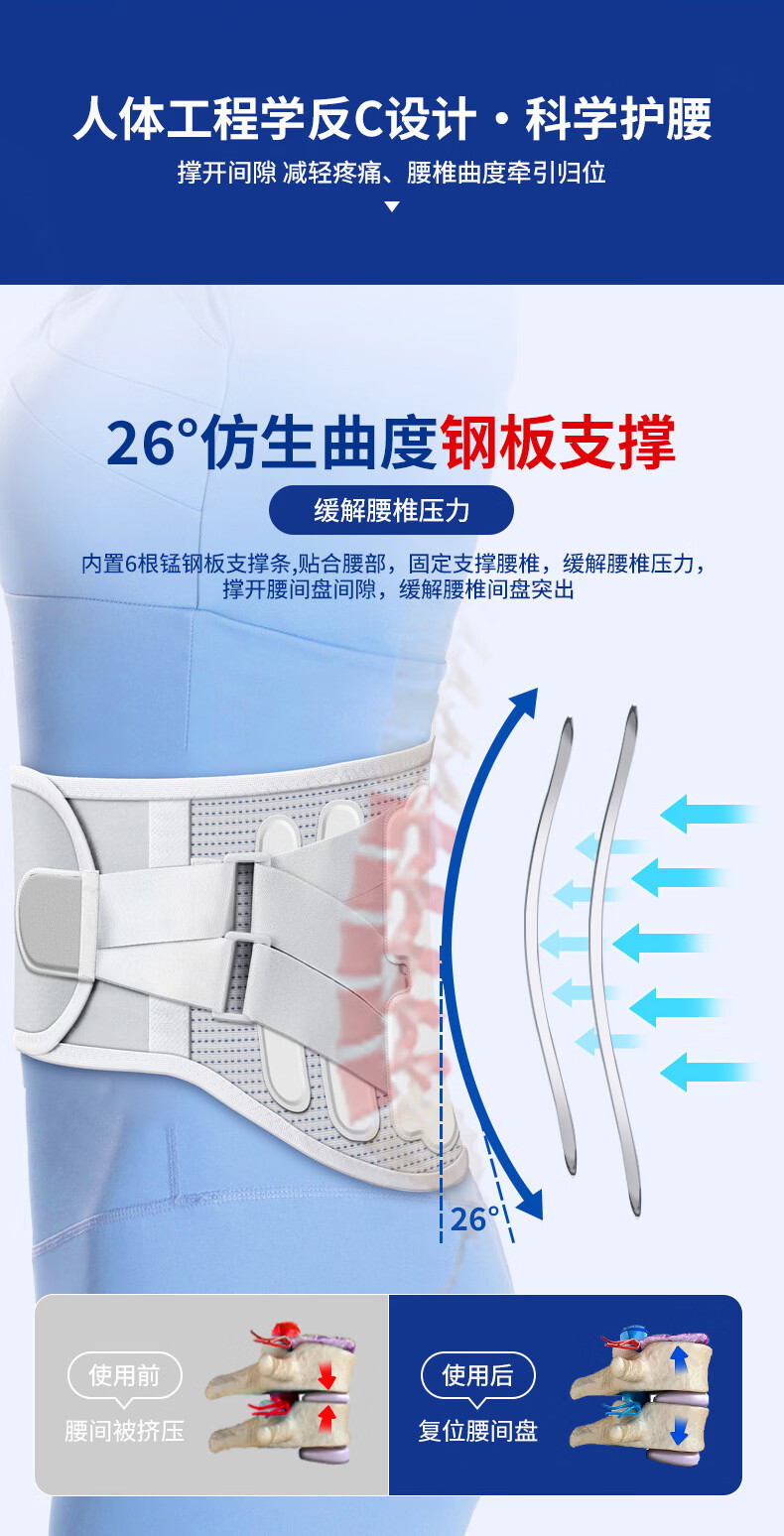 ZEAMO医用护腰带腰肌劳损腰椎腰间盘突出专用男女腰酸腰疼骨折滑脱术后 【轻症_日常款】医用护腰带基础垫片 M【80-110斤 腰围1尺9-2尺2】