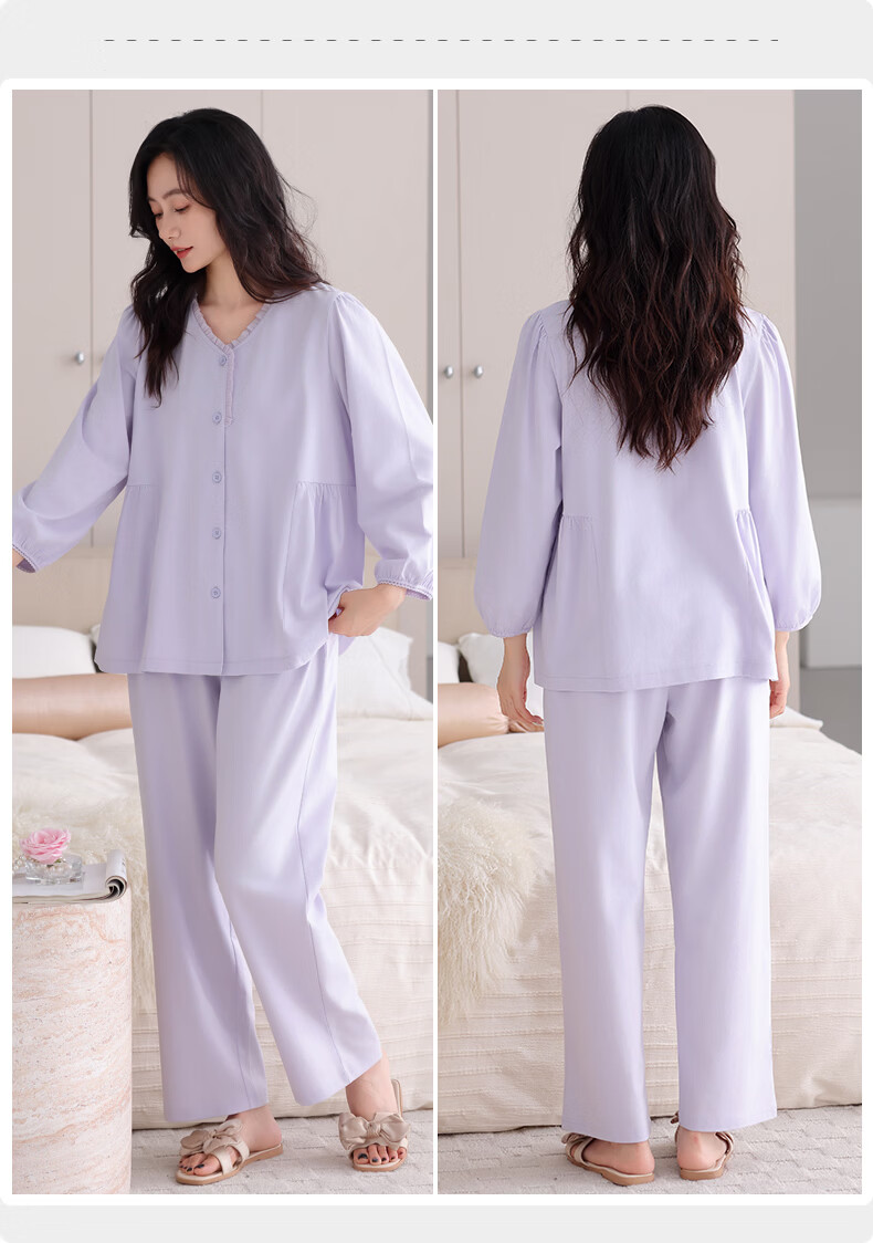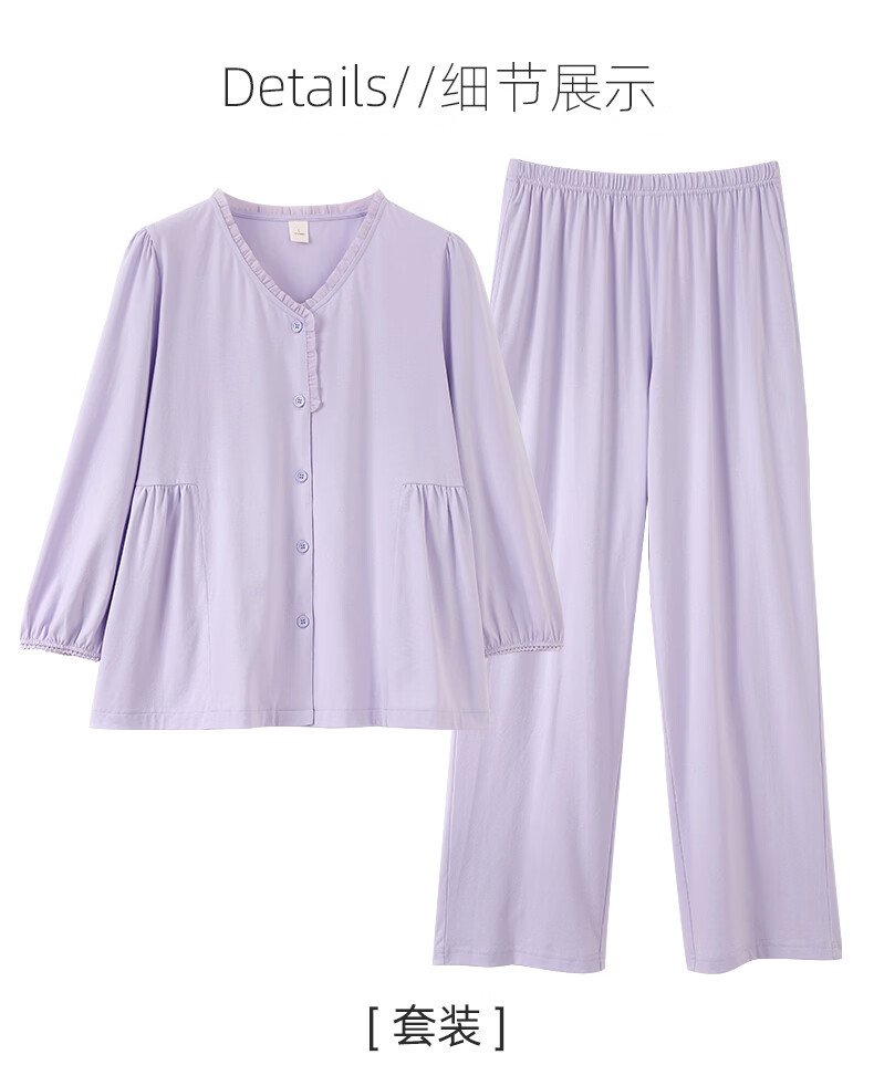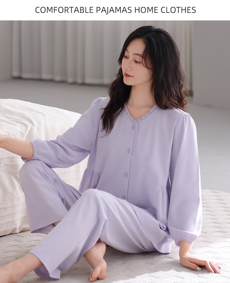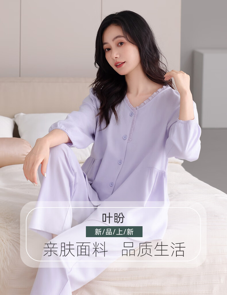 叶盼(yepan)【柔软】莱卡纯棉睡衣女长袖春秋季宽松大码可外穿女士家居服套装 86565-铃兰紫 M (160) :建议80-100斤穿着