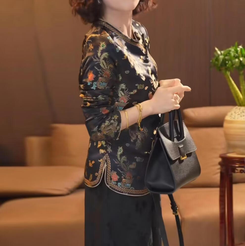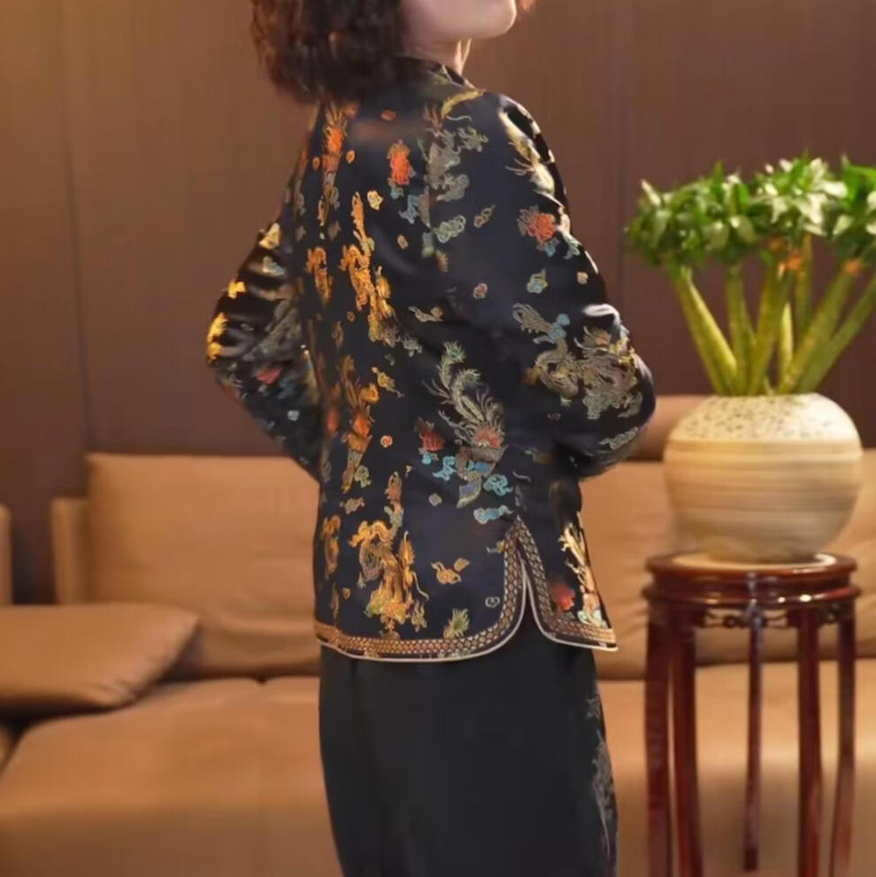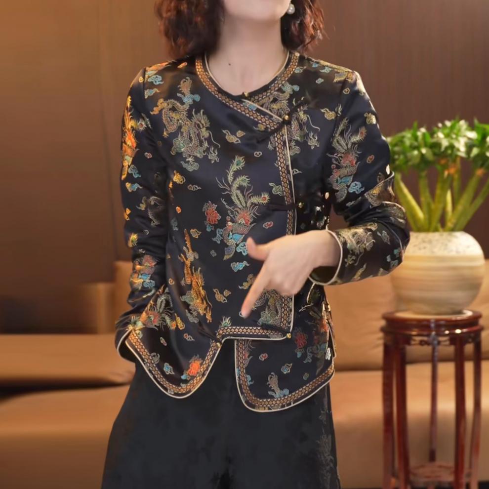 MODX龙凤呈祥衫新中式织锦偏襟不等式时尚国风上衣时尚百搭感套装 图片色上衣 M 90-120斤