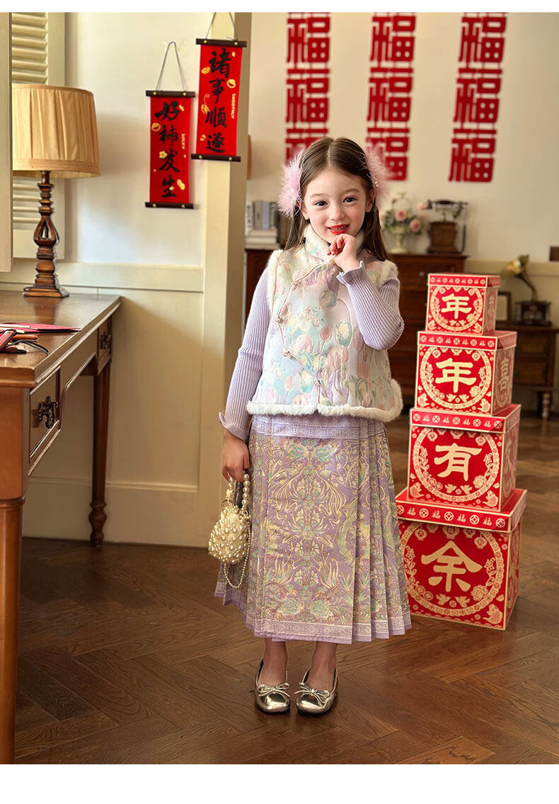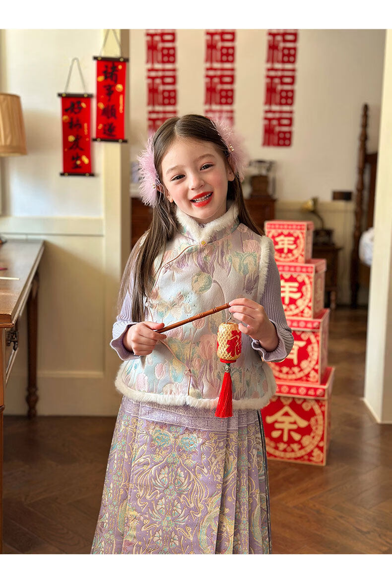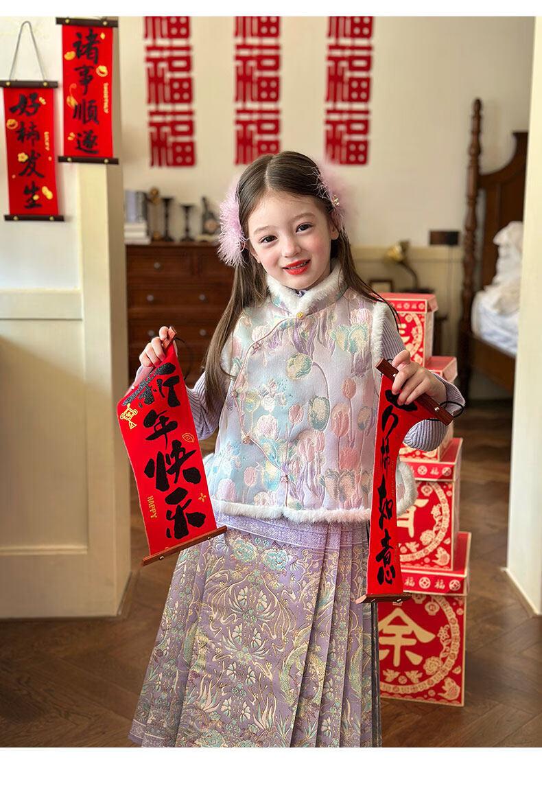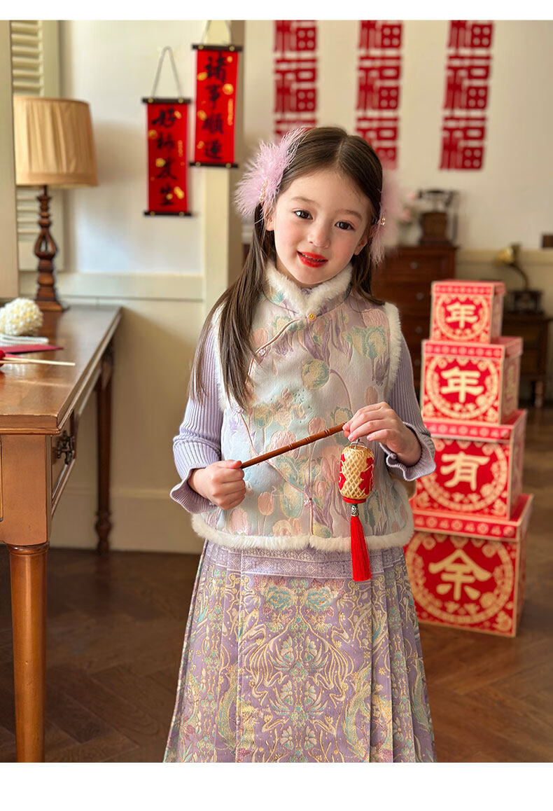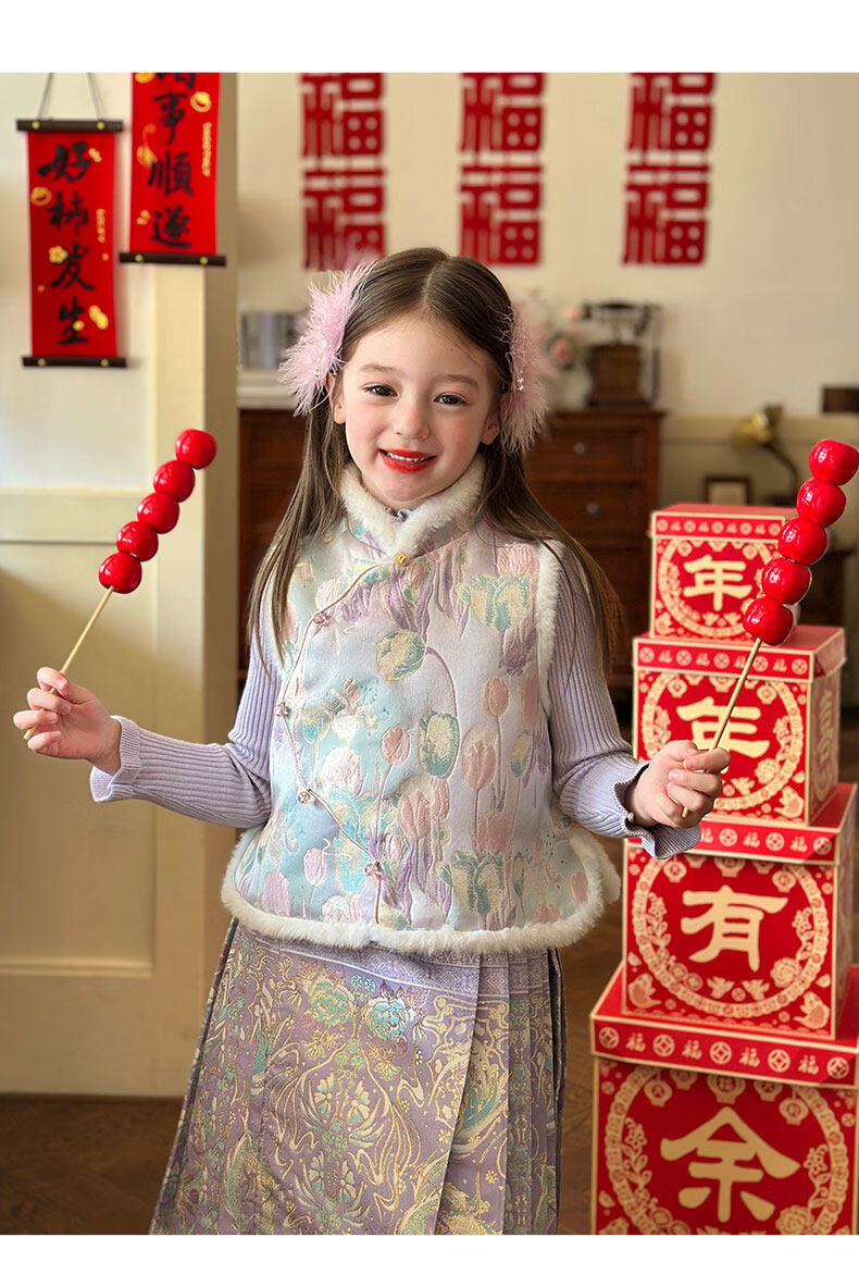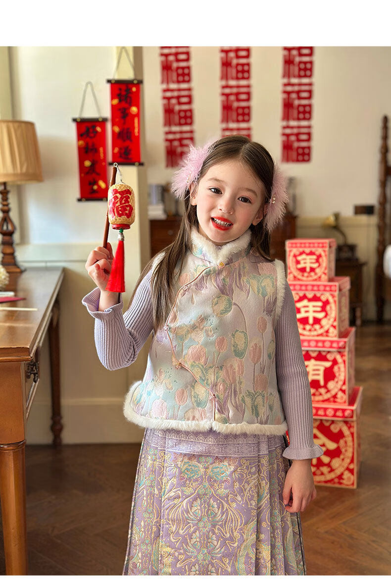 栀了成长记童装女童国风唐装上衣2025冬季儿童郁金香夹棉新年马甲 紫色 马甲 150