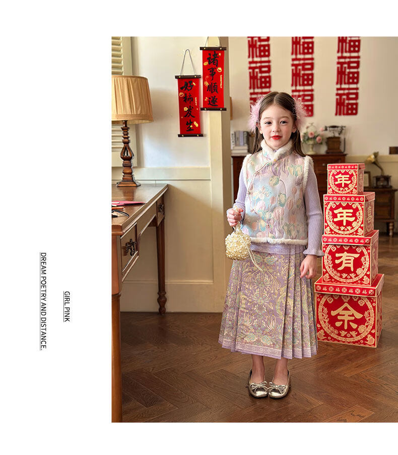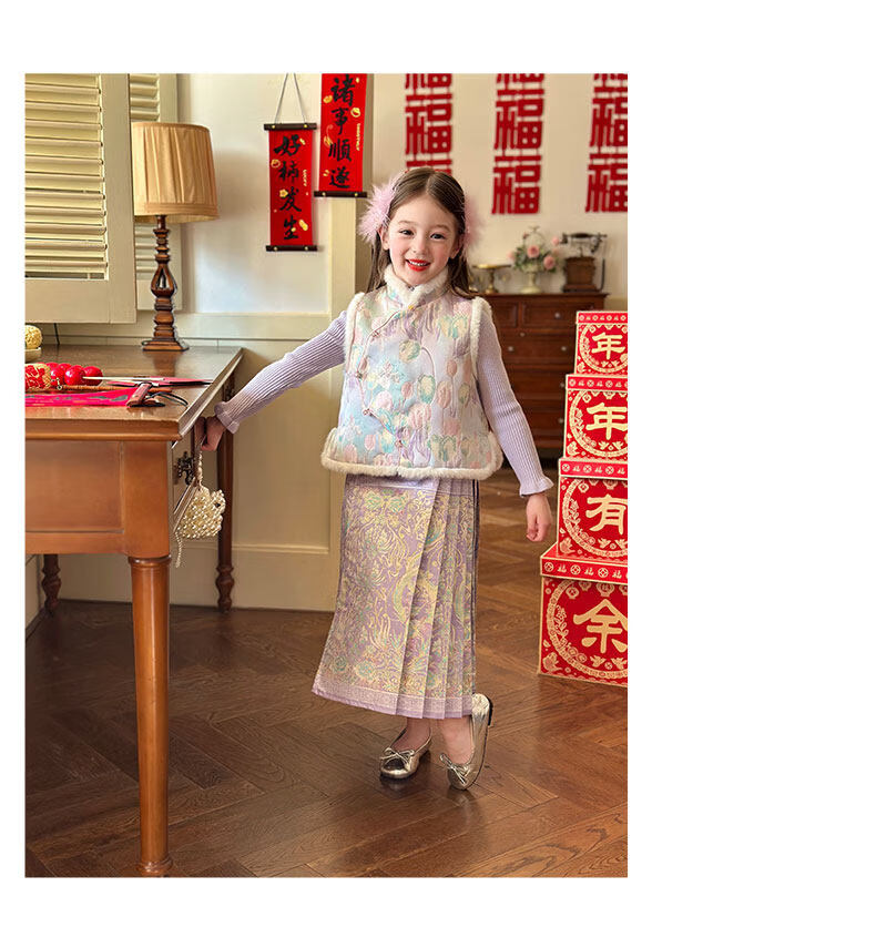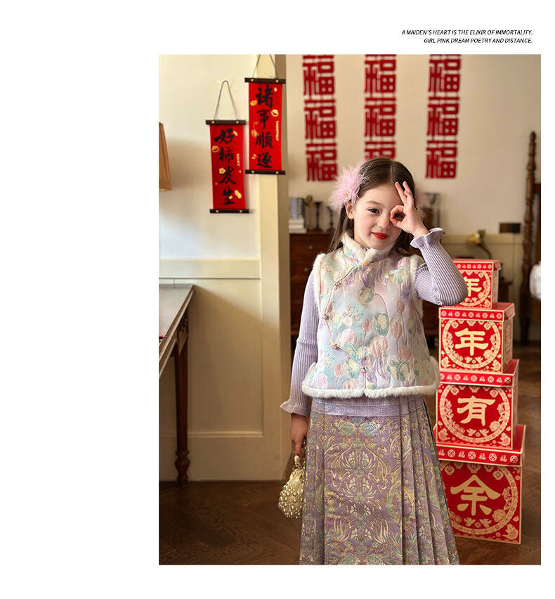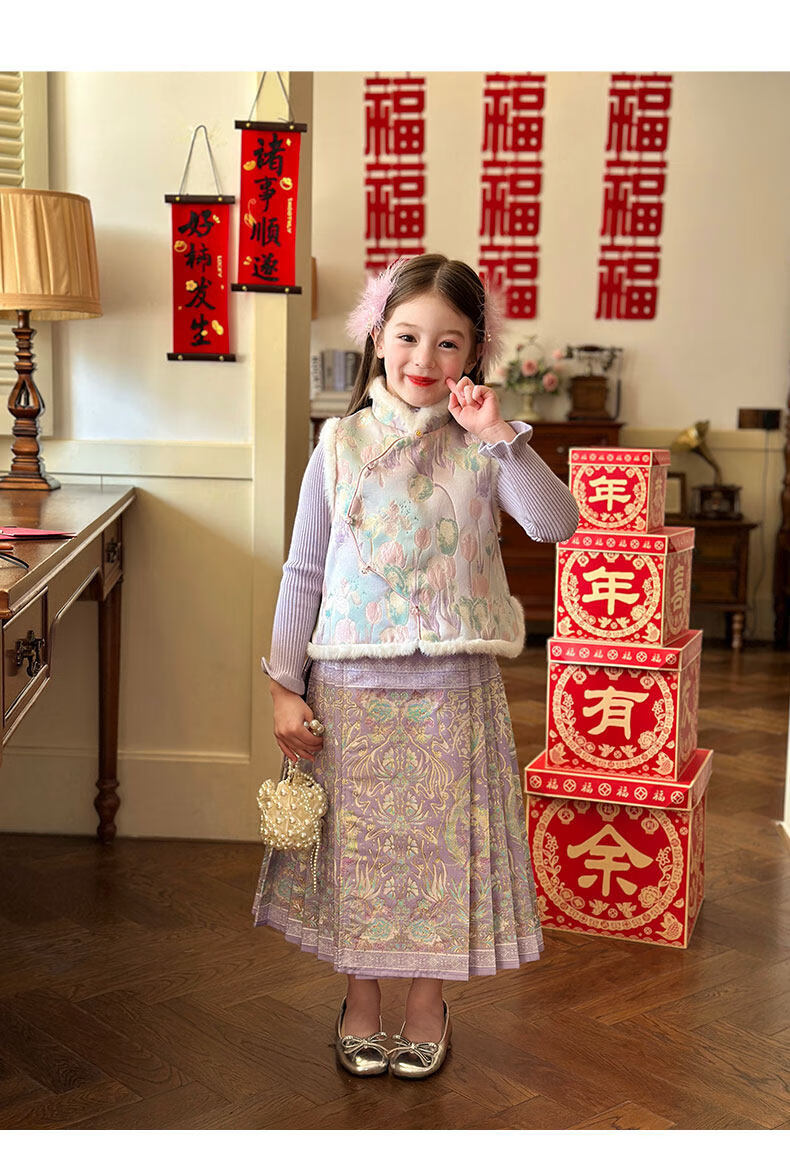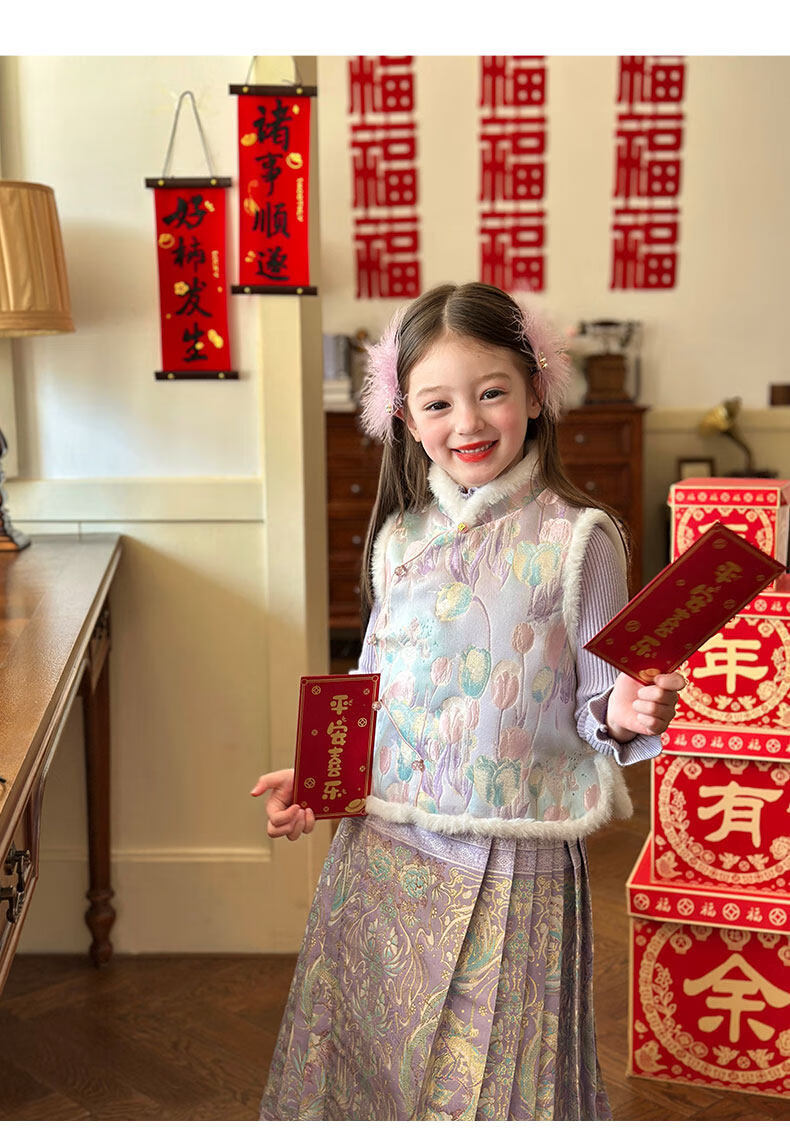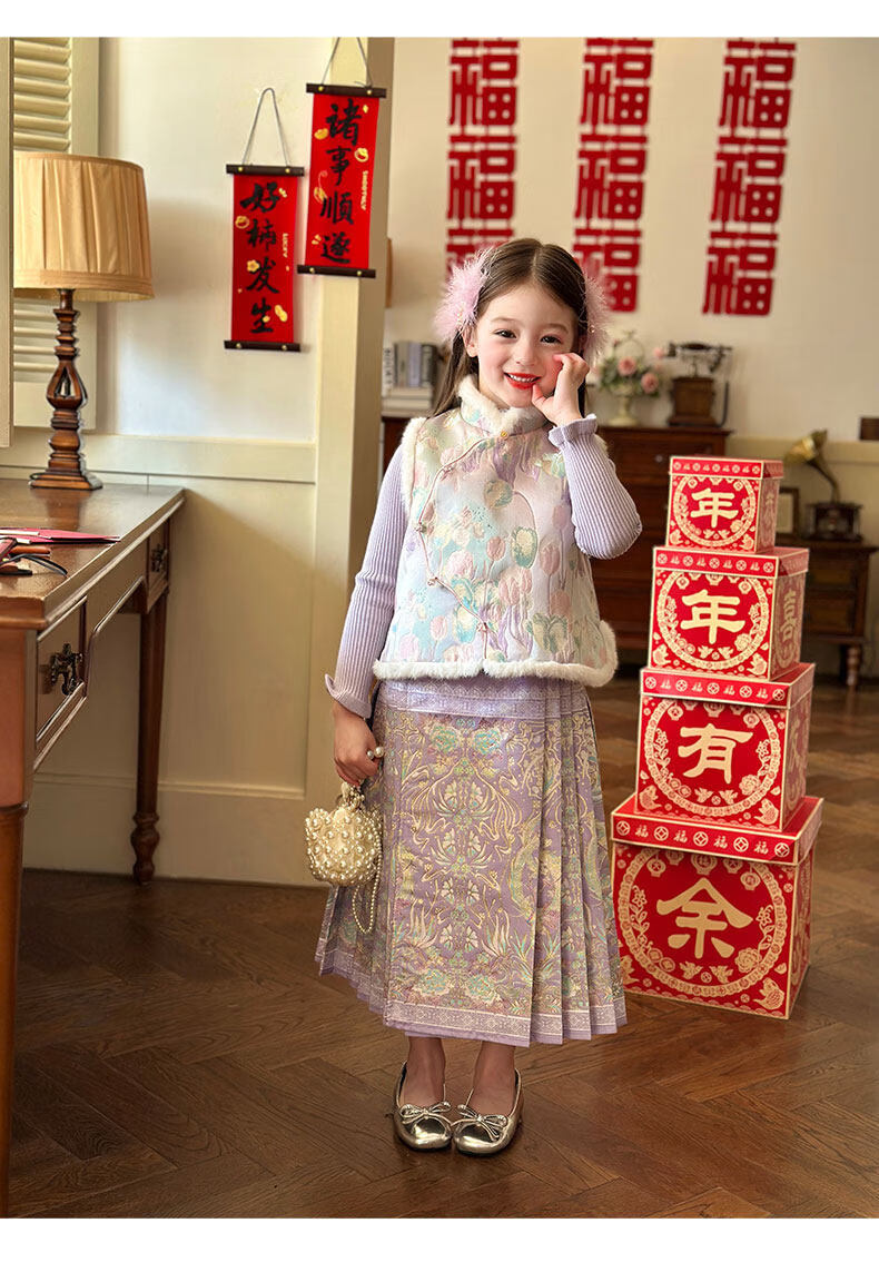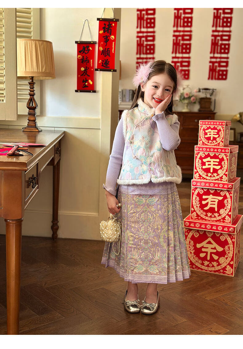栀了成长记童装女童国风唐装上衣2025冬季儿童郁金香夹棉新年马甲 紫色 马甲 150