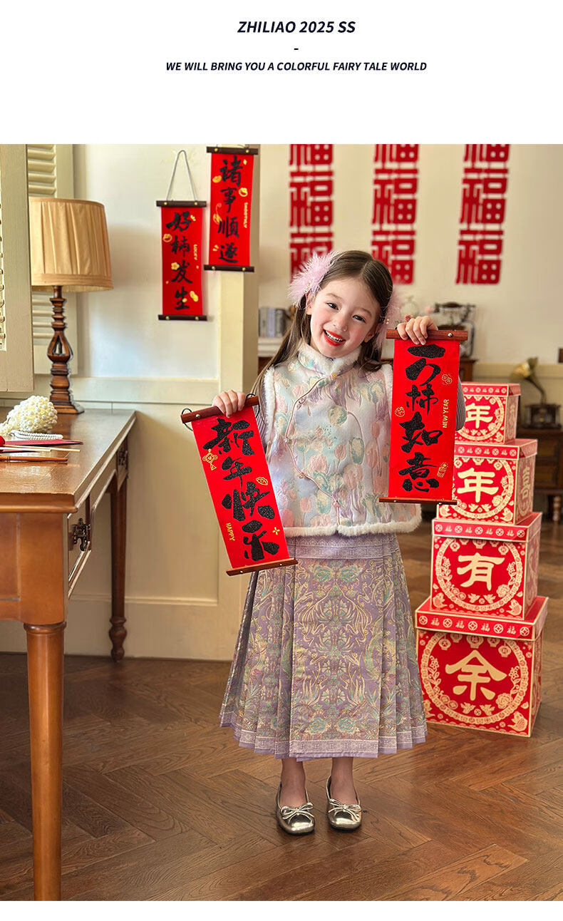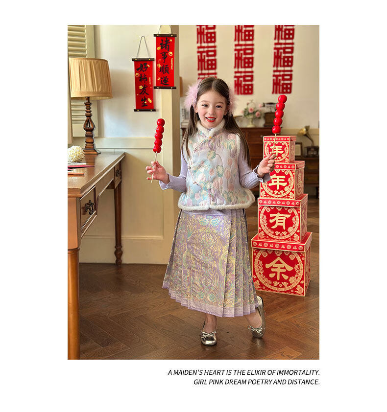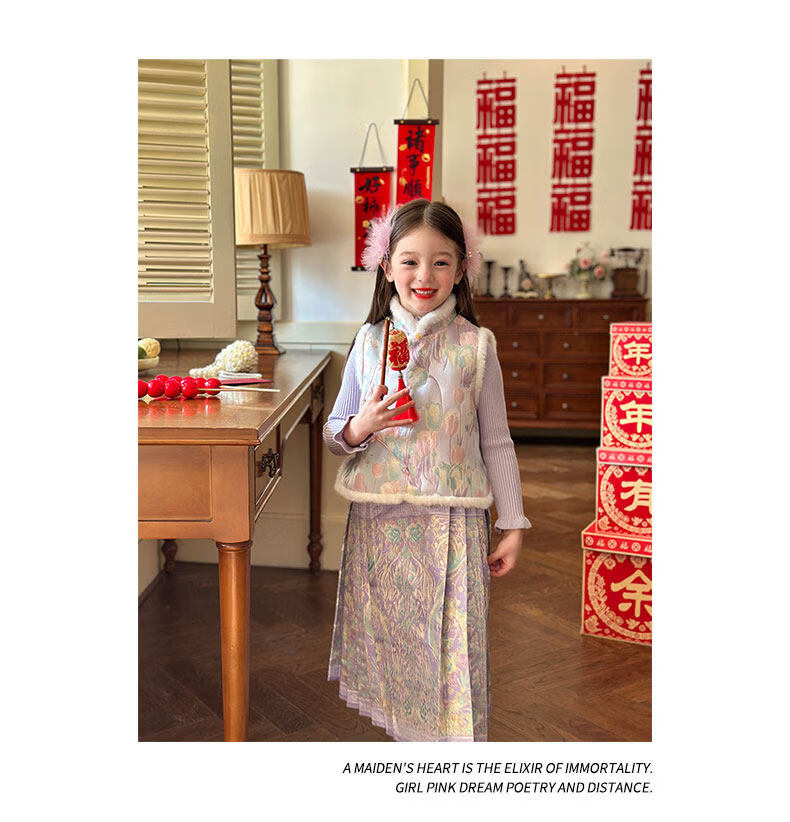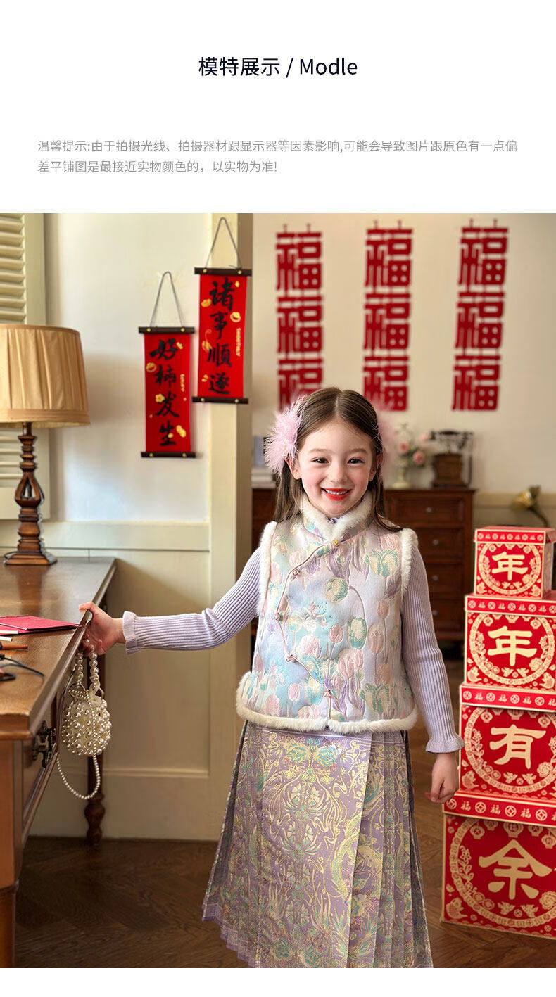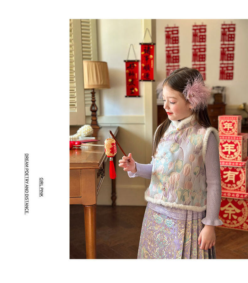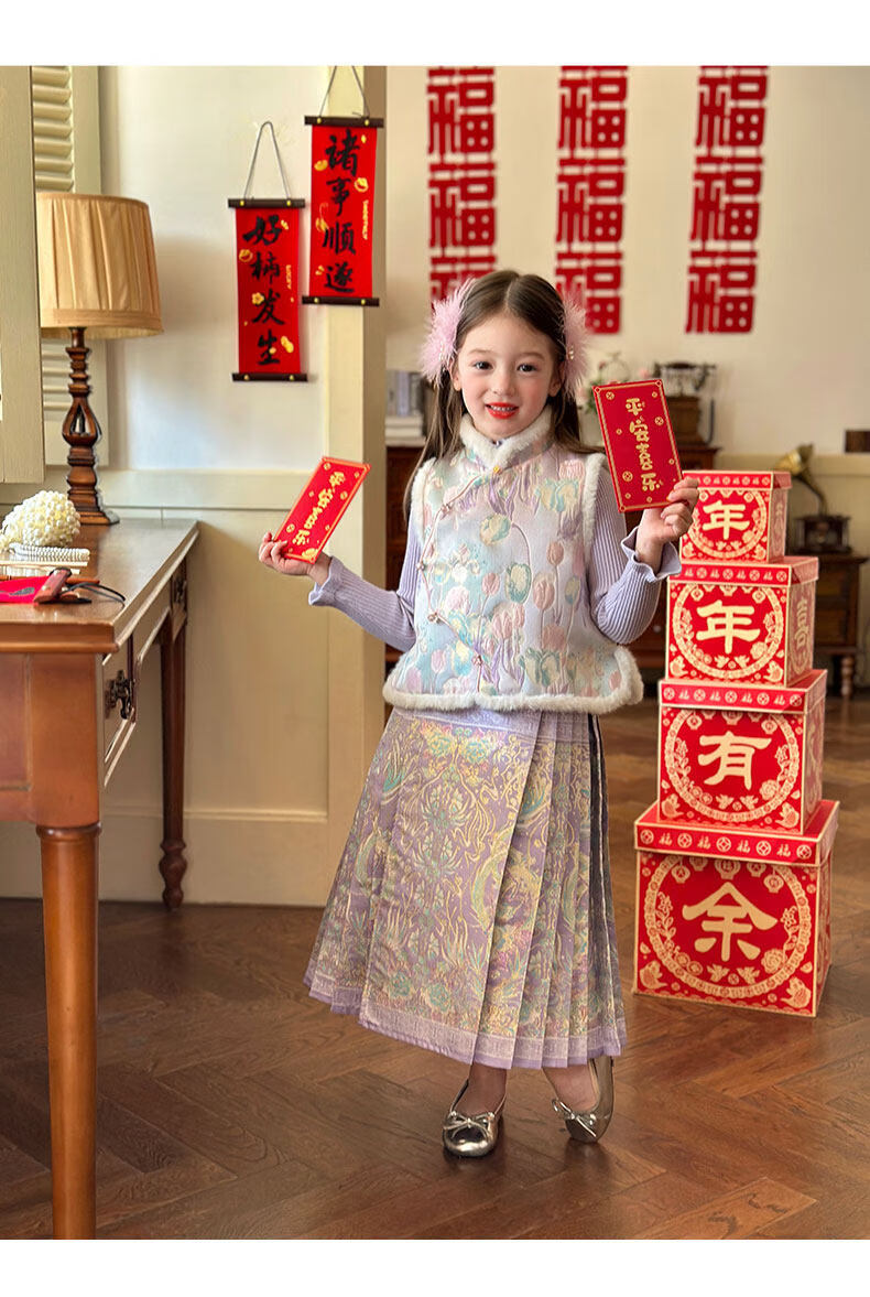 栀了成长记童装女童国风唐装上衣2025冬季儿童郁金香夹棉新年马甲 紫色 马甲 150