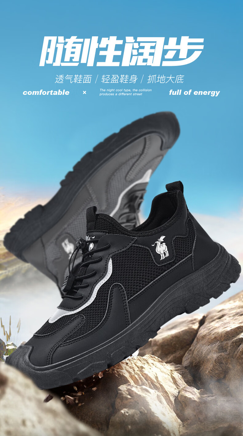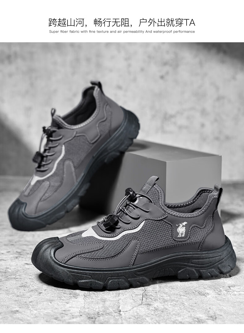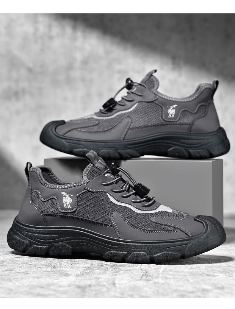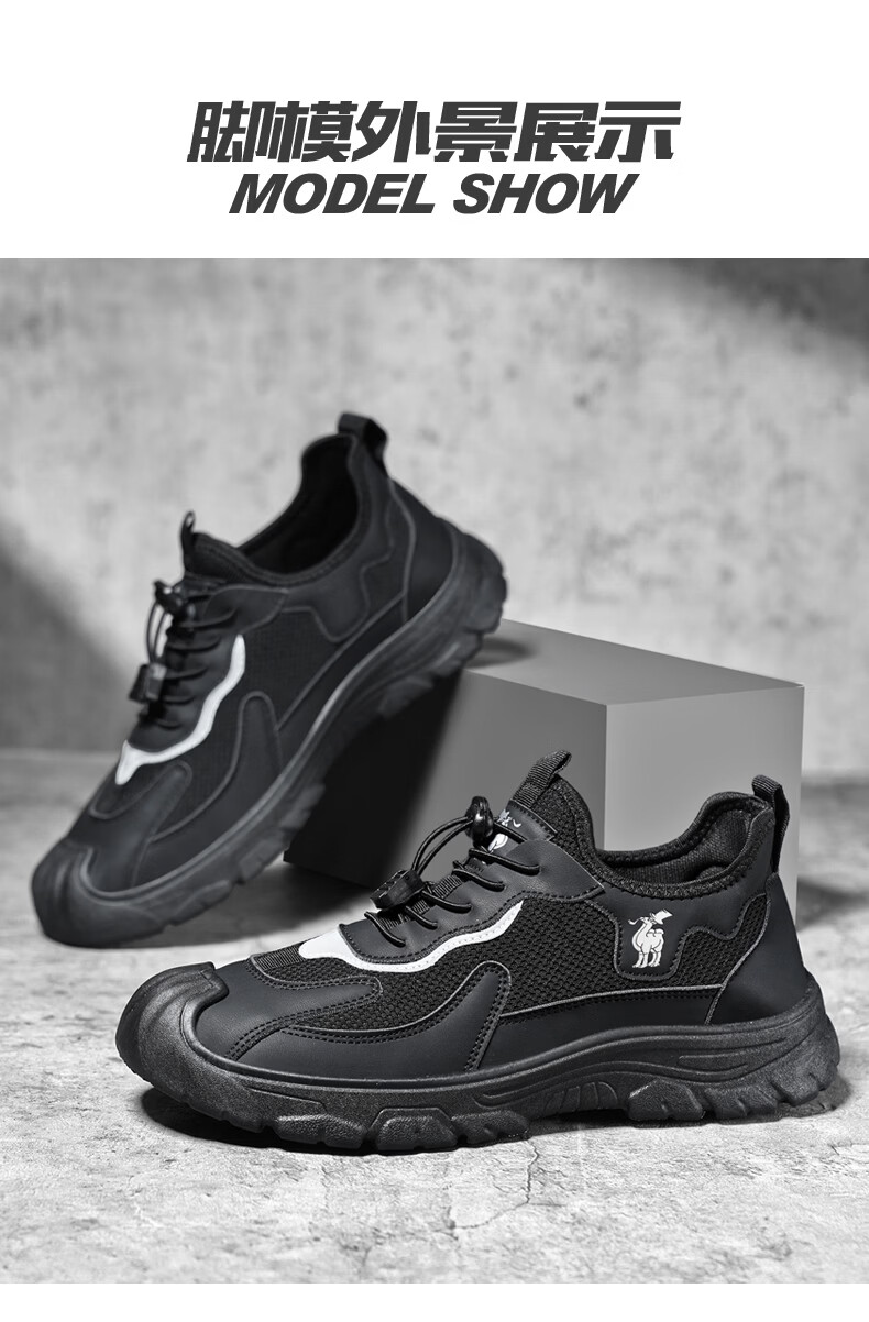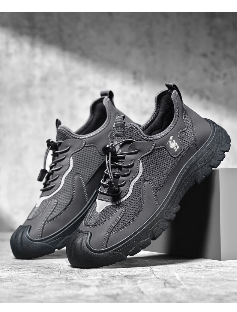 保罗骆驼男鞋春季新款男士网面透气休闲鞋防滑耐磨户外徒步鞋子男 黑色896 39