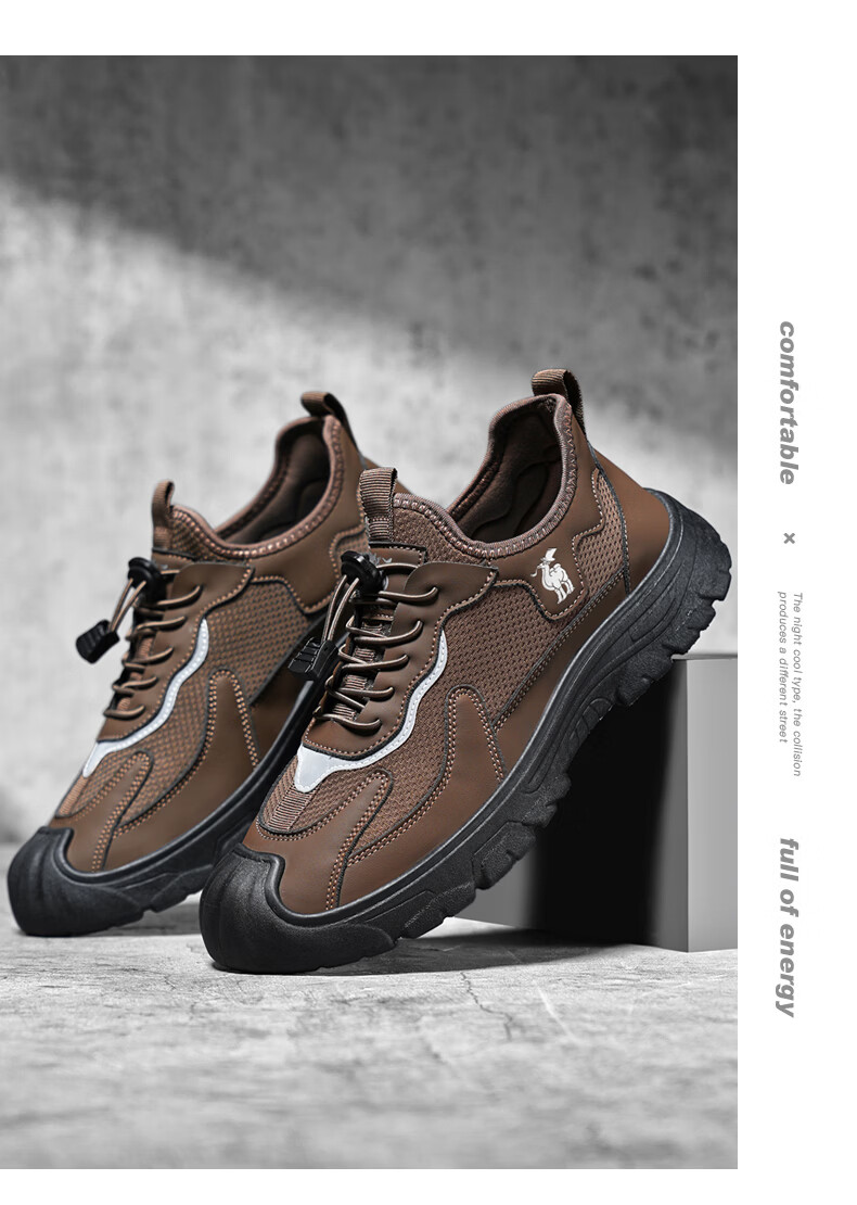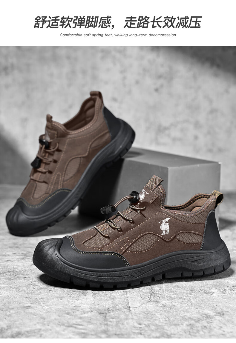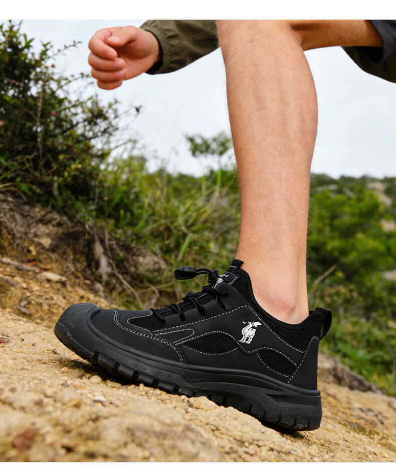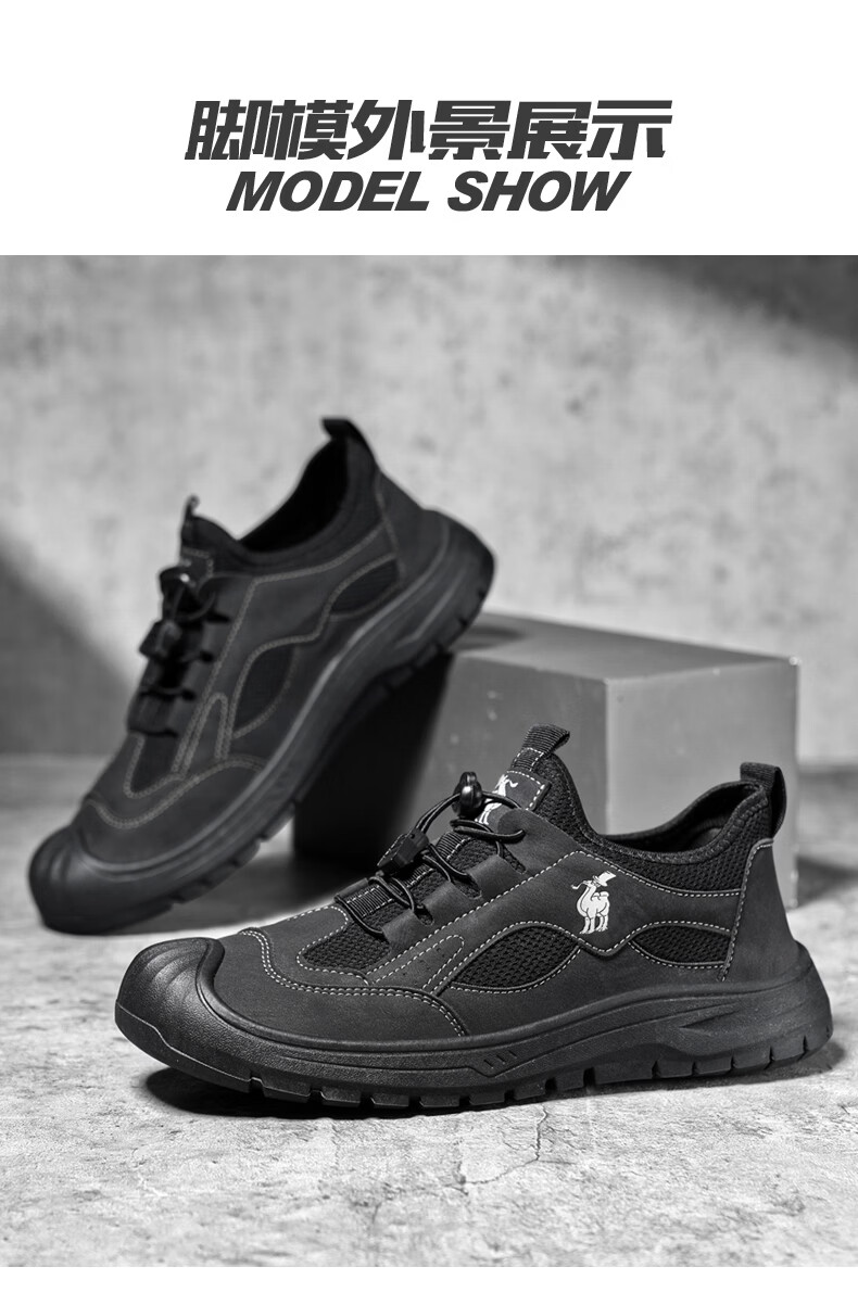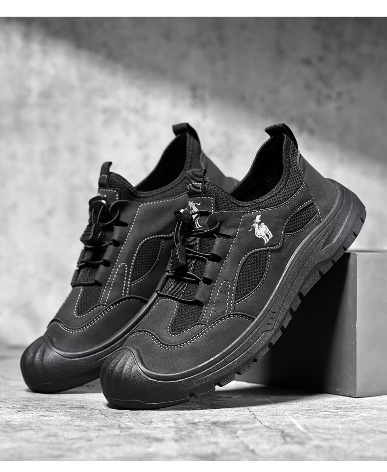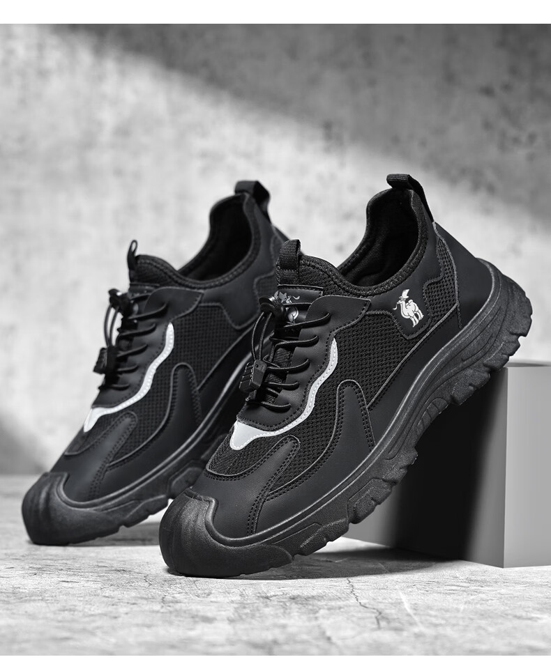保罗骆驼男鞋春季新款男士网面透气休闲鞋防滑耐磨户外徒步鞋子男 黑色896 39