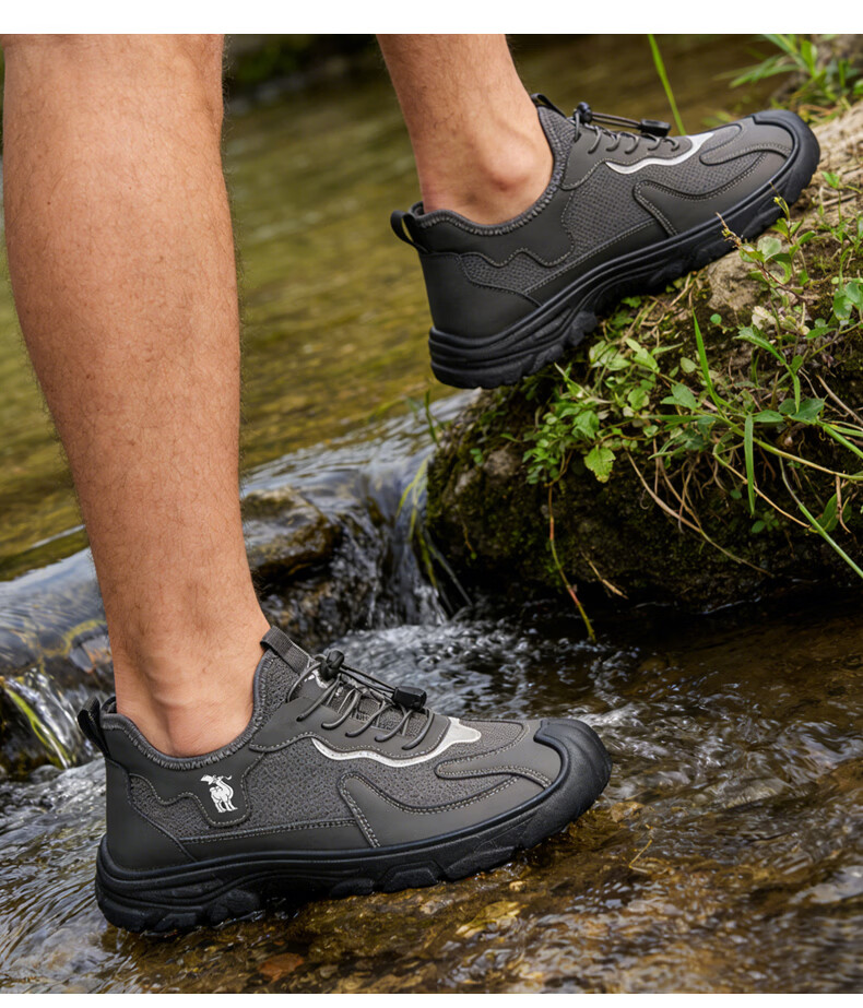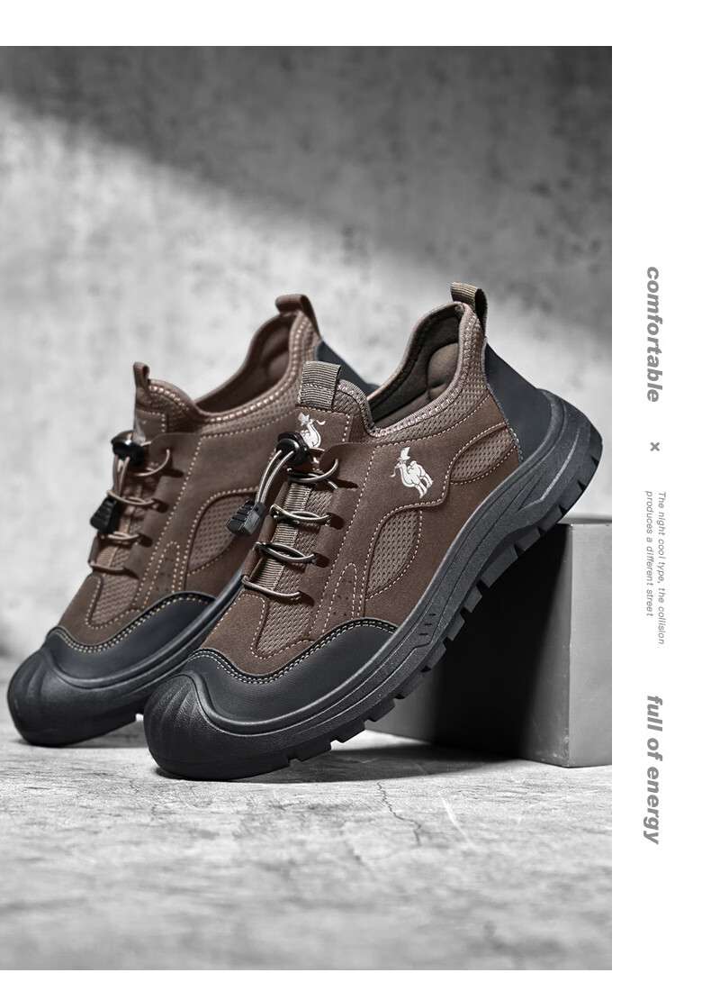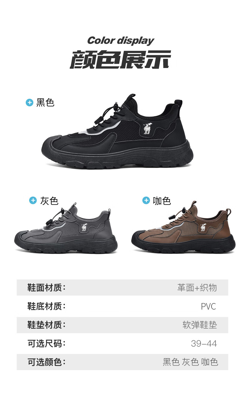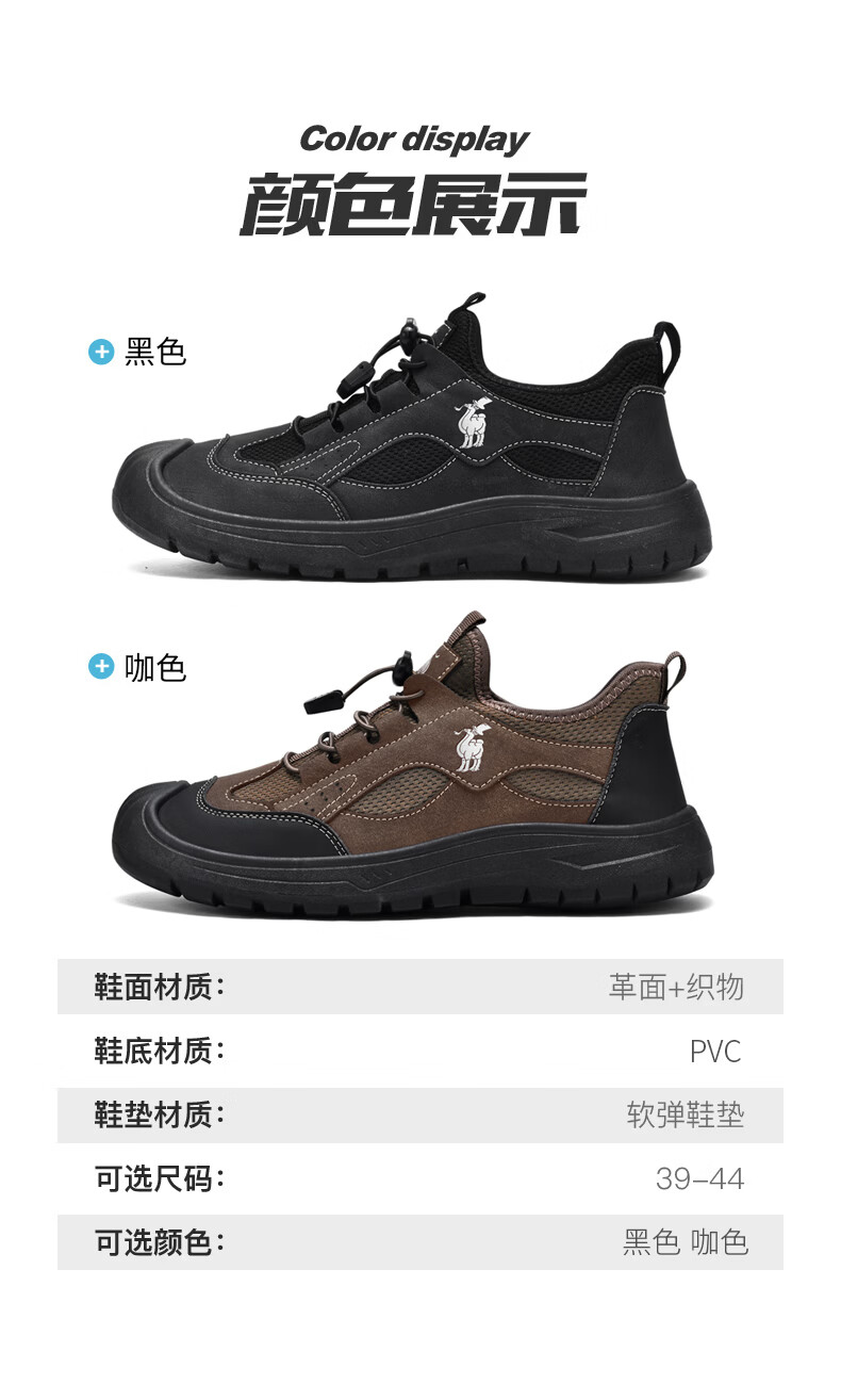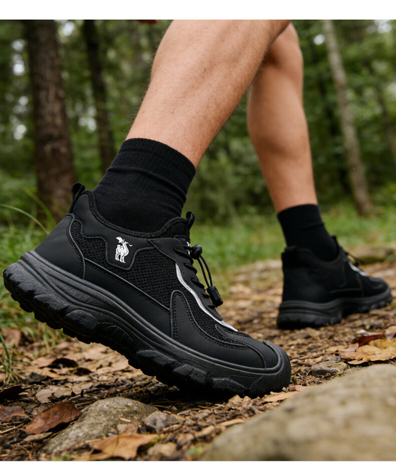 保罗骆驼男鞋春季新款男士网面透气休闲鞋防滑耐磨户外徒步鞋子男 黑色896 39