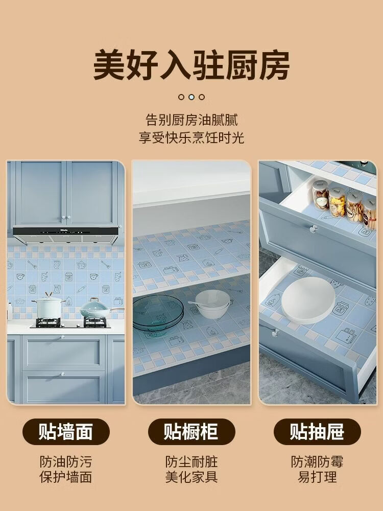 冇觅优品厨房防油贴纸橱柜灶台防水贴膜耐高温防火防潮自粘墙纸抽屉保护膜
