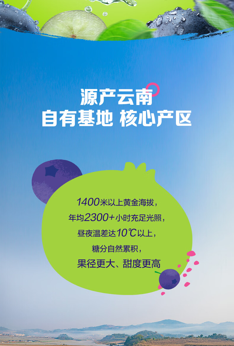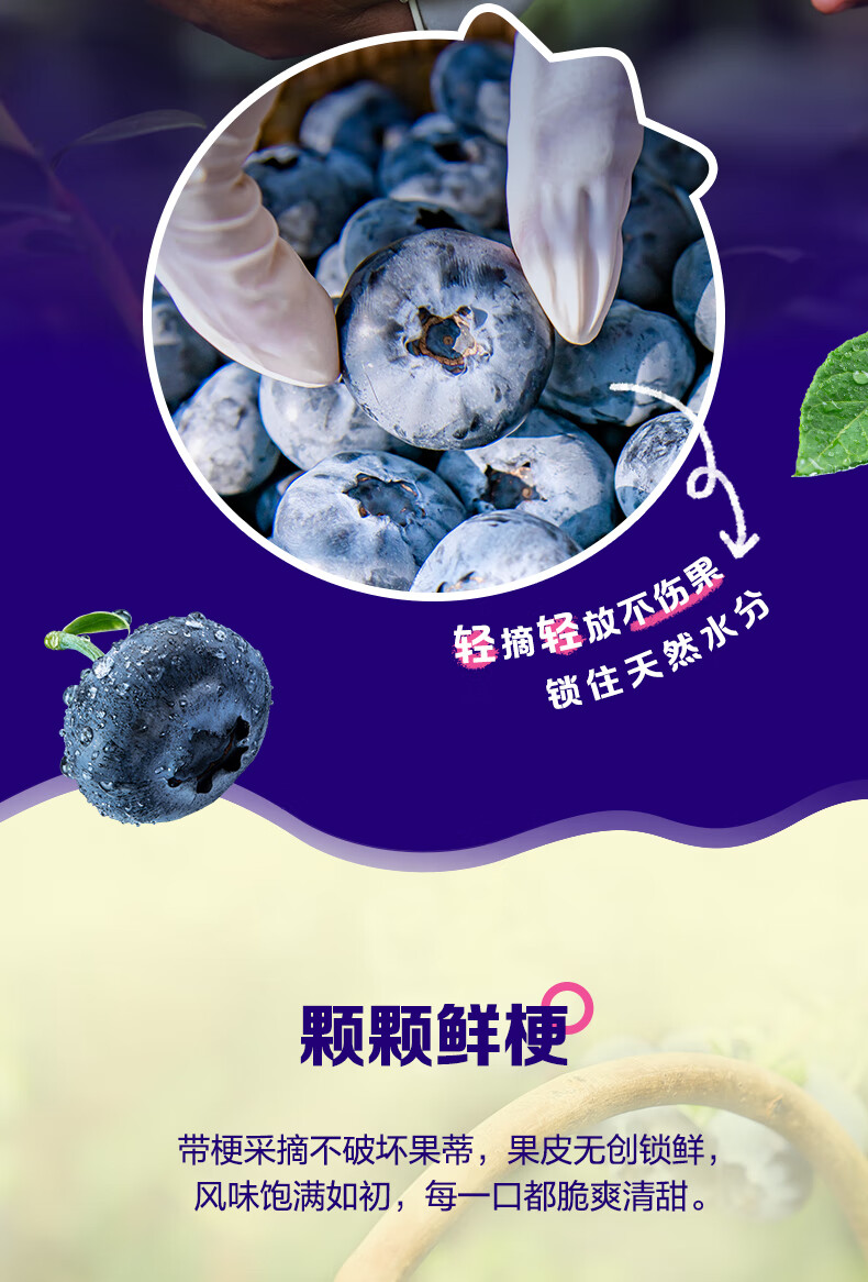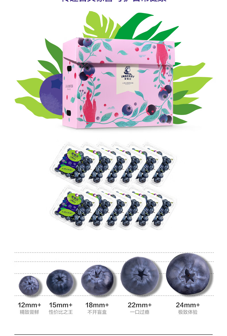 爱莓庄云南鲜梗蓝莓 脆甜新鲜手采现摘 22mm+12盒装 约125g/盒 源头直发