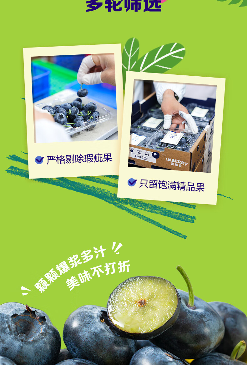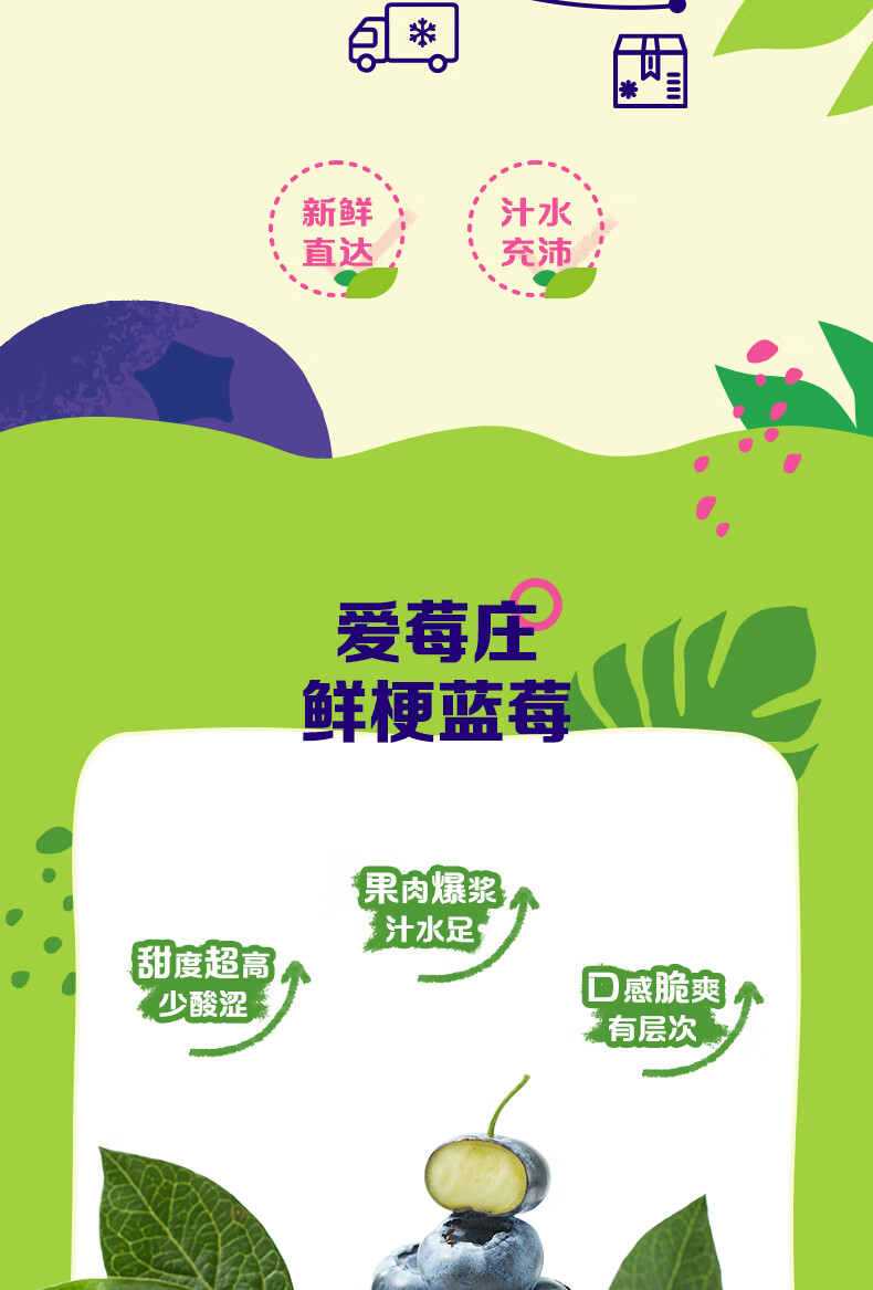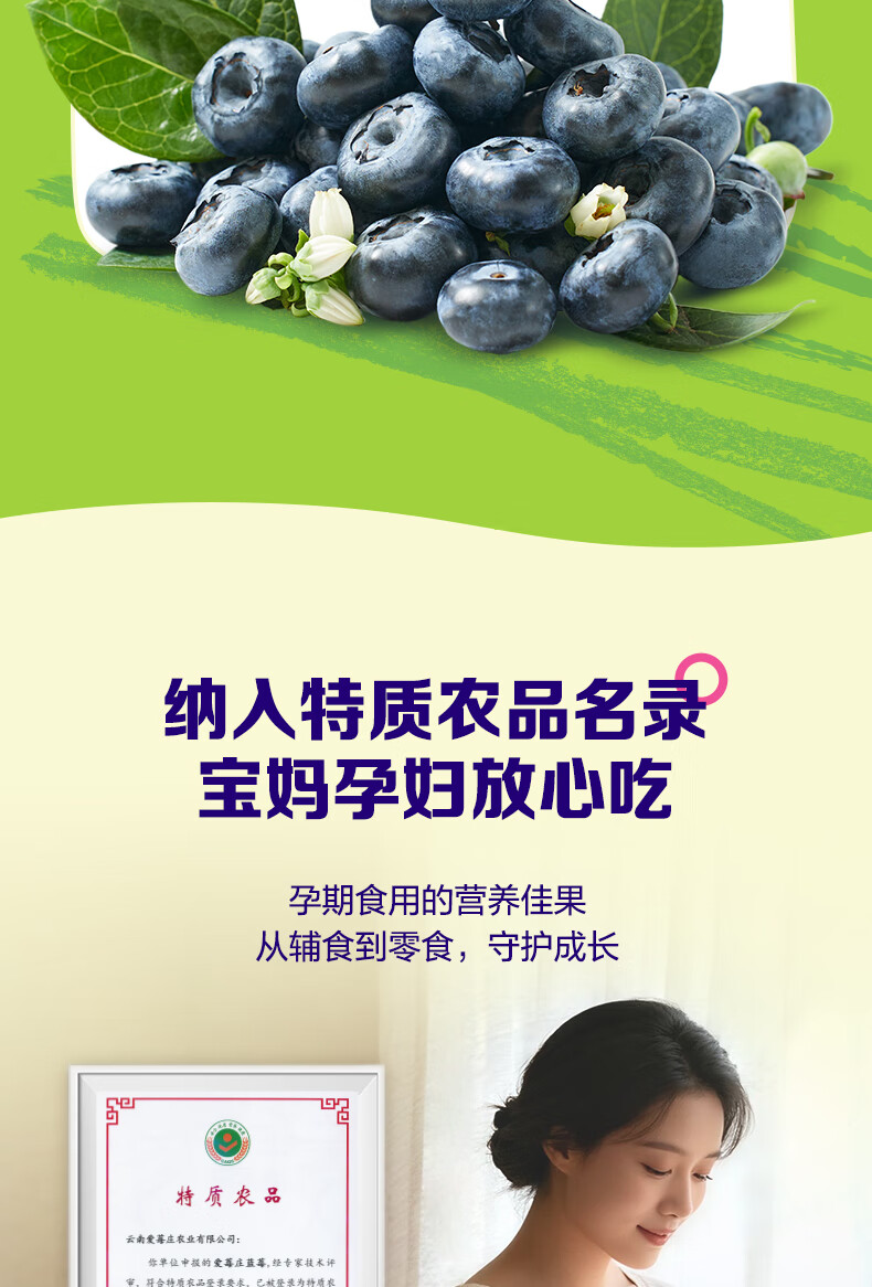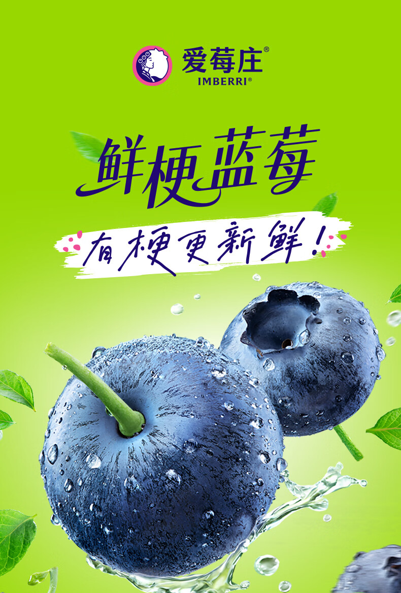 爱莓庄云南鲜梗蓝莓 脆甜新鲜手采现摘 22mm+12盒装 约125g/盒 源头直发