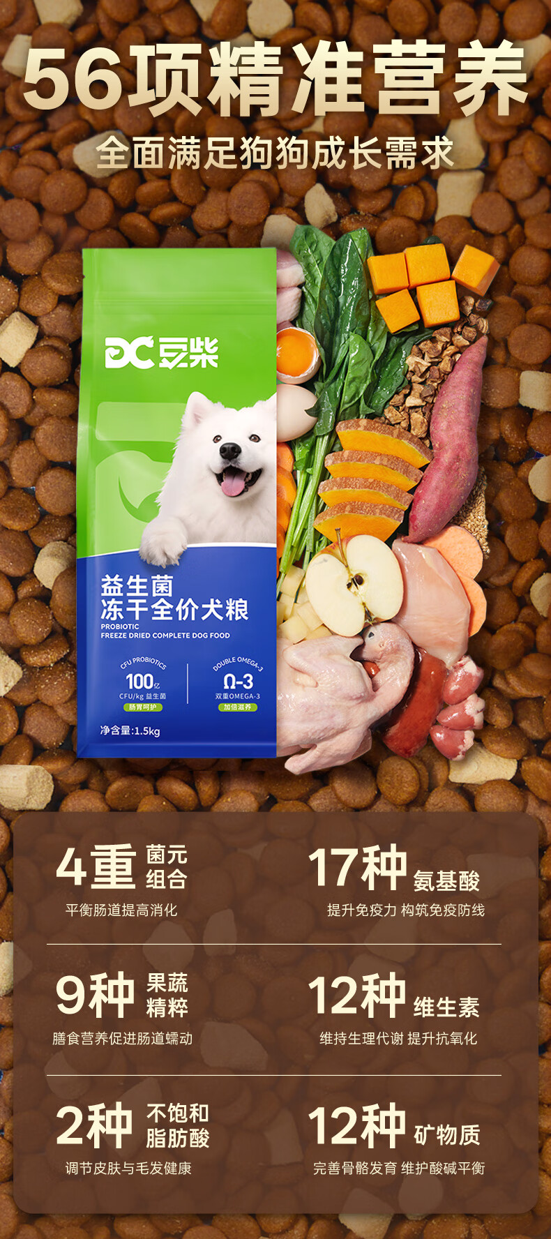 豆柴(docile)乳鸽冻干狗粮益生菌中大小型成幼通用低敏养胃1.5kg【宠物金选】