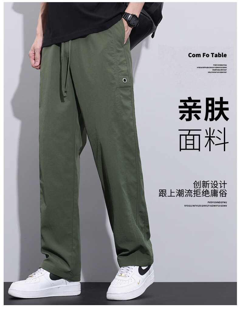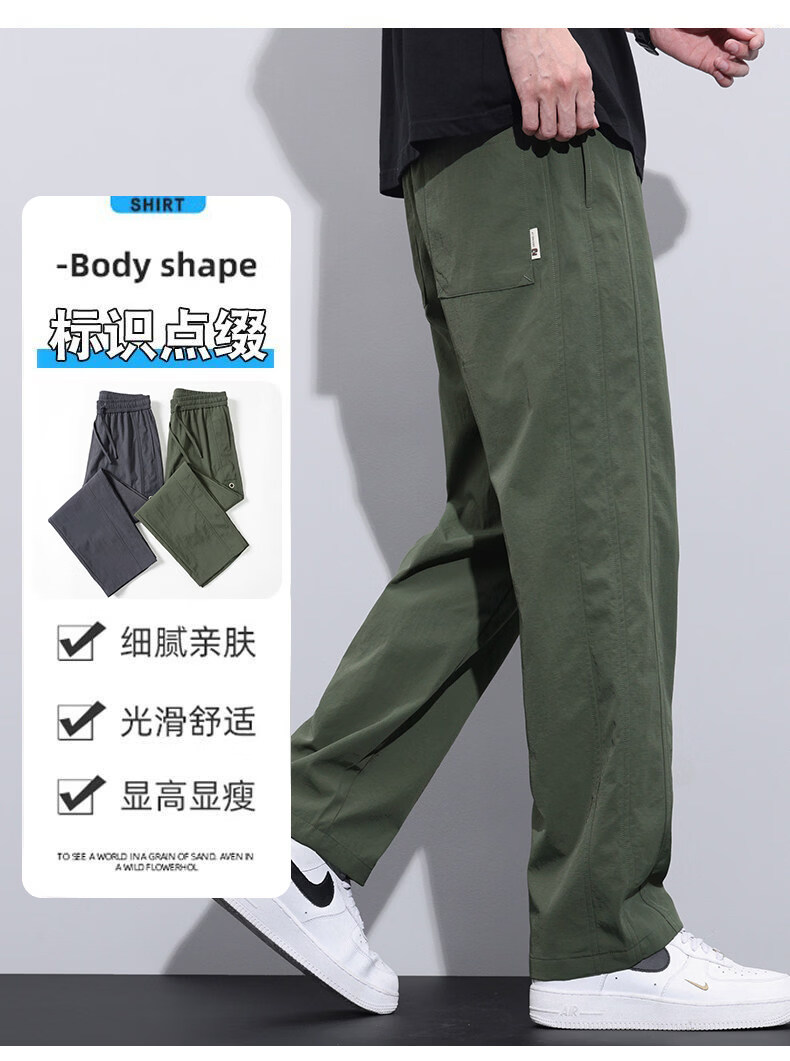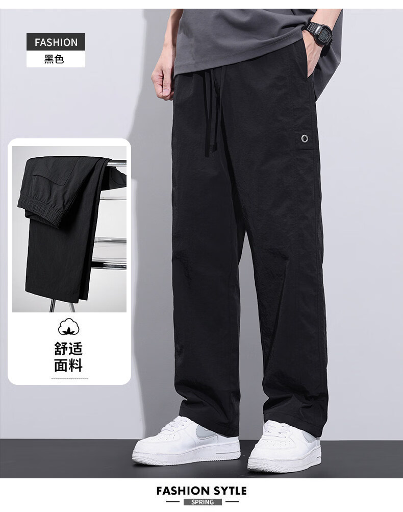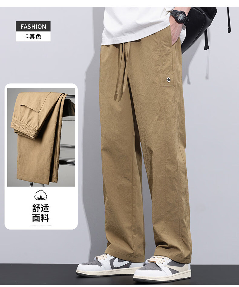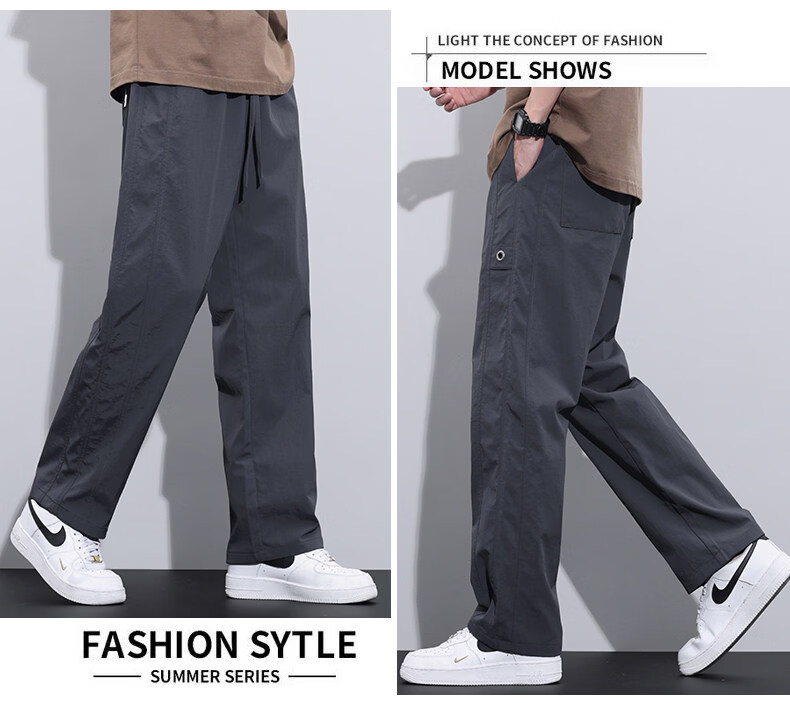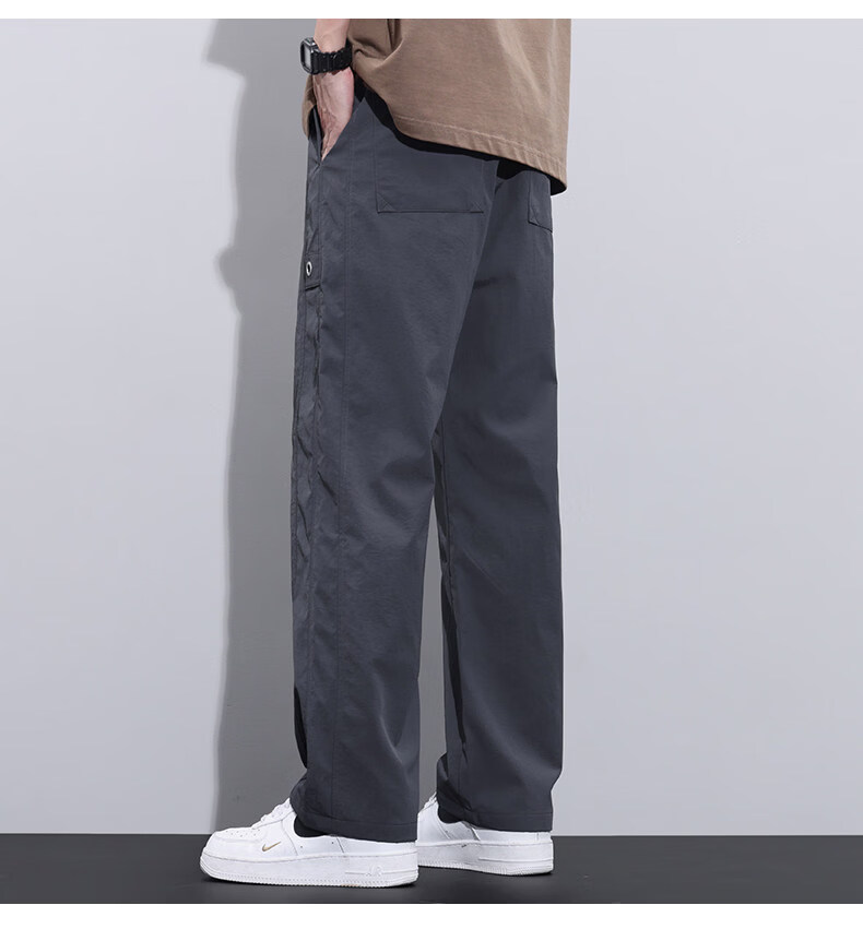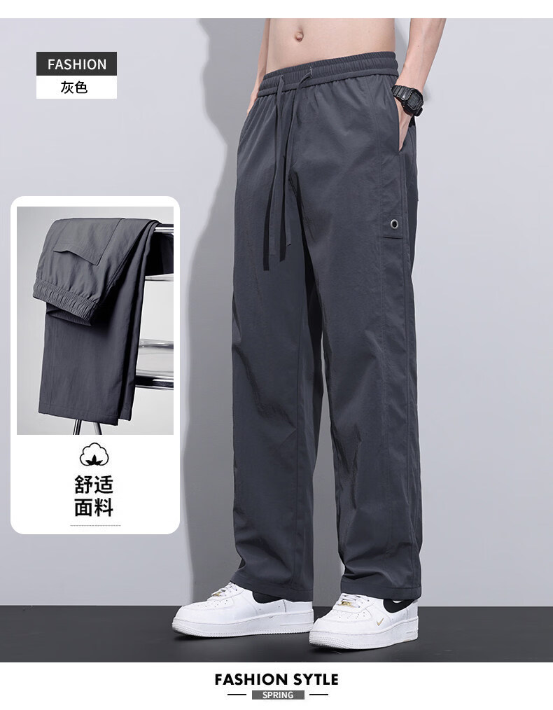 真维斯冰丝薄款休闲裤男士夏季青少年美式宽松直筒阔腿长裤子男生 灰色 M