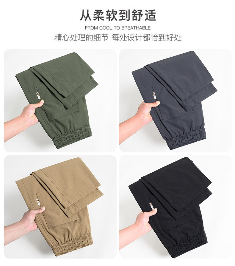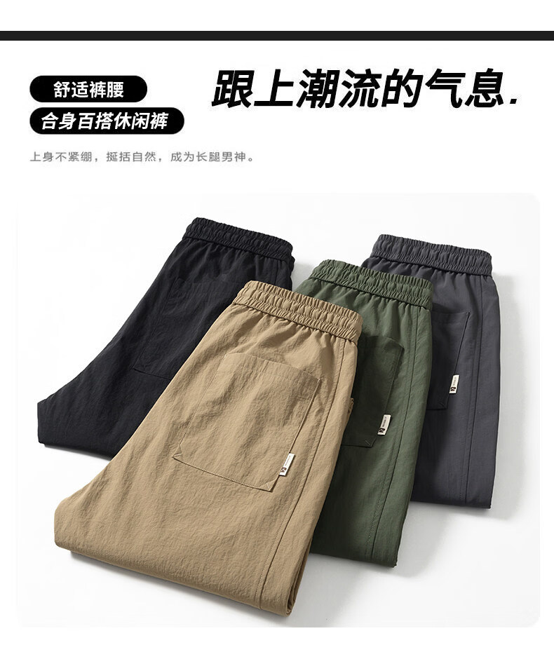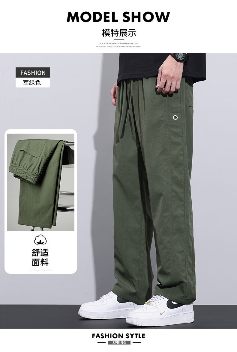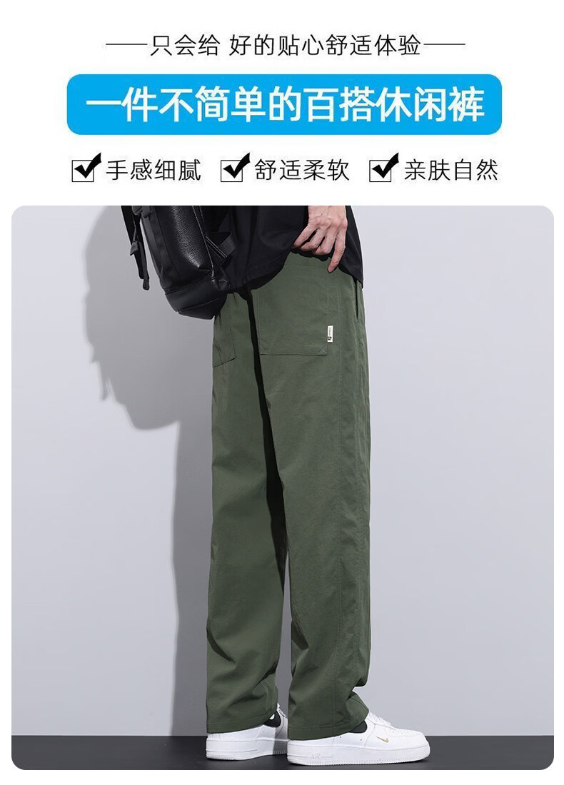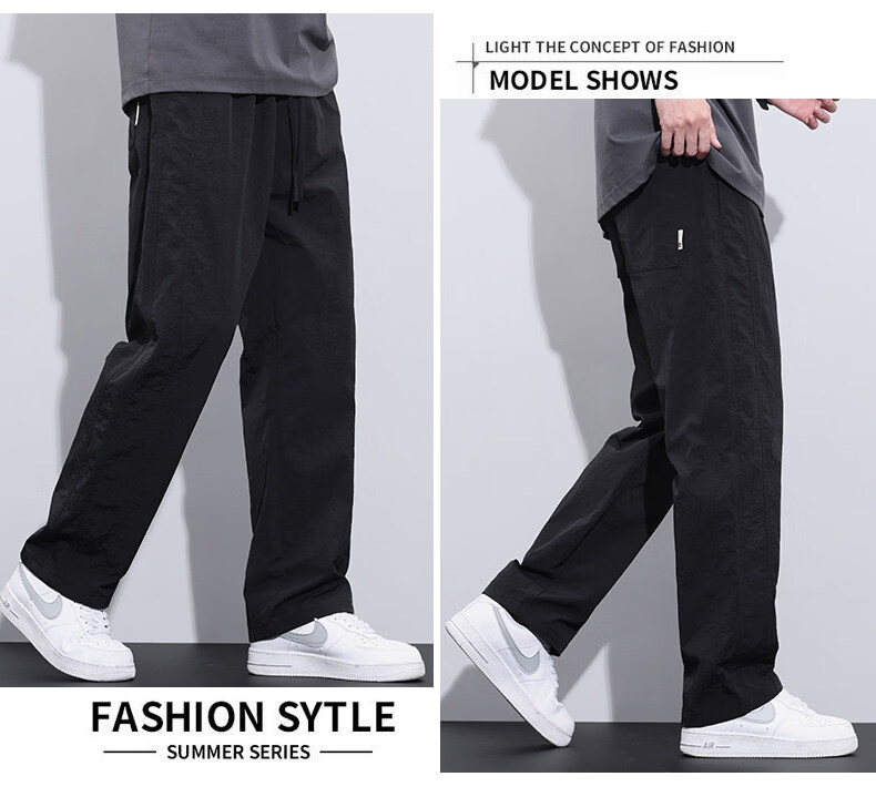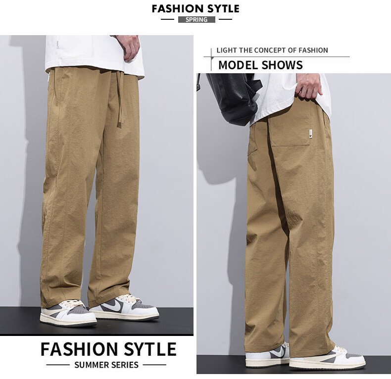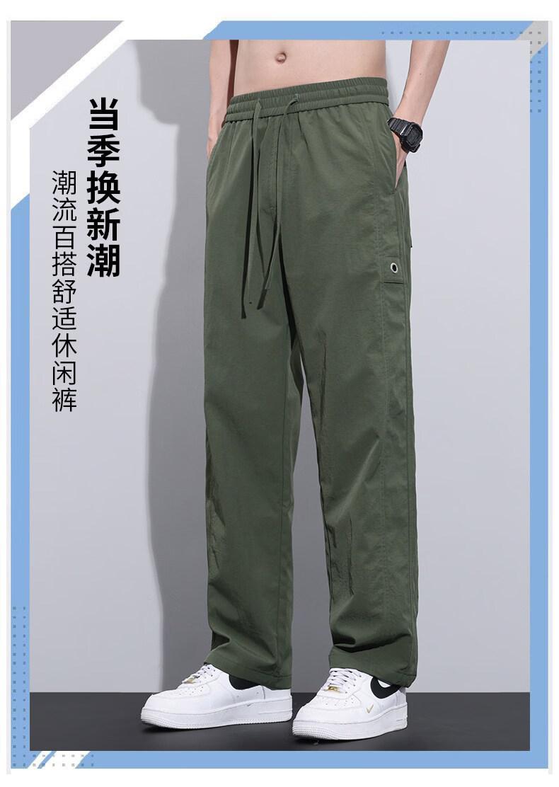 真维斯冰丝薄款休闲裤男士夏季青少年美式宽松直筒阔腿长裤子男生 灰色 M