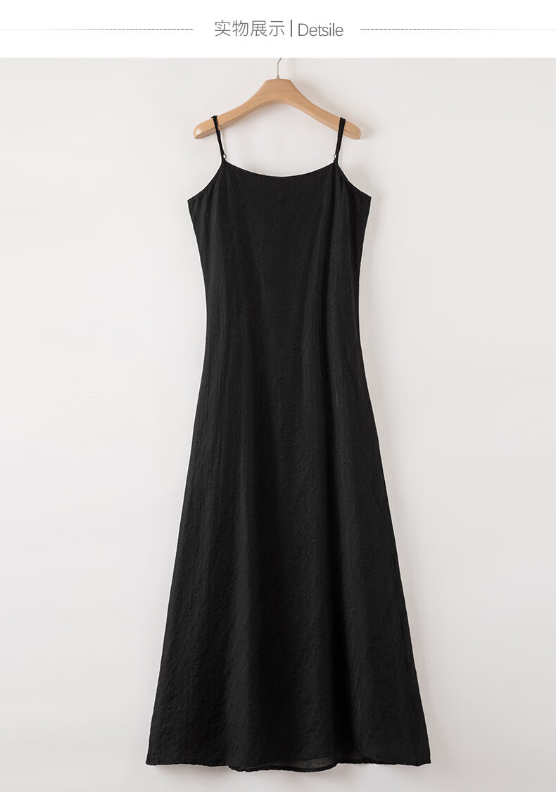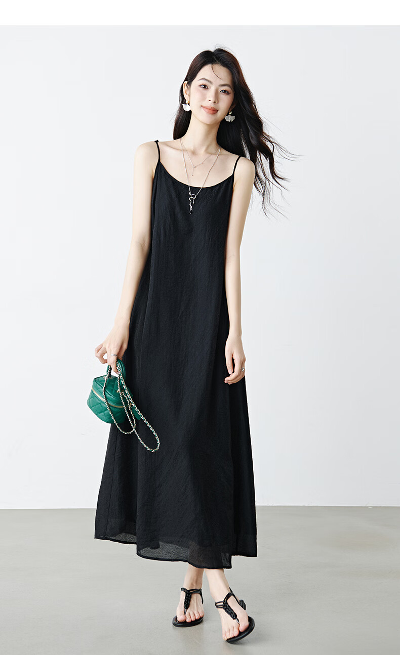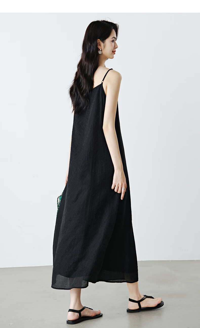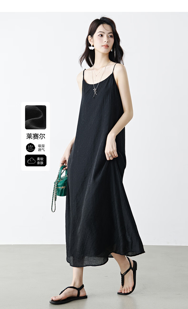 晚白【新品】2026年春款V领吊带裙莱赛尔天丝宽松轻盈亲肤连衣裙 黑色 M