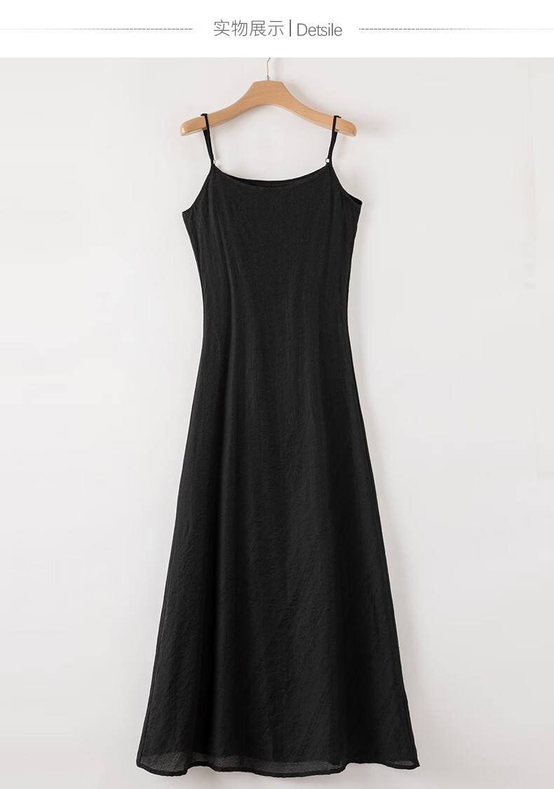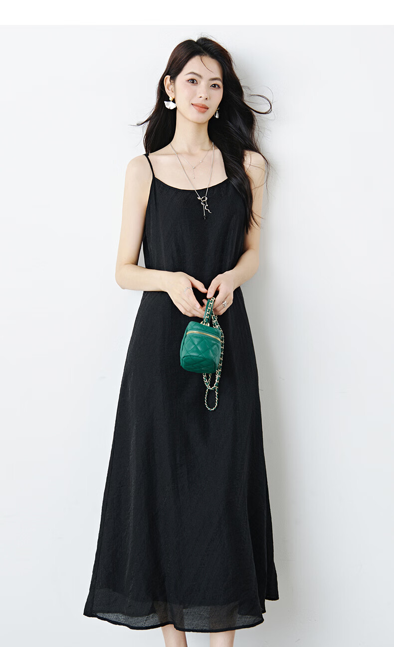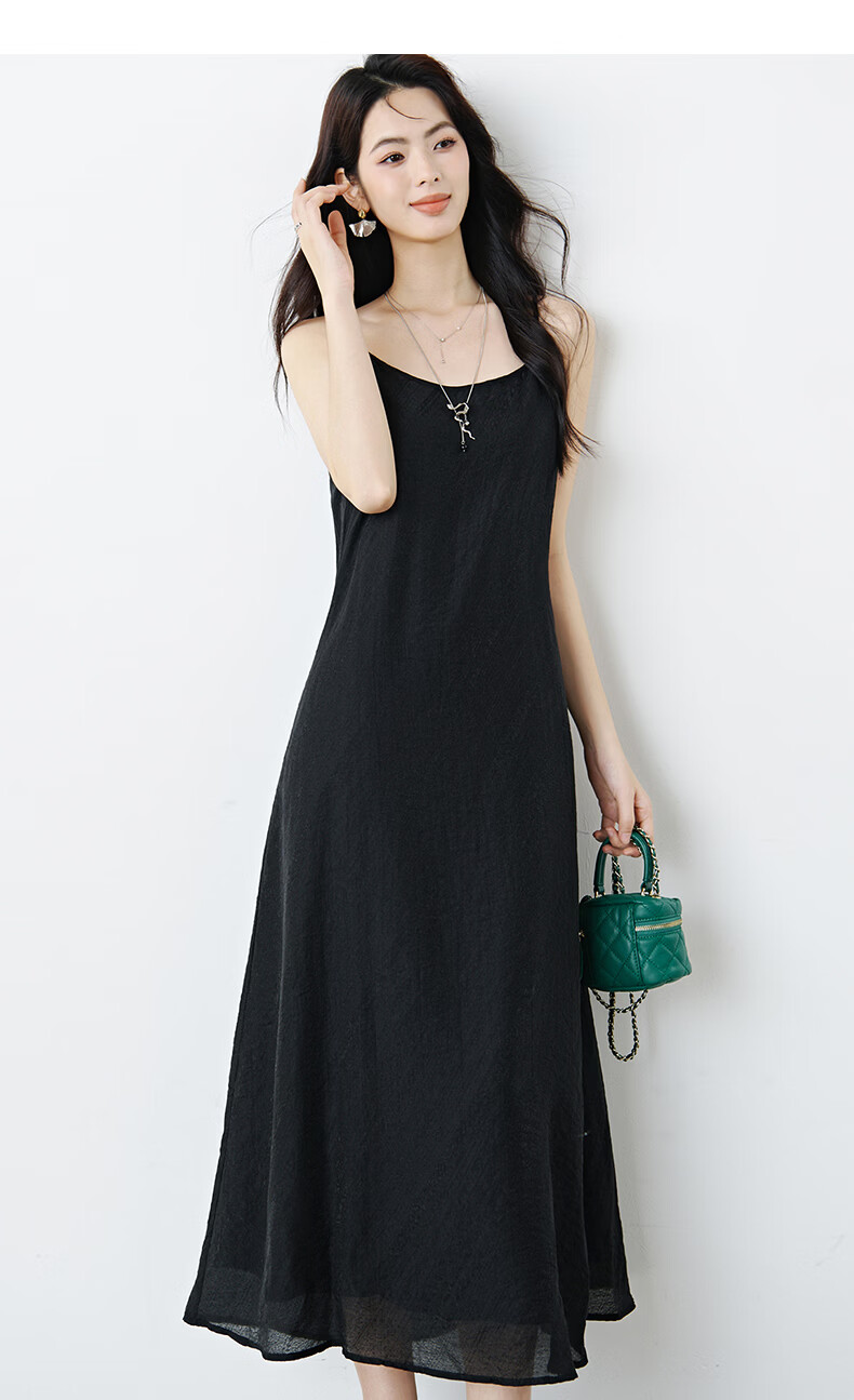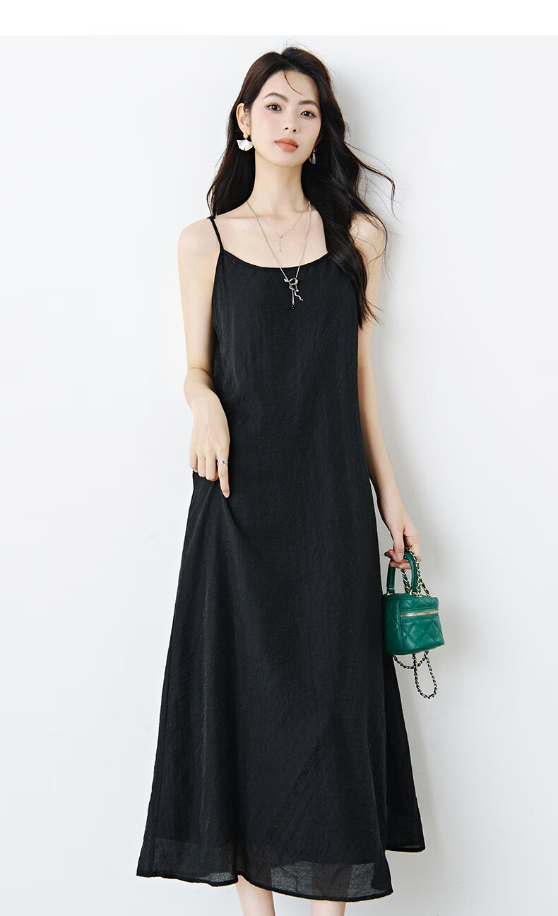 晚白【新品】2026年春款V领吊带裙莱赛尔天丝宽松轻盈亲肤连衣裙 黑色 M