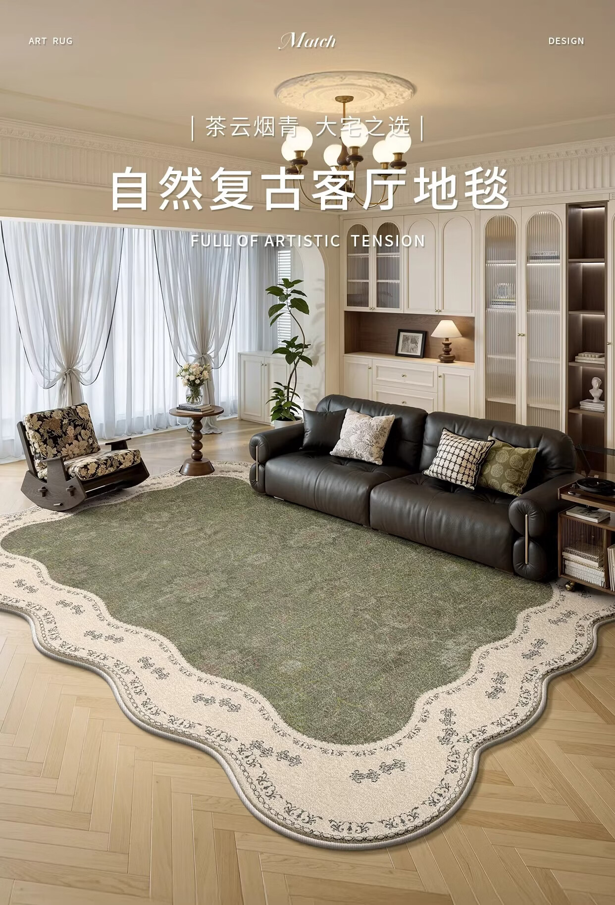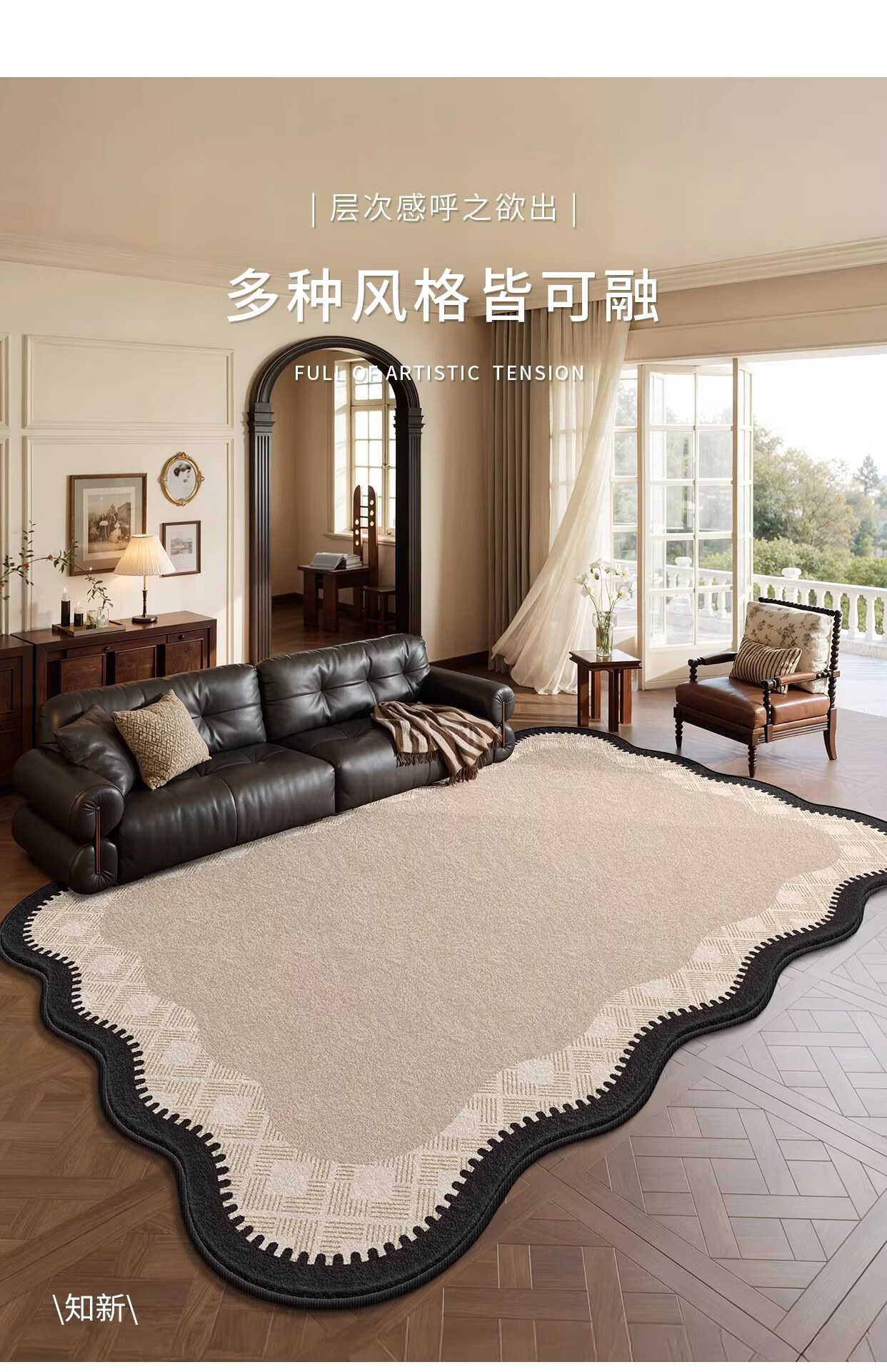Y U-LIVE地毯客厅中古风2026新款异形法式复古免洗可擦沙发卧室免打理 S仿羊绒-云漫山间异形 200*300CM 【客厅优选尺寸】