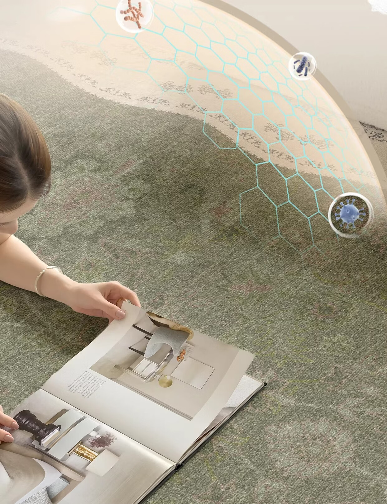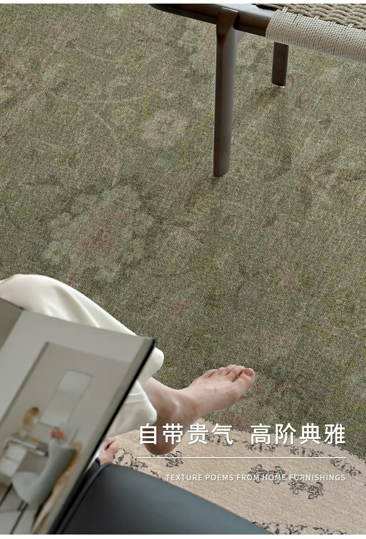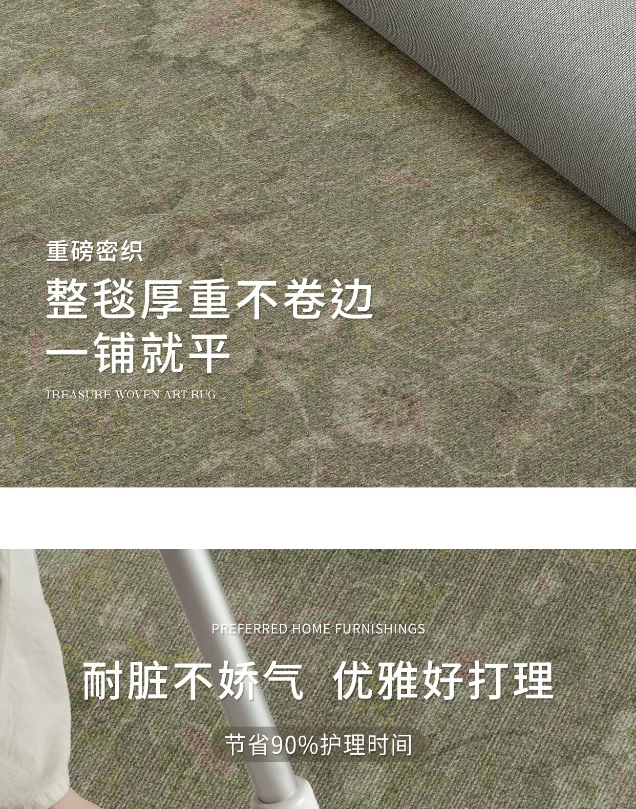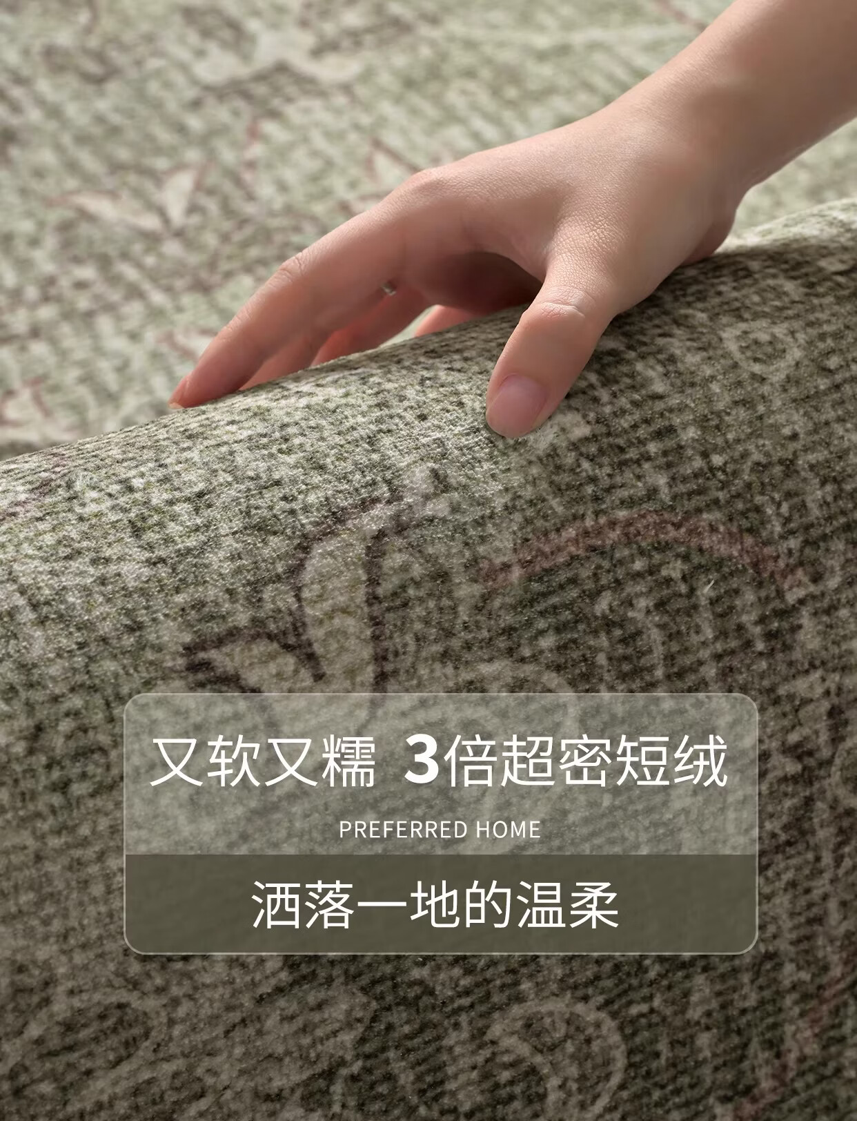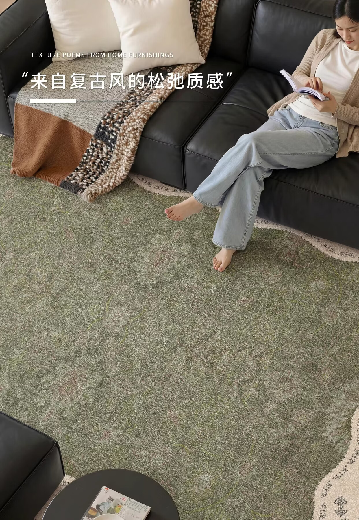 Y U-LIVE中古风地毯客厅卧室2026新款防水防污复古风绿色大面积全铺地 S仿羊绒-茶云烟青 140×200CM【NEW新升级】