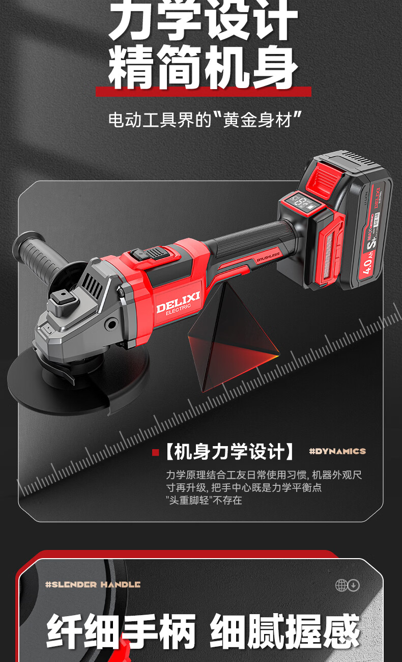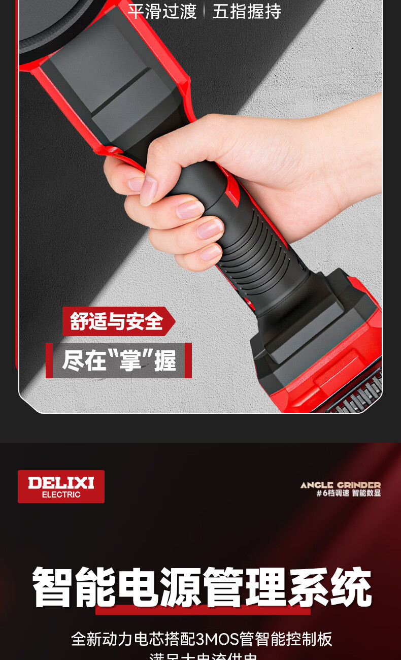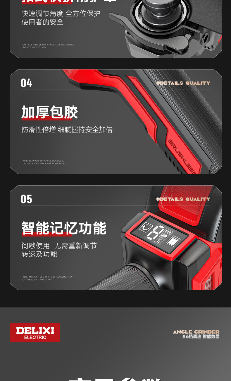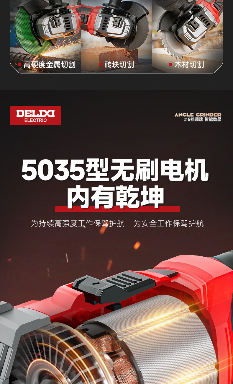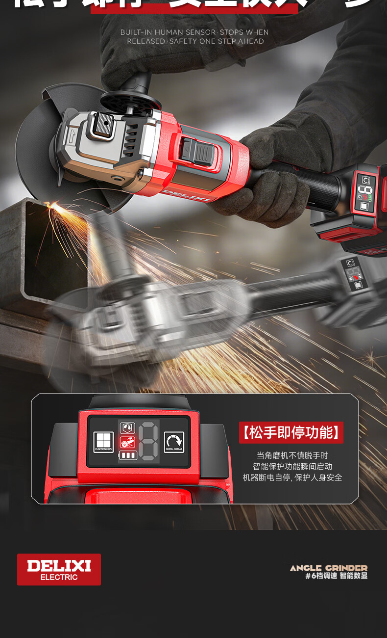 德力西电气无刷锂电角磨机数显充电式多功能手持电动磨光机抛光切割打磨机 【六档调节】7.5Ah两电+豪华配件
