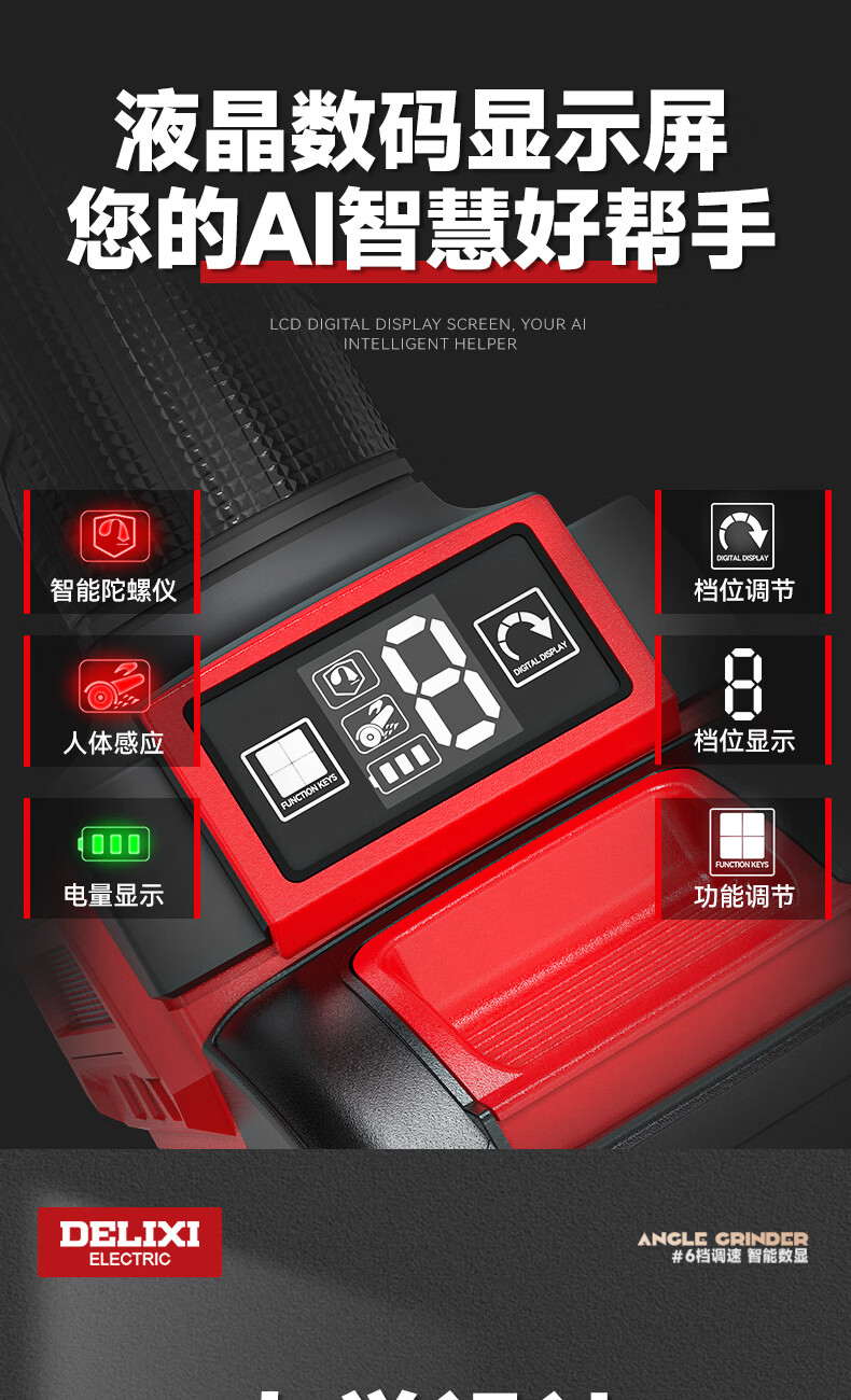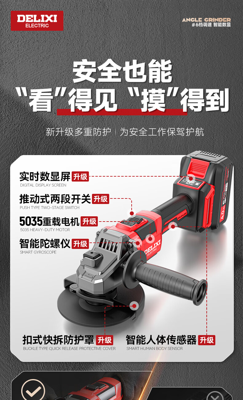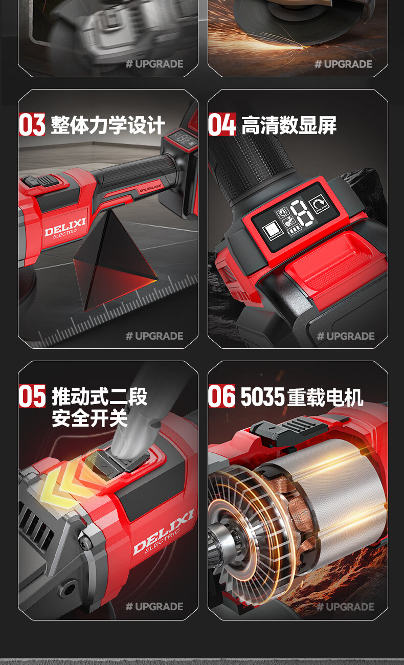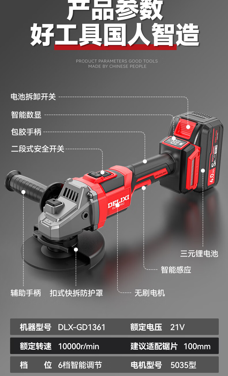 德力西电气无刷锂电角磨机数显充电式多功能手持电动磨光机抛光切割打磨机 【六档调节】7.5Ah两电+豪华配件