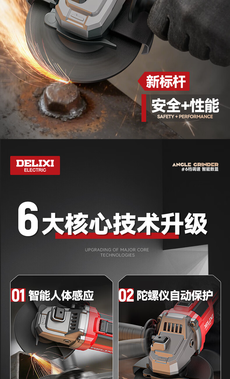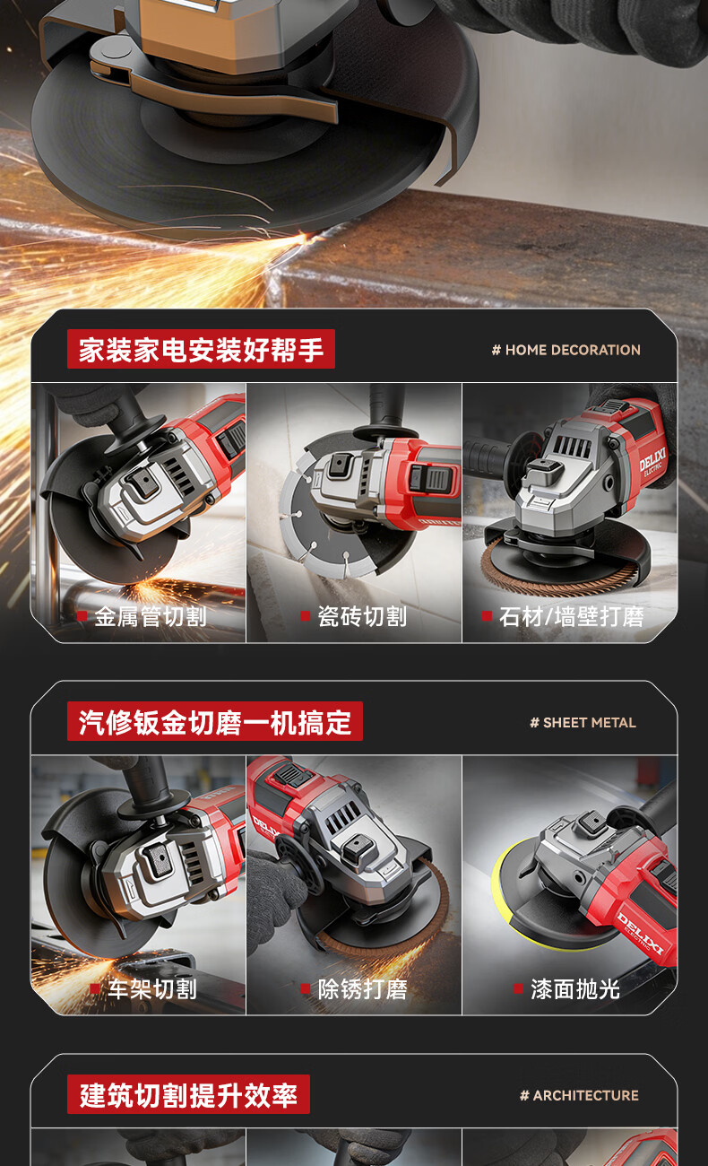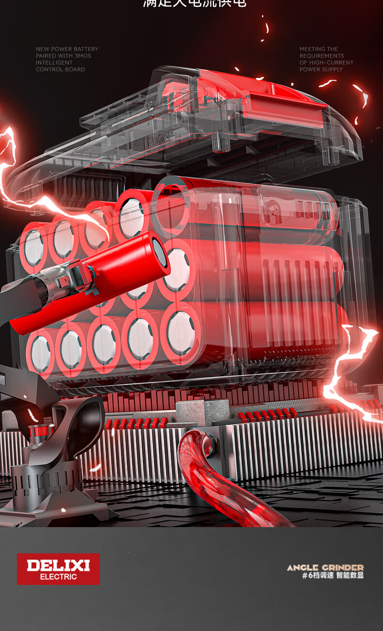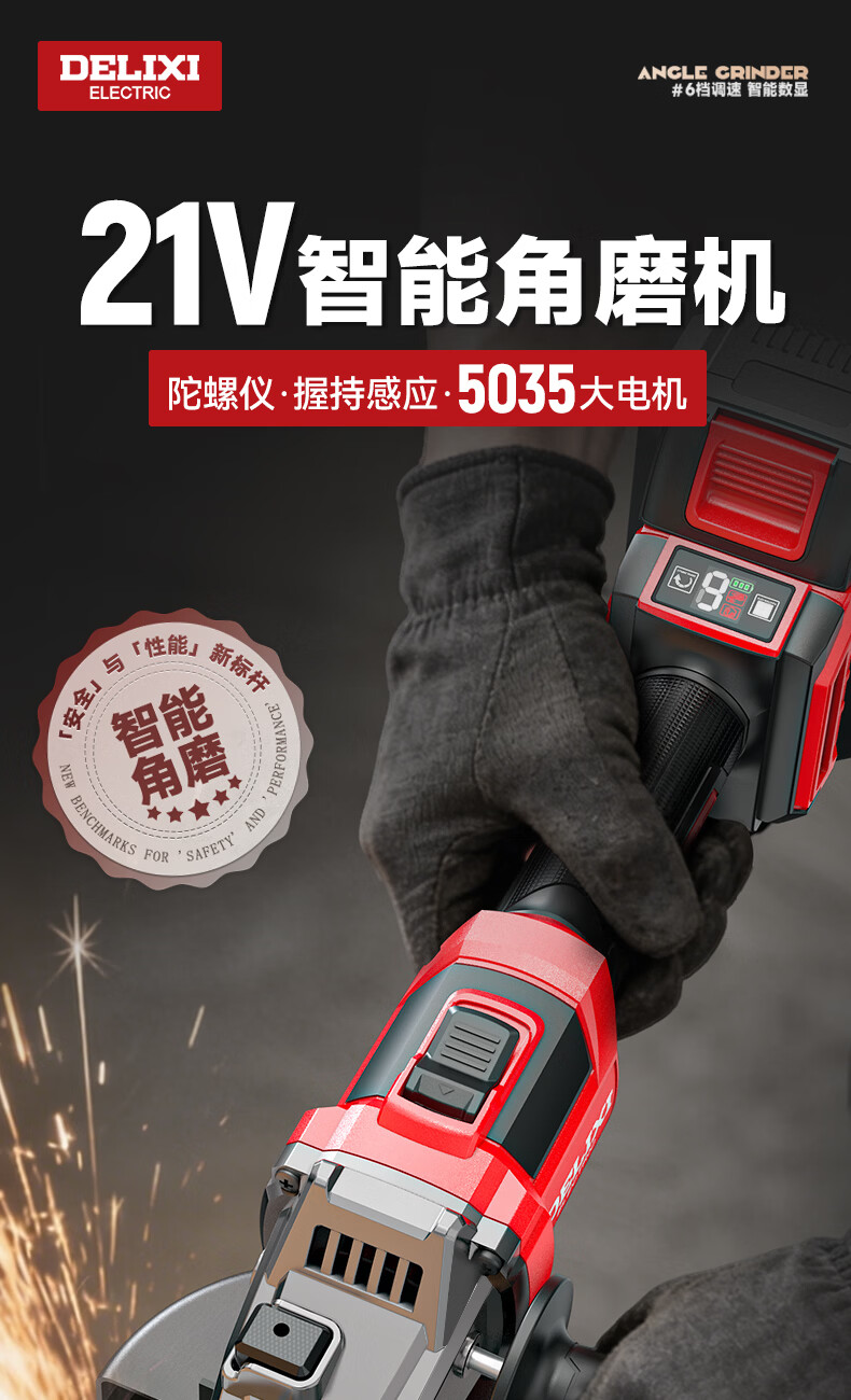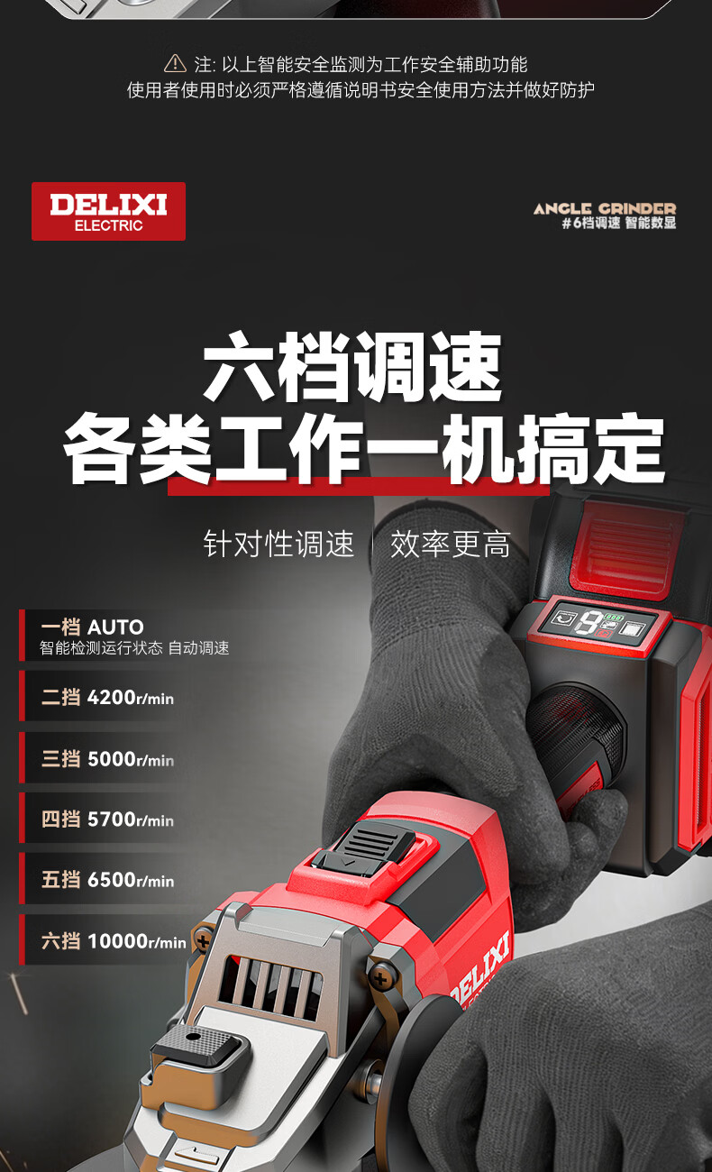 德力西电气无刷锂电角磨机数显充电式多功能手持电动磨光机抛光切割打磨机 【六档调节】7.5Ah两电+豪华配件