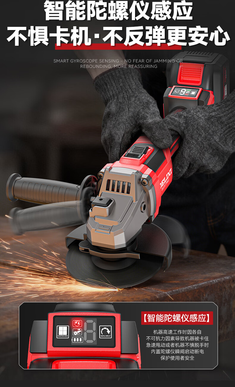 光宸无刷锂电角磨机充电式大功率电池切割机打磨抛光手砂轮电动磨光机 电量显示【5.0Ah一电一充】+礼包