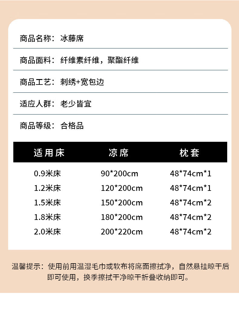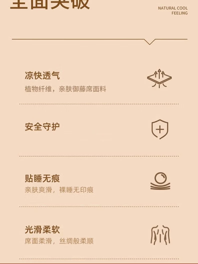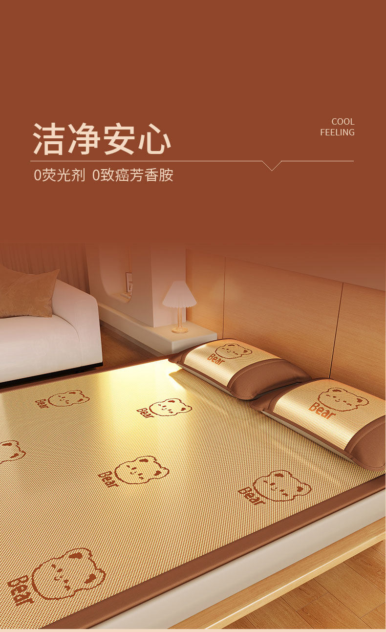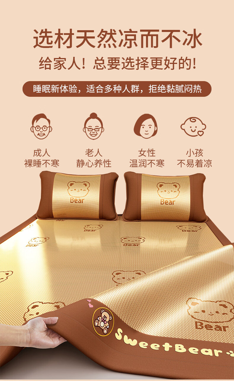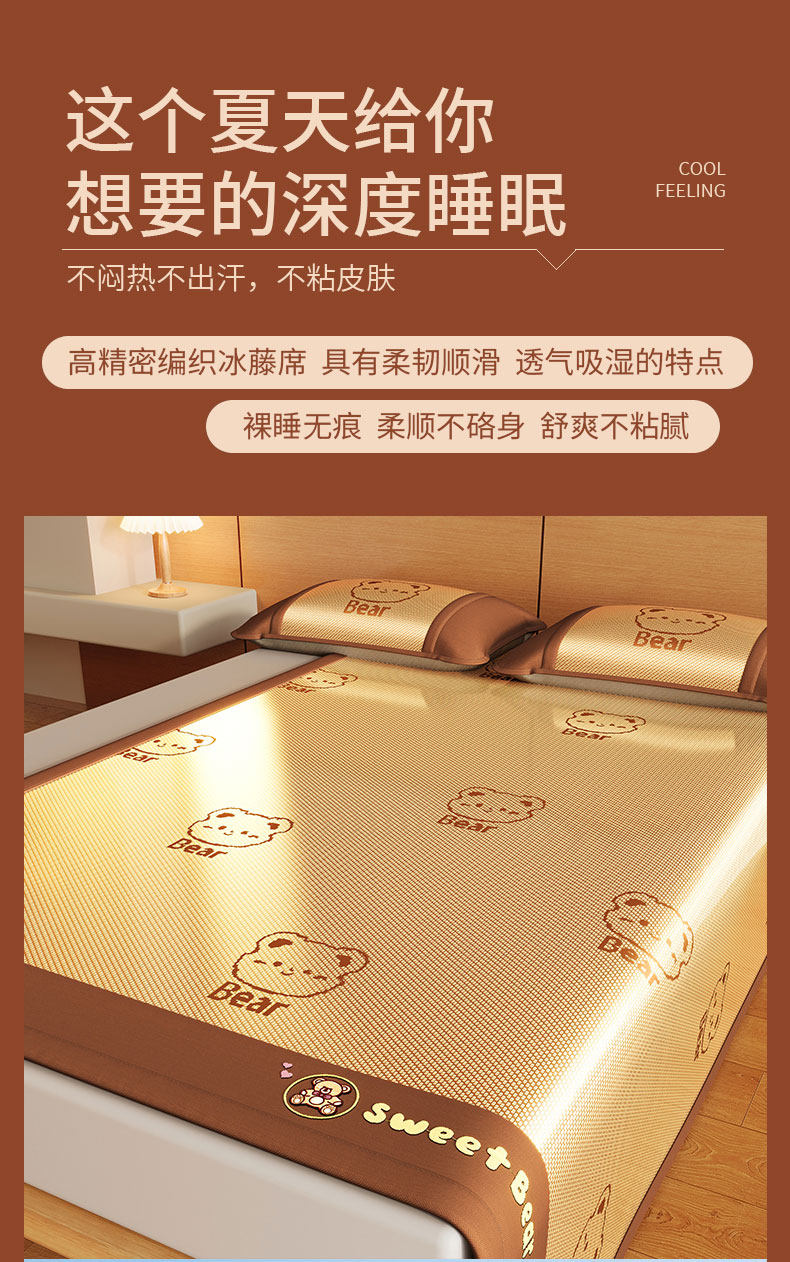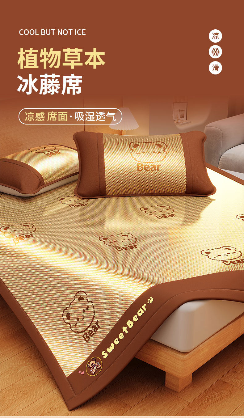 猫人(MiiOW)夏季凉席冰丝席藤席夏天2026新款床笠款软席子草席竹席 【不含枕套】冰藤席甜蜜熊/咖色提花 180*200cm