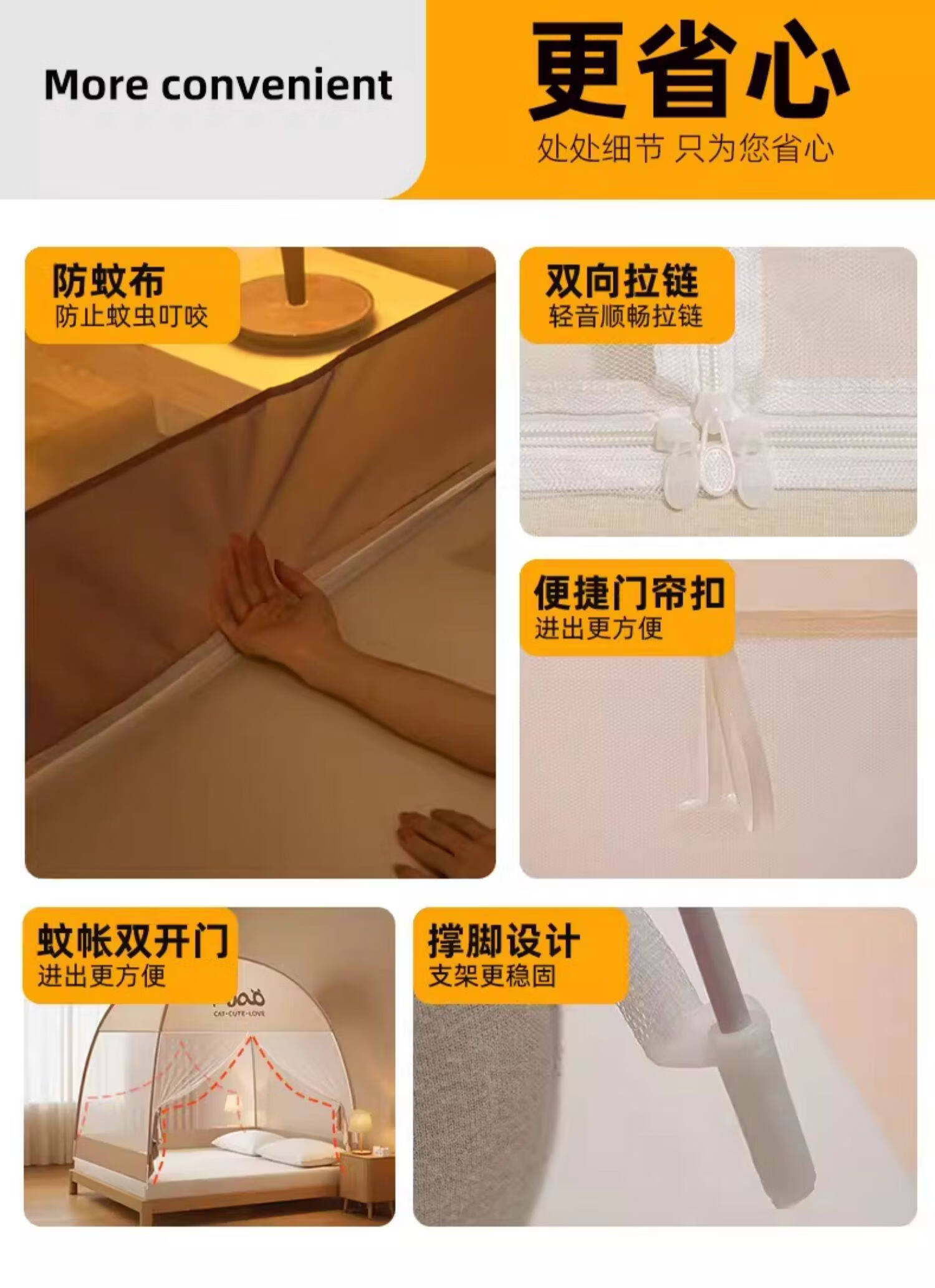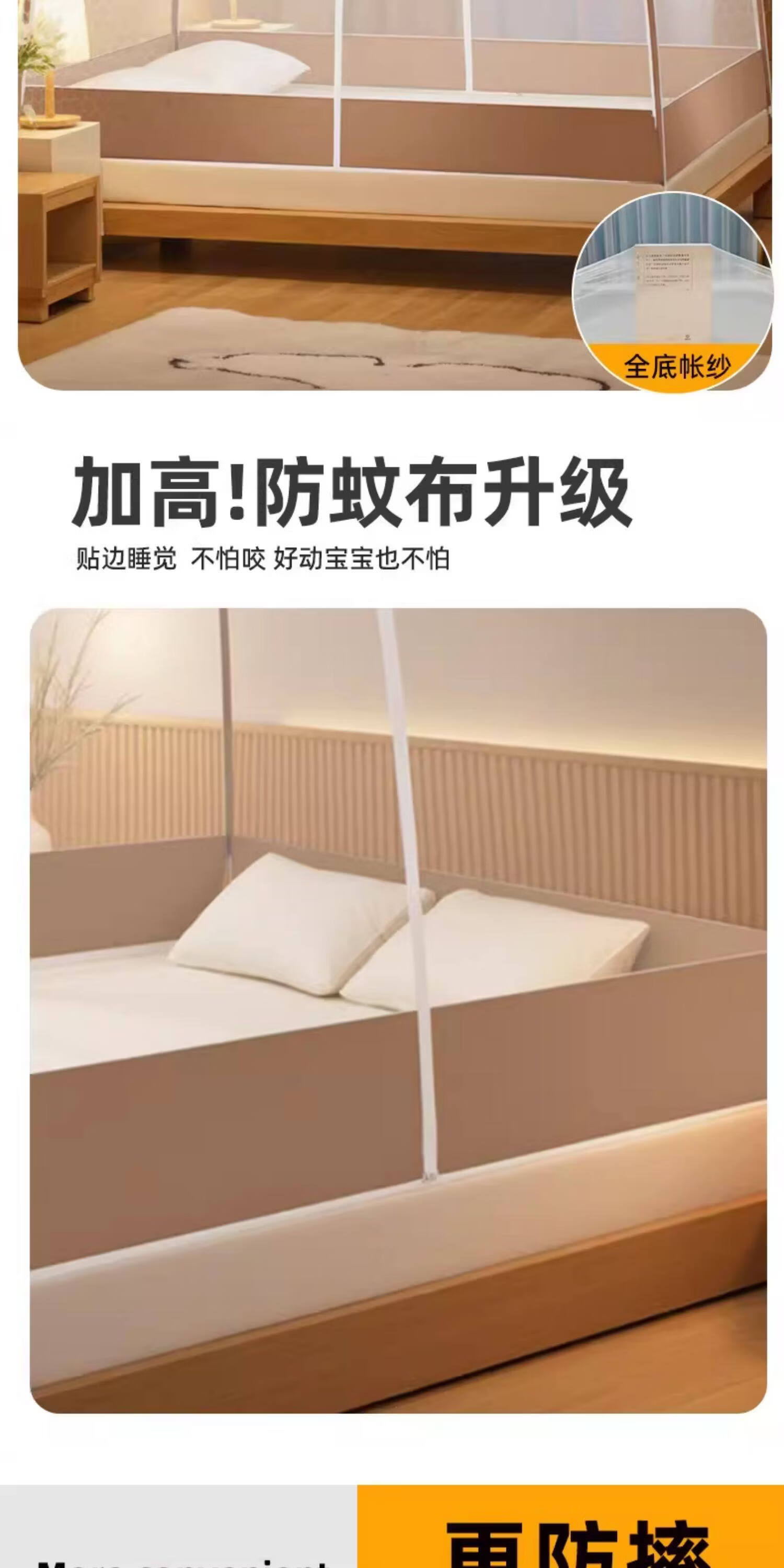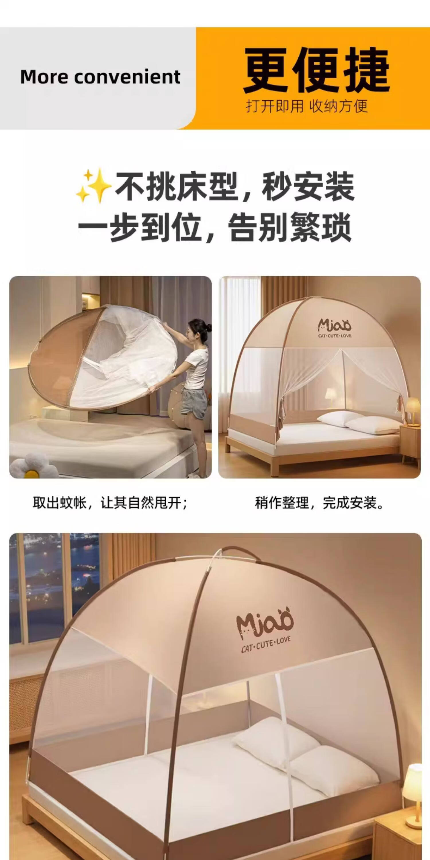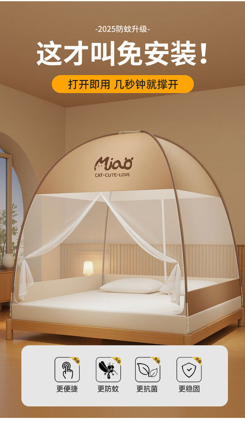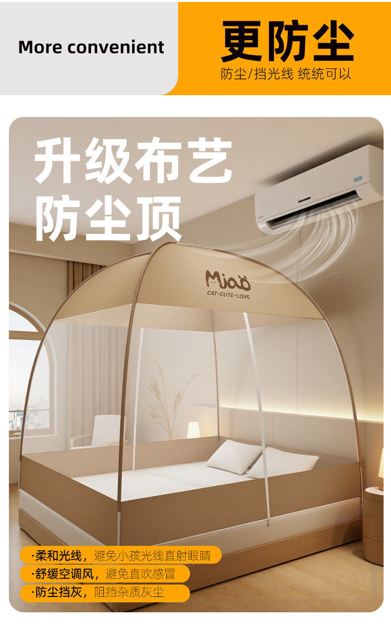高睿蚊帐家用卧室蒙古包免安装婴儿防摔全底儿童床全罩式纹账防止掉床 小棕熊【升级钢股支架-不扎手】加固脚撑 1.8宽*2.0长【遮光防尘-防蚊防摔】双门免安装 打开即用