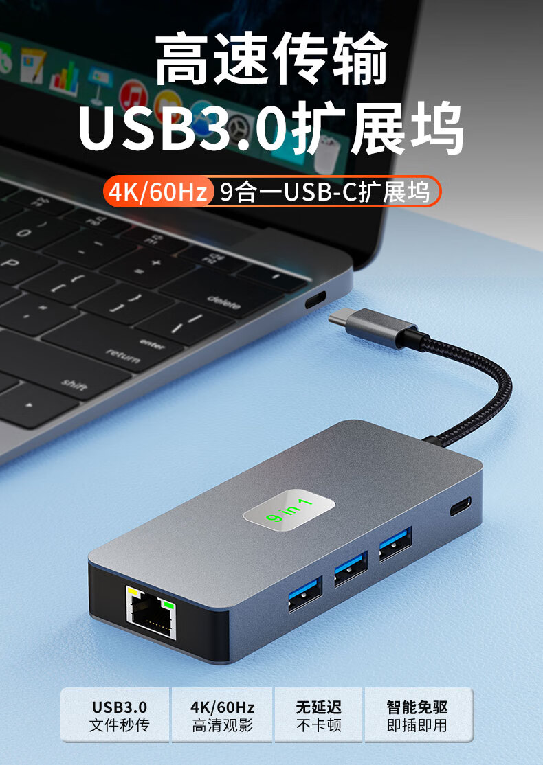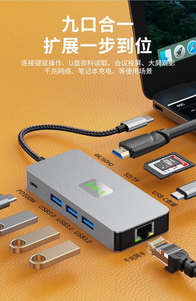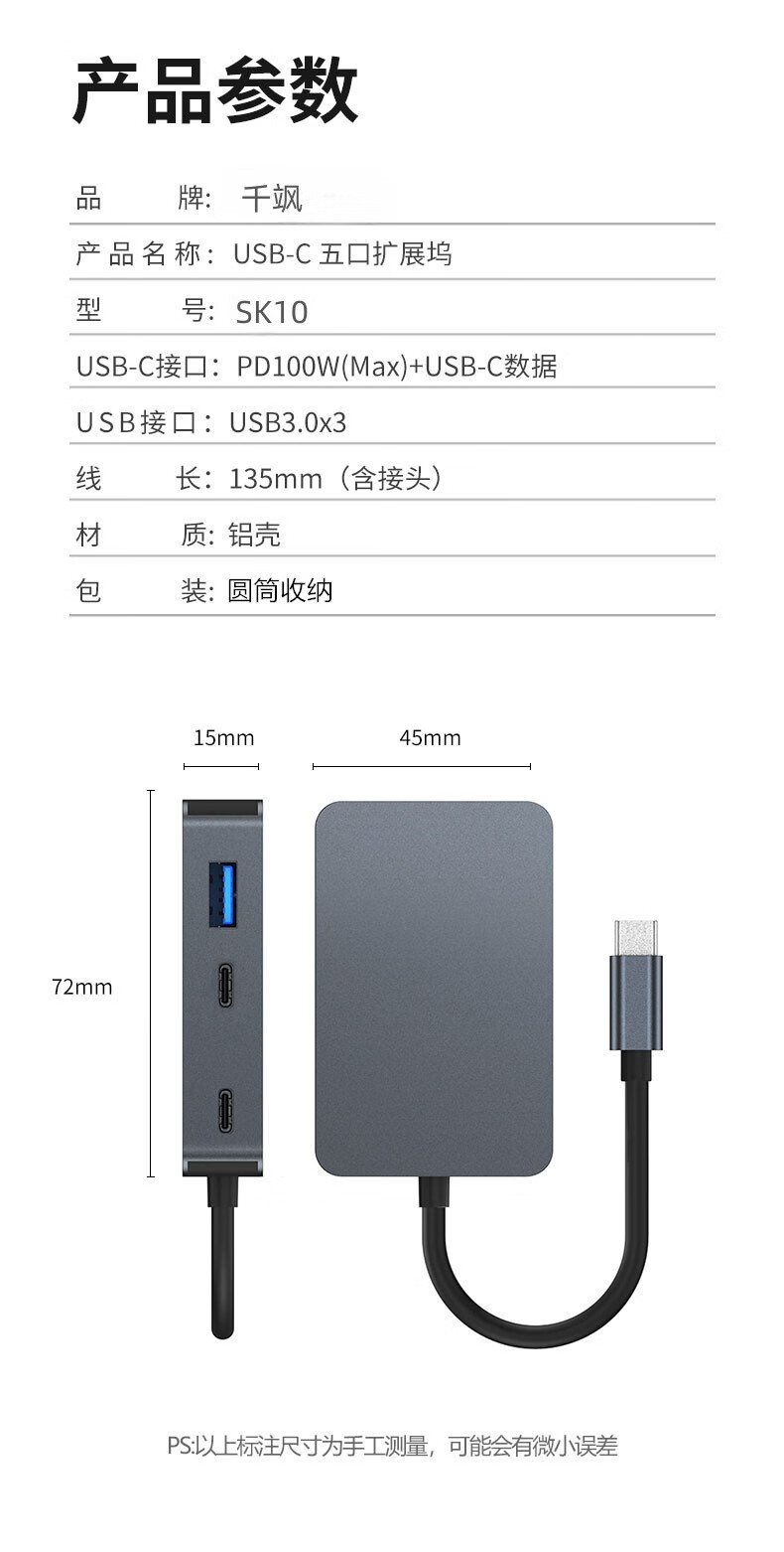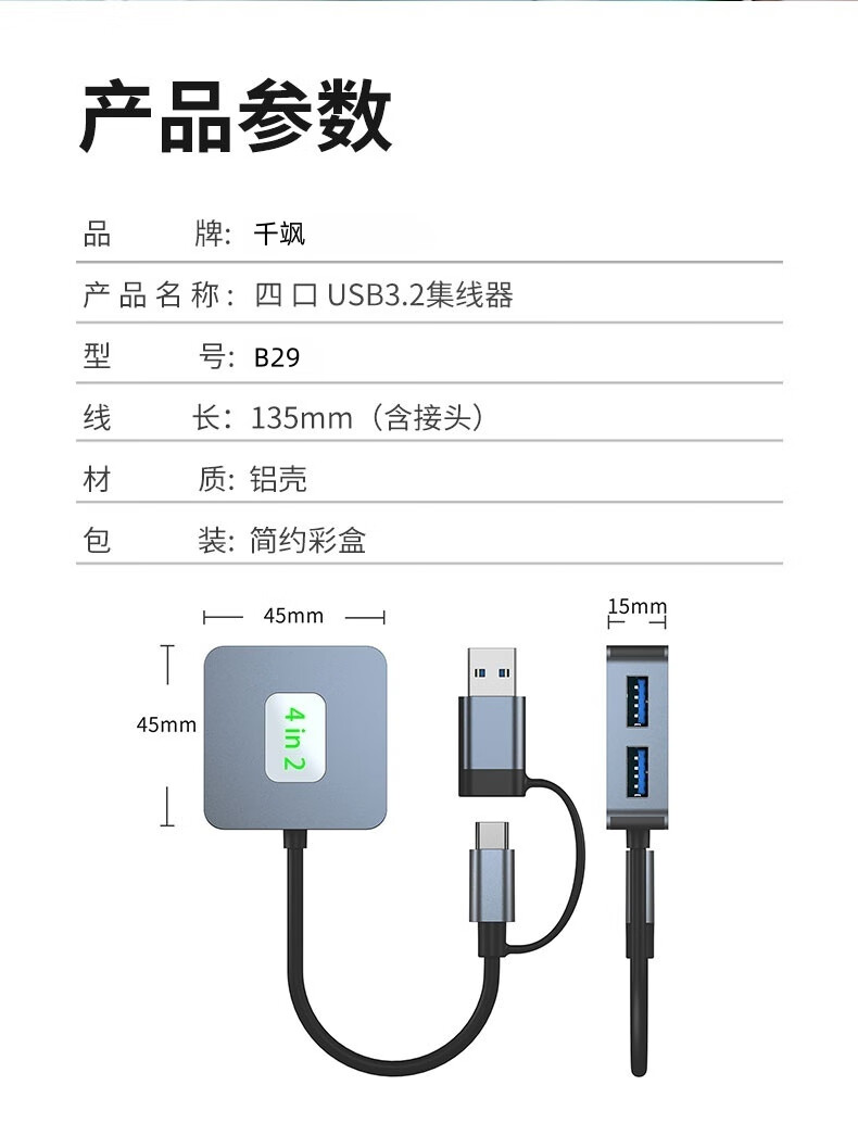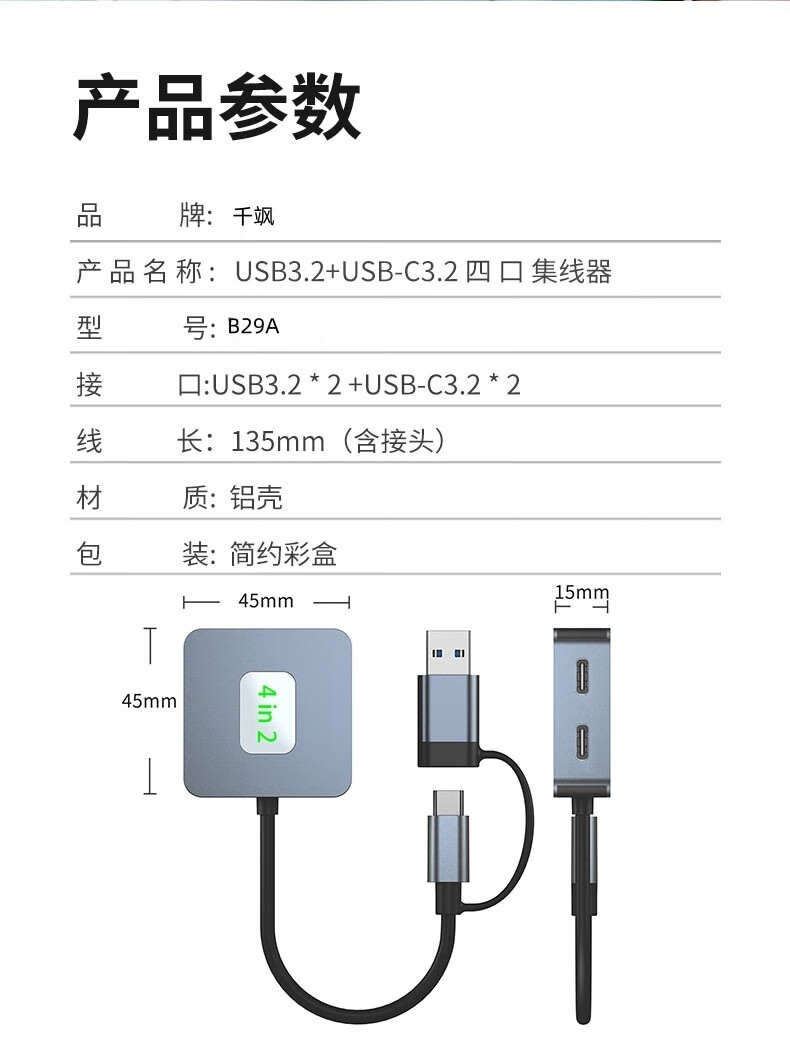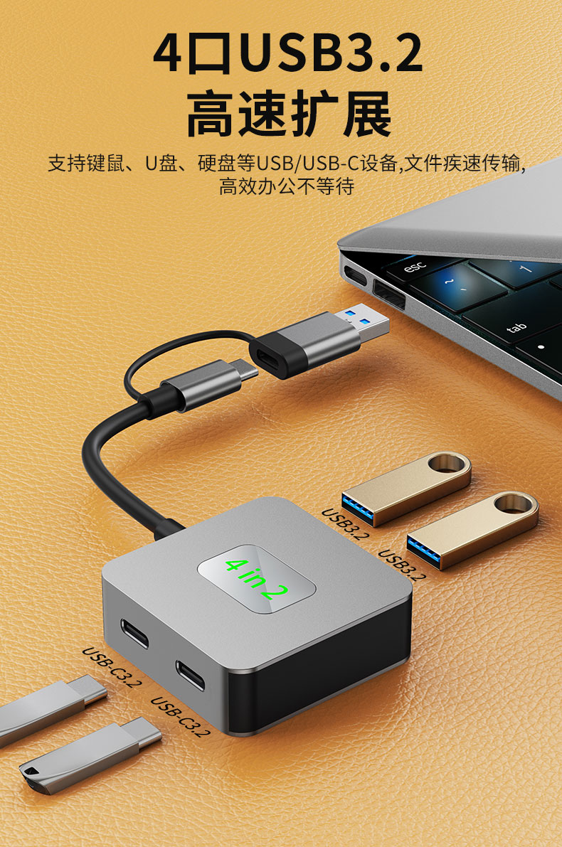 千飒SK系列 扩展坞笔记本多口type-c扩展HDMI高清传输拓展坞 USB3.0/3.2 SD/TF读卡 千兆网卡 多款可选 【SK29】双头4口USB3.2*4