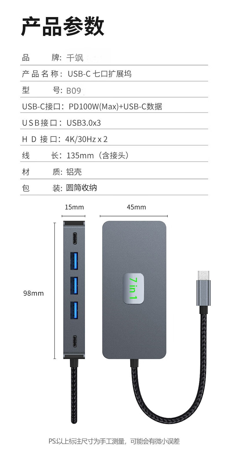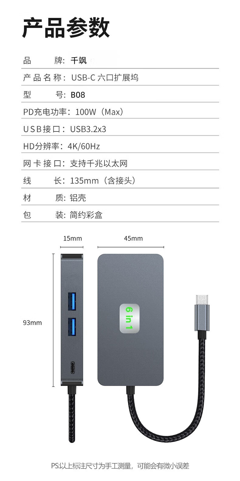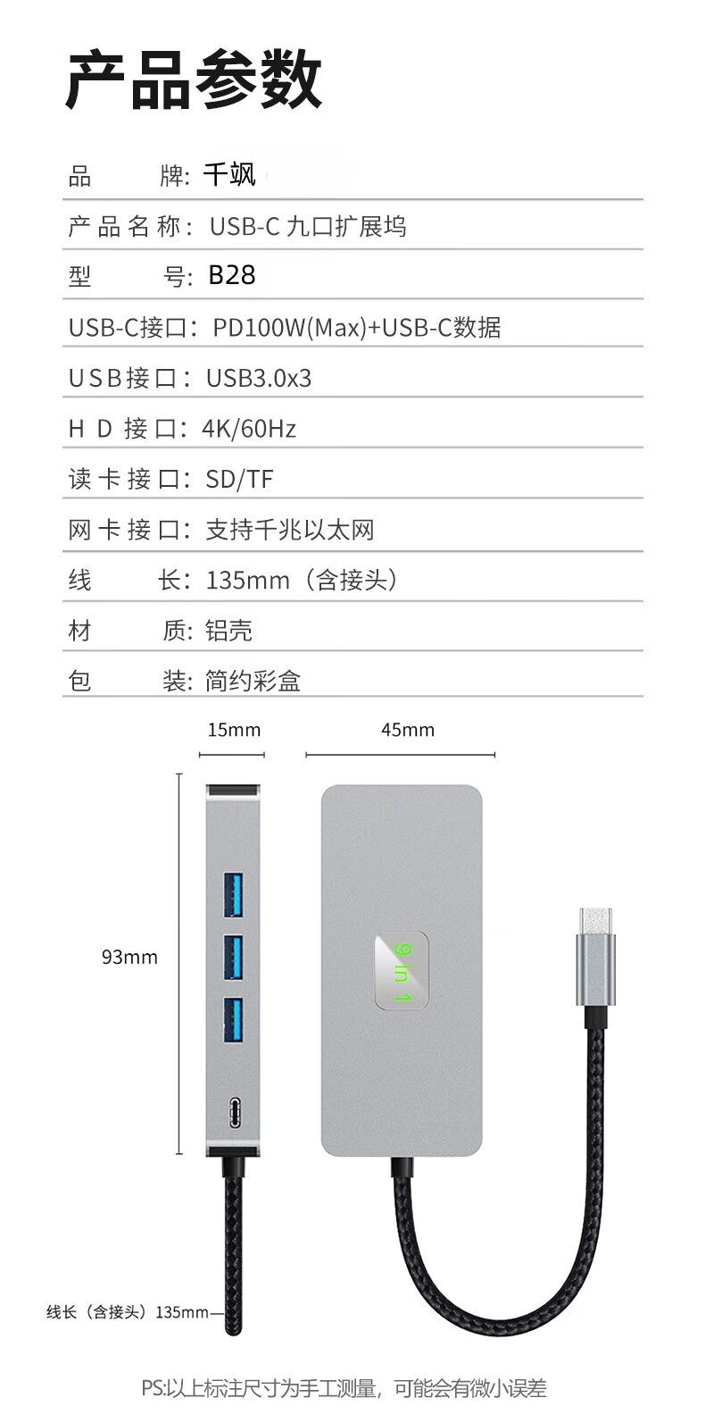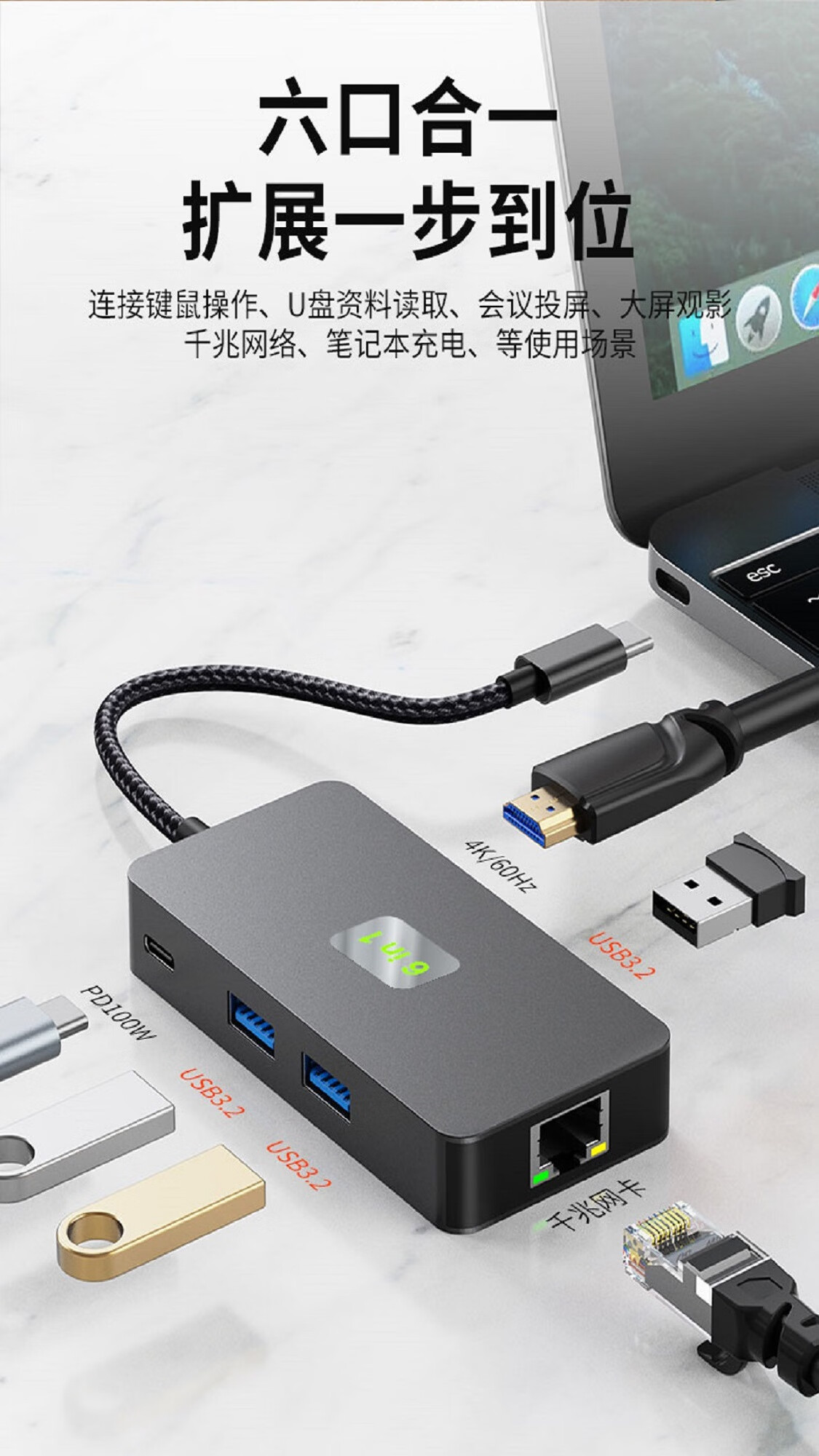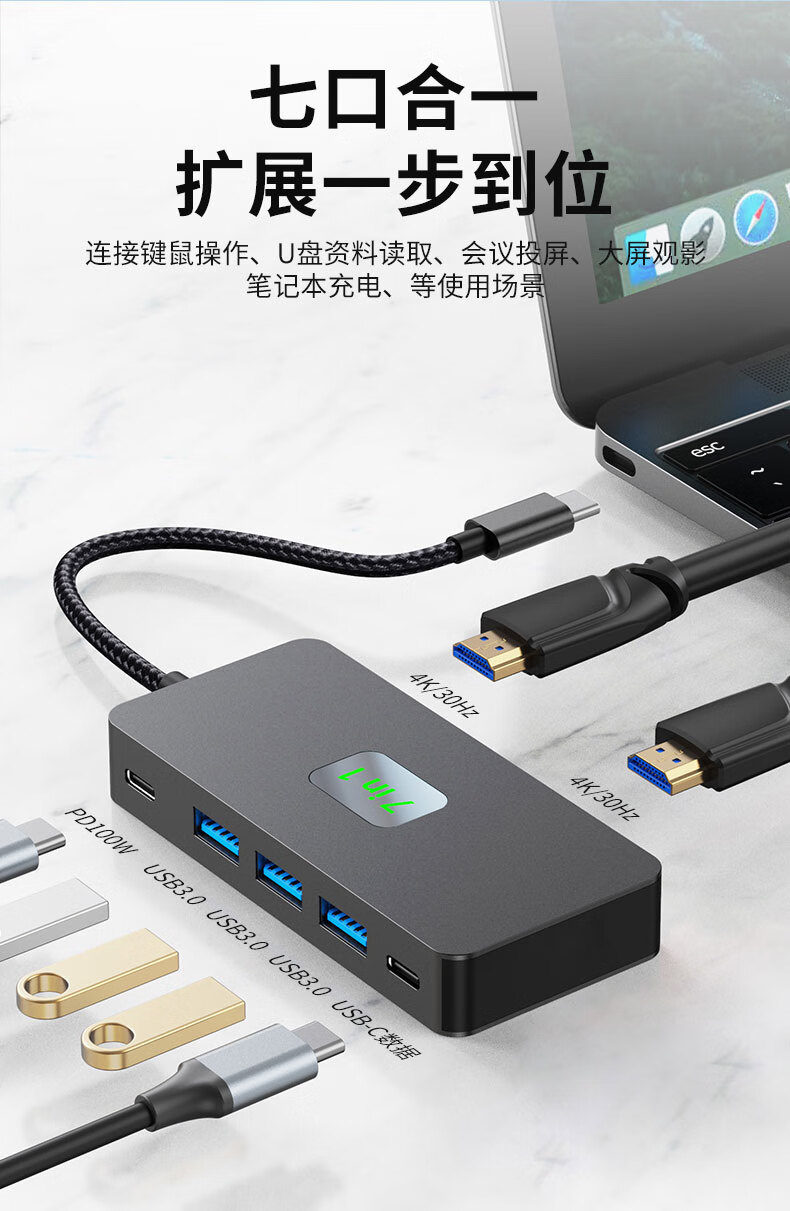 千飒SK系列 扩展坞笔记本多口type-c扩展HDMI高清传输拓展坞 USB3.0/3.2 SD/TF读卡 千兆网卡 多款可选 【SK29】双头4口USB3.2*4