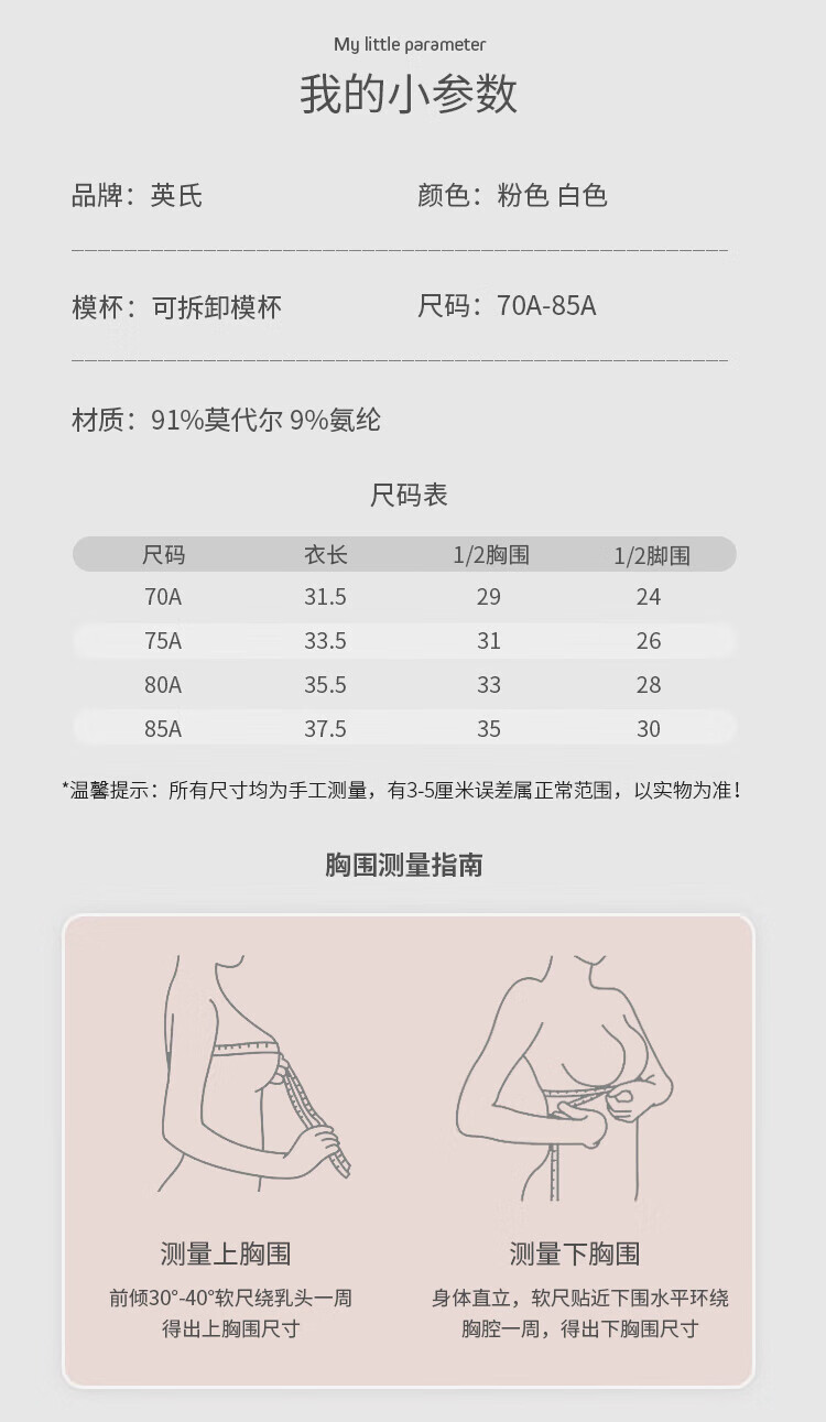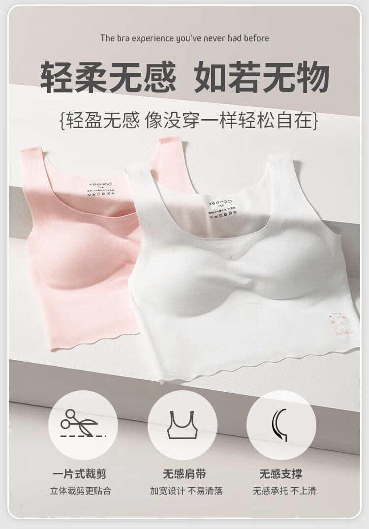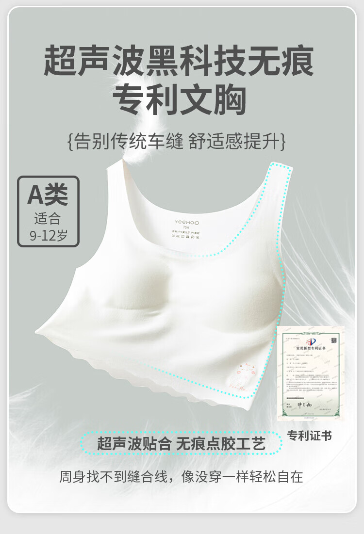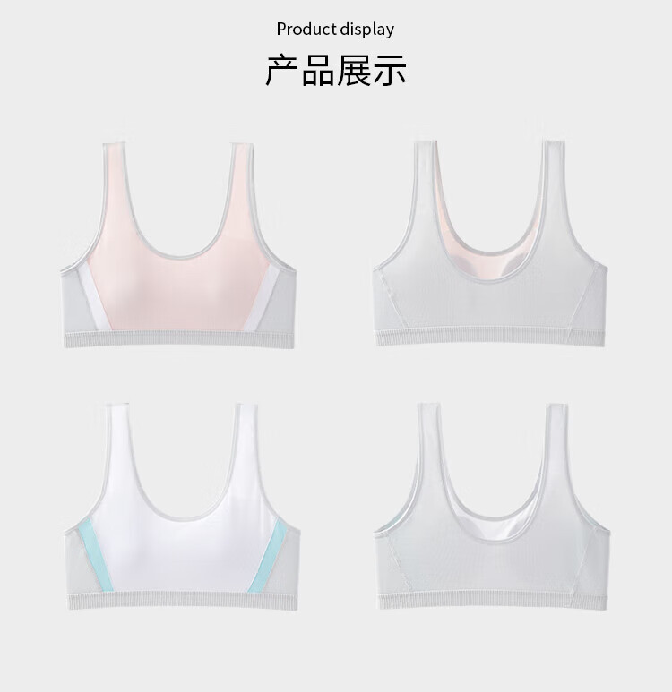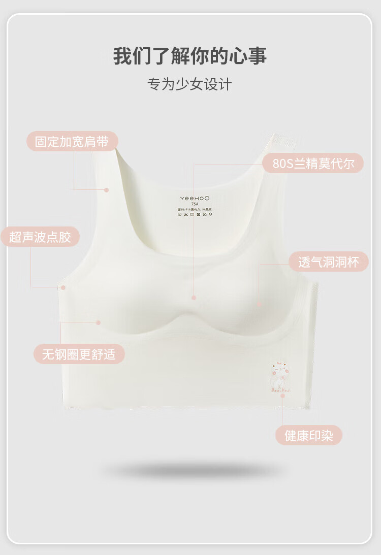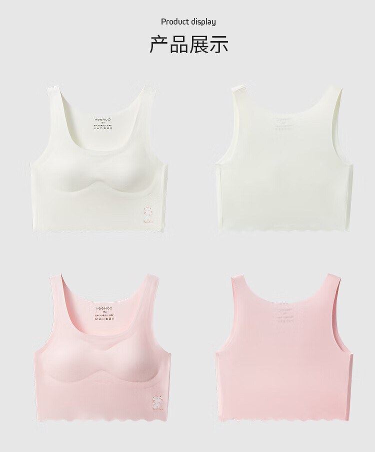 英氏(YEEHOO)儿童内衣女发育期8-16岁一二阶段轻薄透气高弹无感亲肤背心文胸 粉色W2226 1件 【一阶段9-12岁】 均码 【80A】