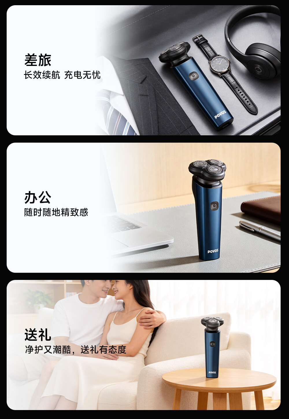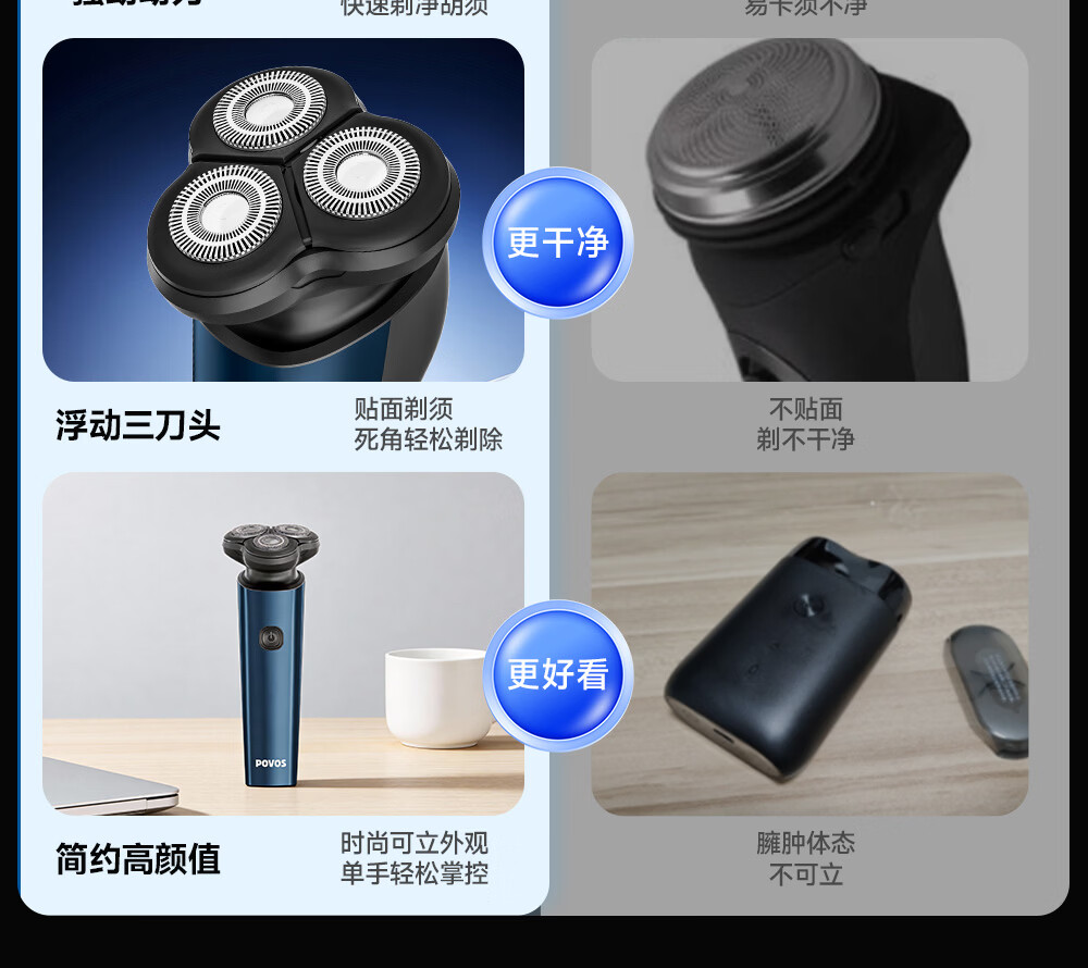 奔腾(POVOS)剃须刀电动刮胡刀男士充电式胡须刀便携车载须刨生日礼物送男友推荐P200 【组合套装】电动剃须刀P200+鼻毛器