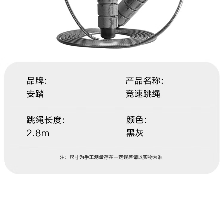 安踏竞速轴承跳绳小学生儿童专用中考体育考试比赛运动专业训练初中生 竞速灰【提速轻松突破200+】