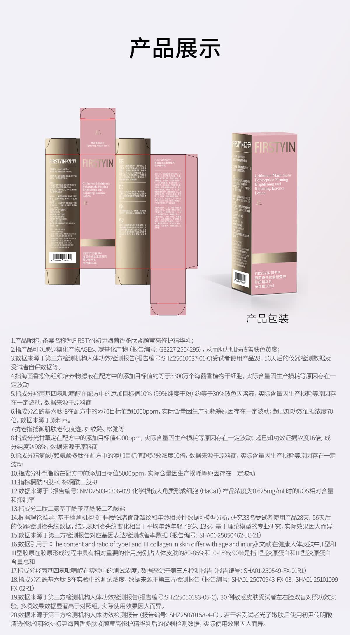 初尹(FIRSTYIN)光愈超千肽精华乳99%玻色因纯度海茴香去黄紧致 30ml【店长推荐】赠同款5ml试用装