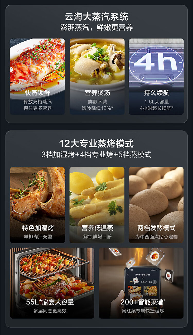 方太嵌入式蒸烤箱 家用EP1S蒸烤一体机 55L大容量 智能蒸烤炖炸多合一 蒸箱烤箱上下独立控温旗舰新品 蒸烤一体机EP1S
