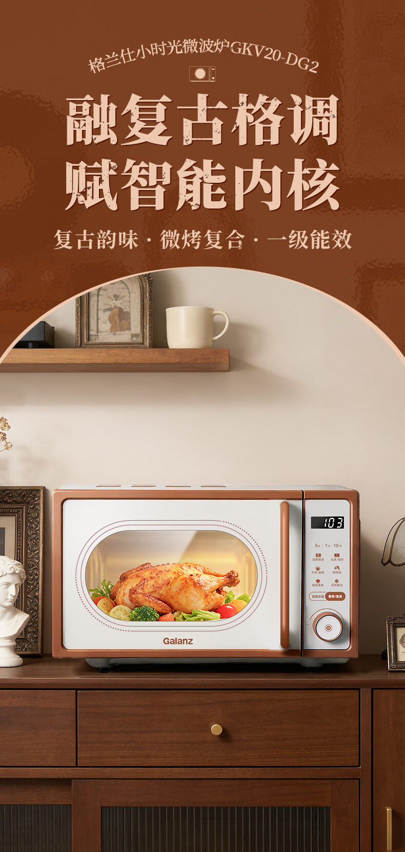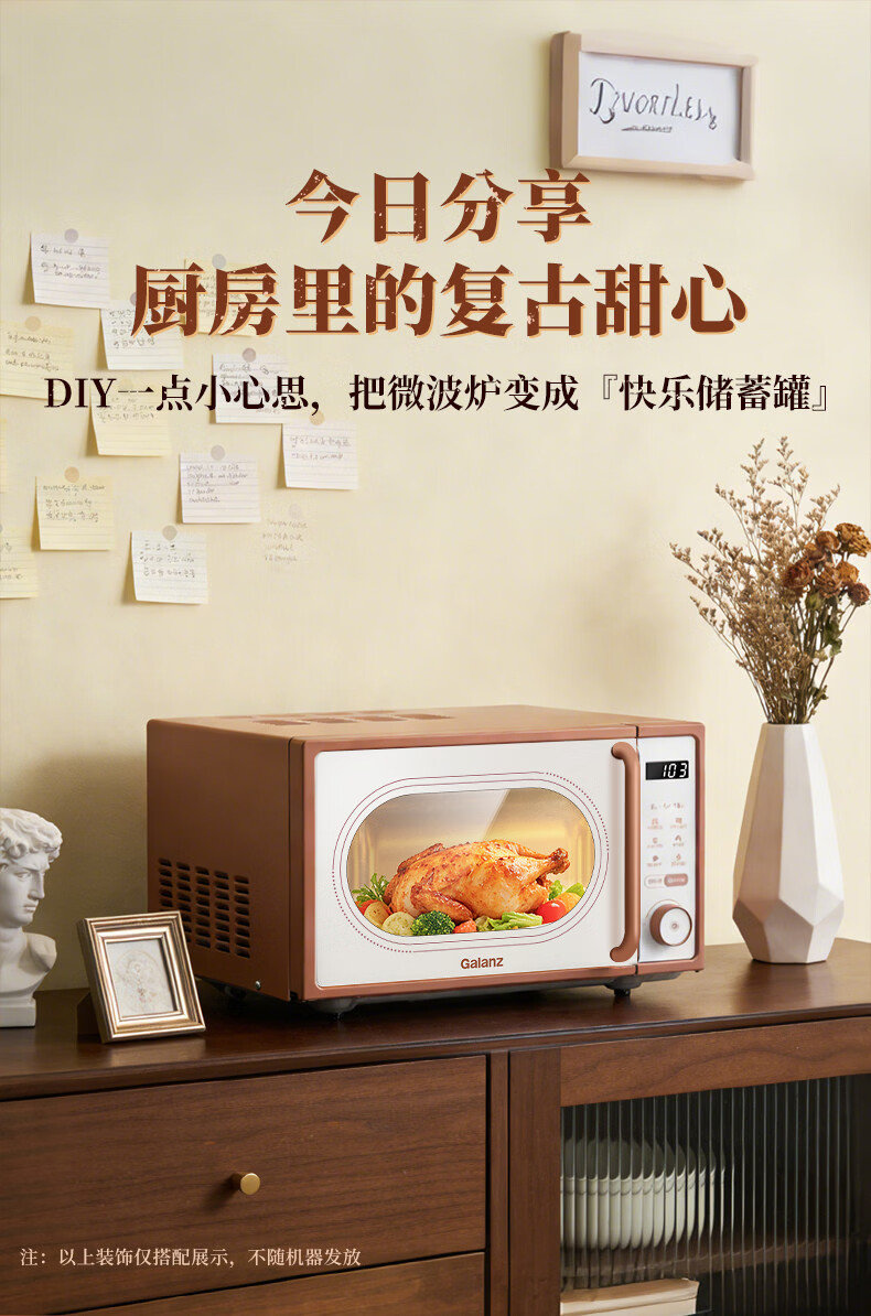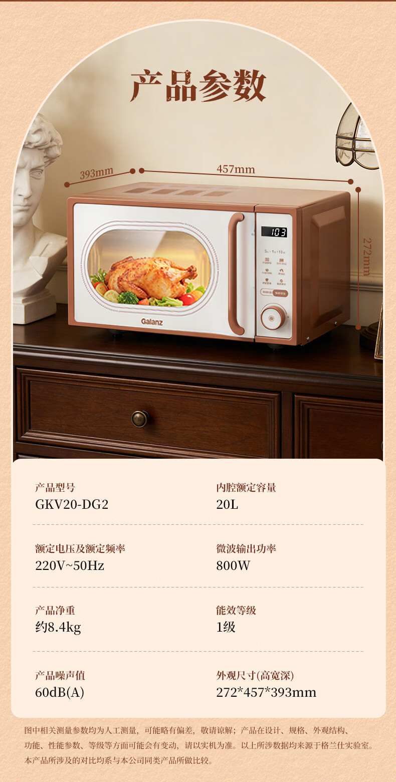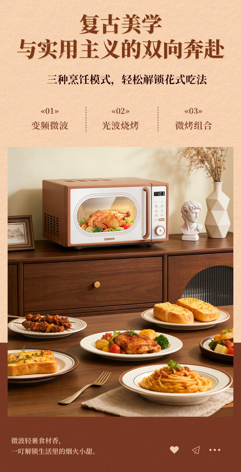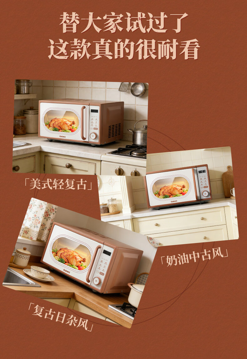 格兰仕家用复古奶油风微波炉烤箱多功能一体机20L变频一级能效易清洁速热杀菌旋钮式小型GKV20-DG2