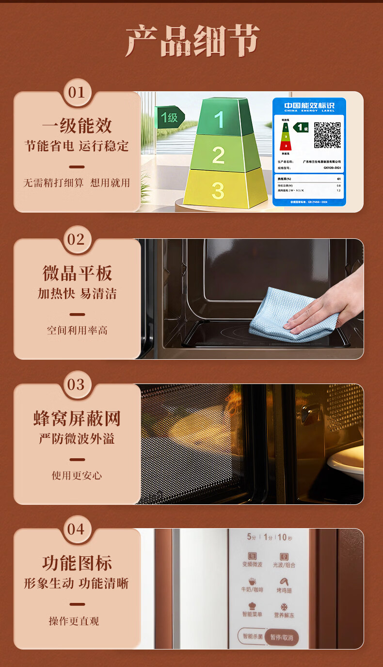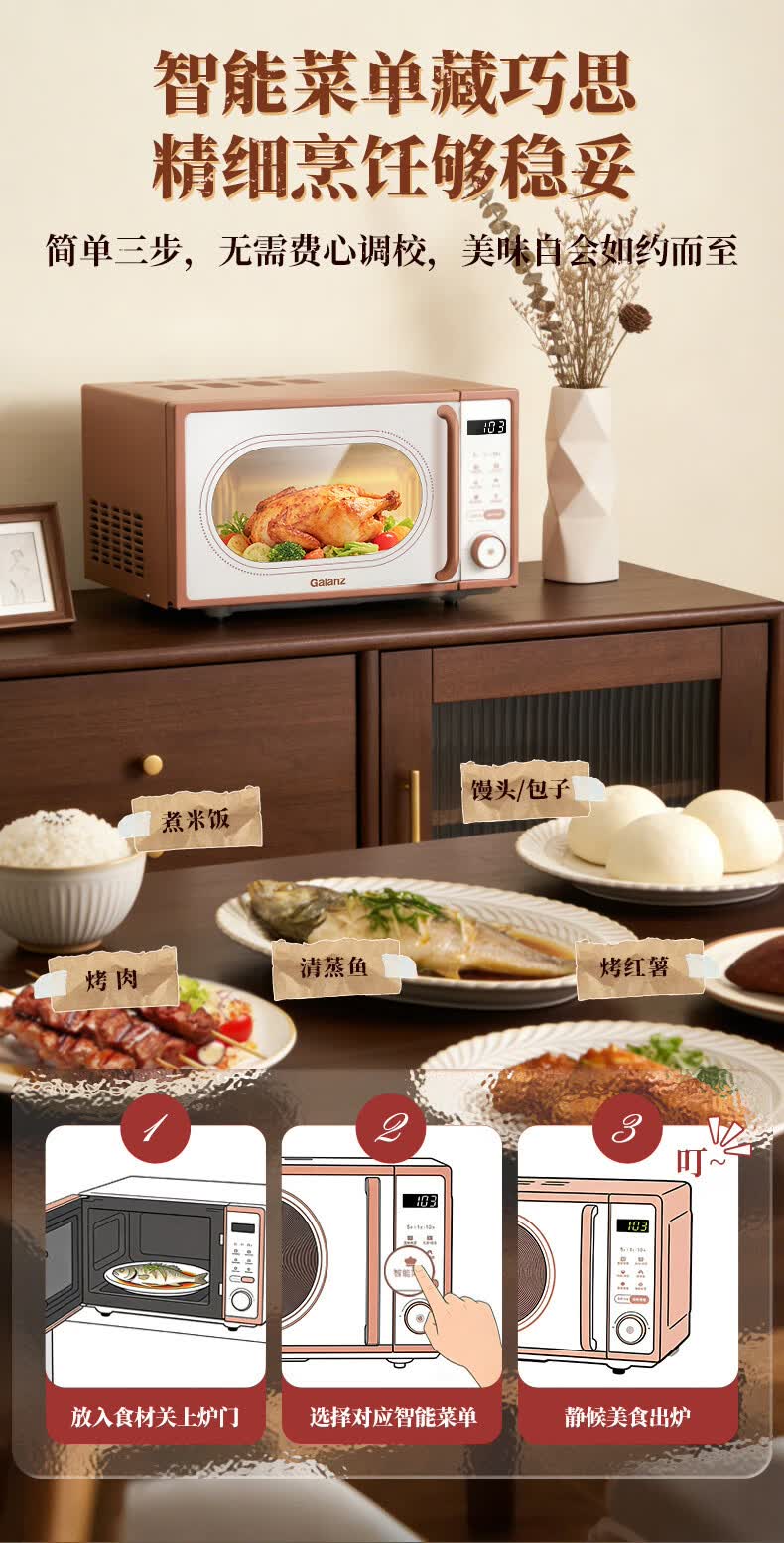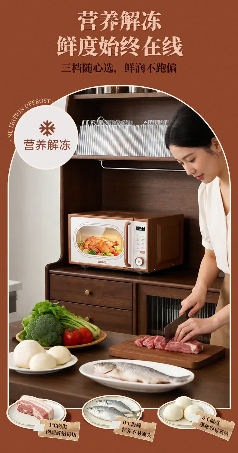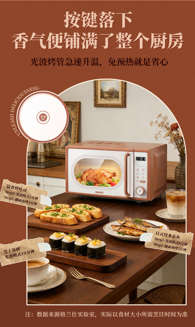 格兰仕家用复古奶油风微波炉烤箱多功能一体机20L变频一级能效易清洁速热杀菌旋钮式小型GKV20-DG2